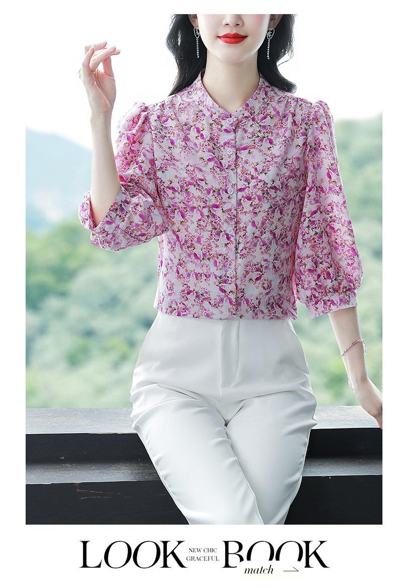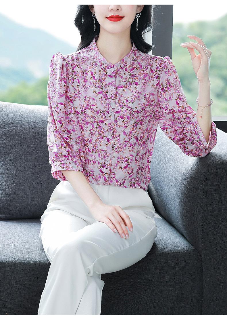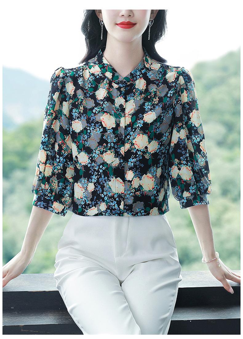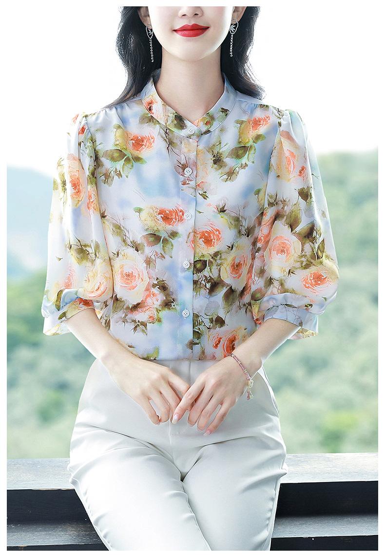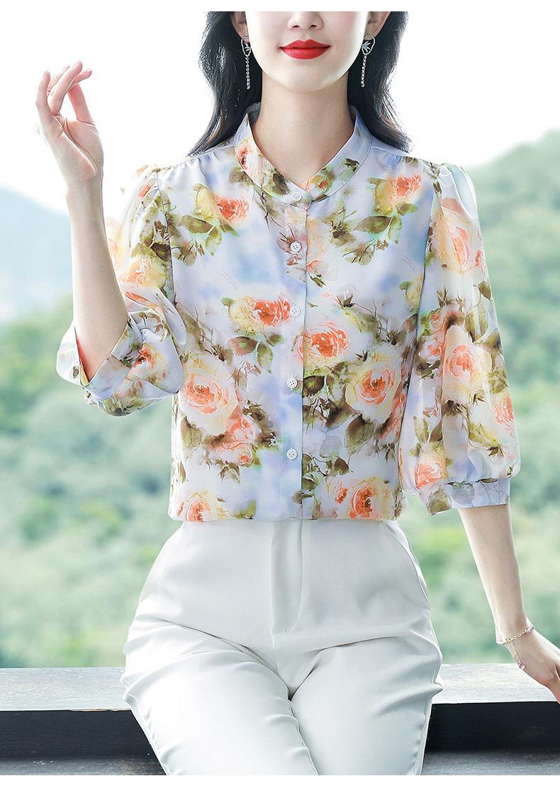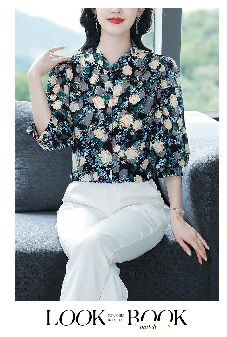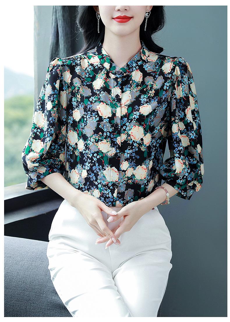 Camisa de seda morera de mediana edad con mangas de siete puntos, estilo occidental, nueva camisa de gasa de seda primavera-verano 2025 para mujer