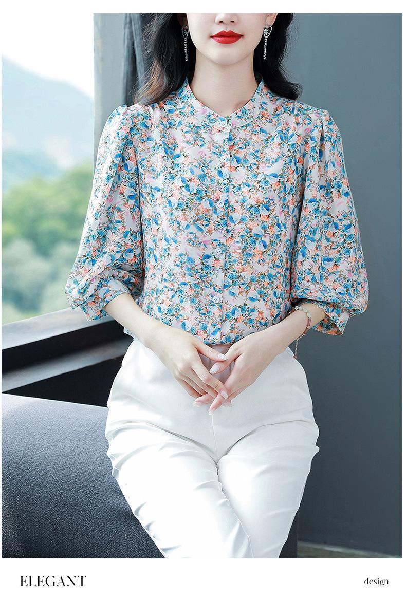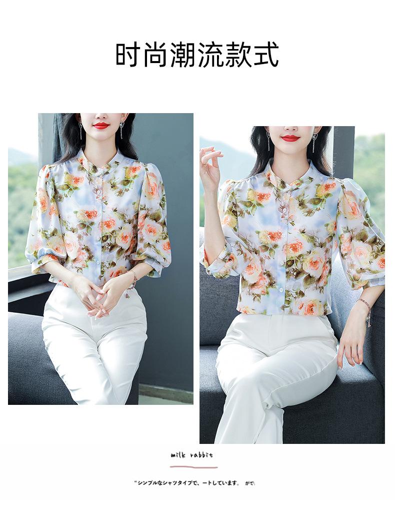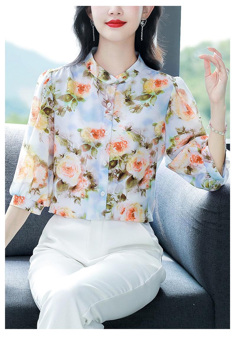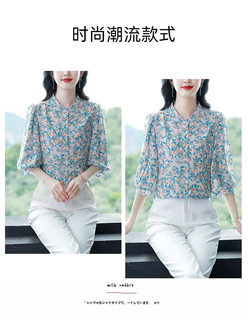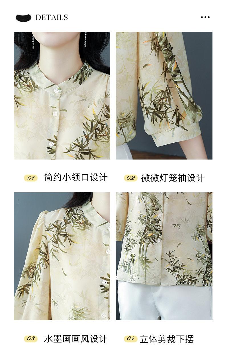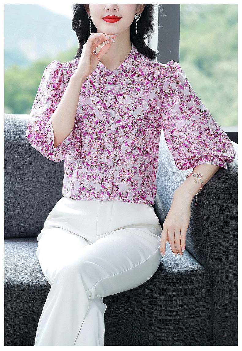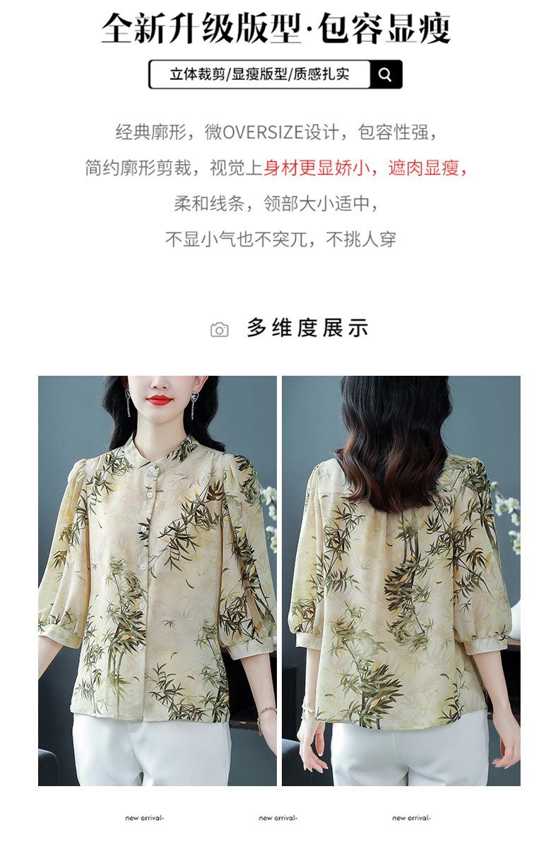 Camisa de seda morera de mediana edad con mangas de siete puntos, estilo occidental, nueva camisa de gasa de seda primavera-verano 2025 para mujer