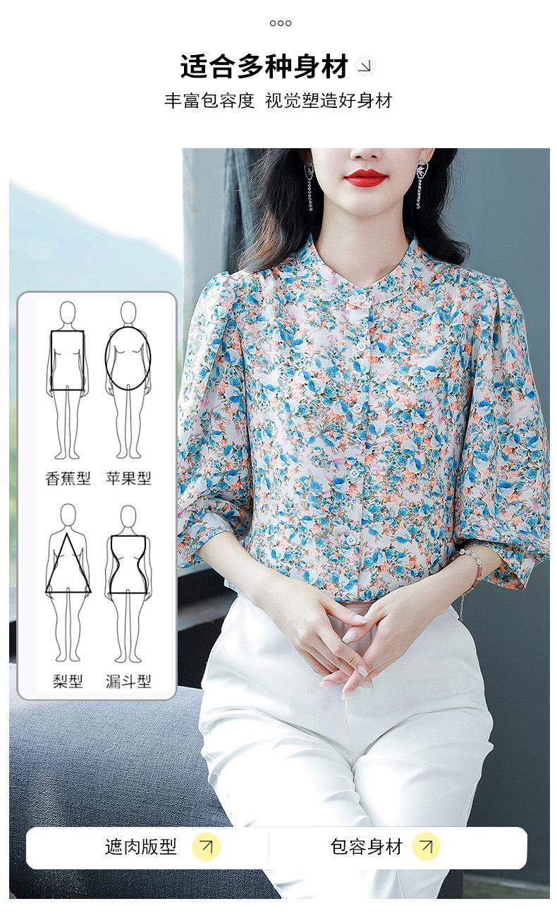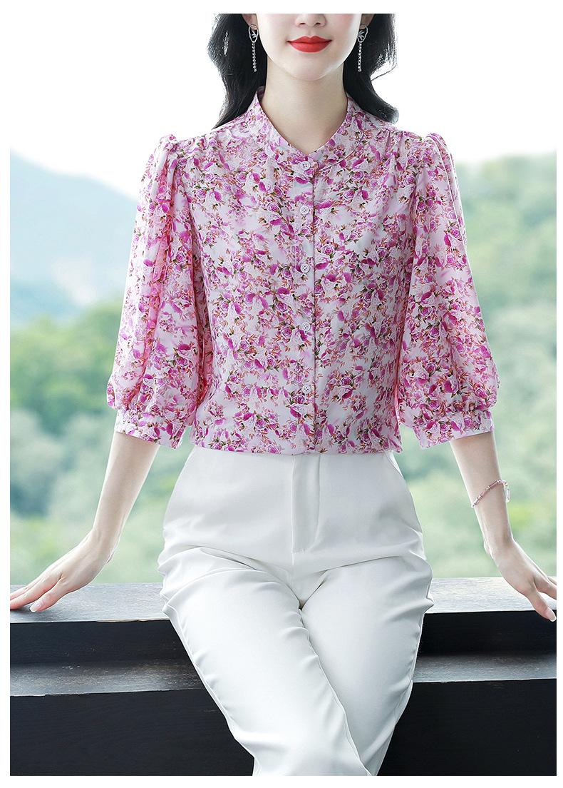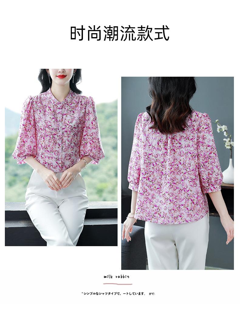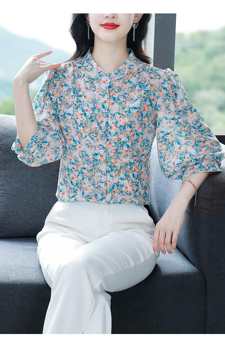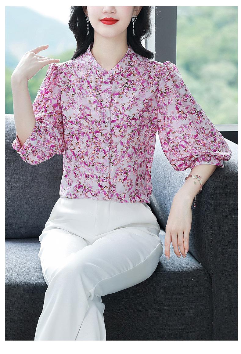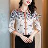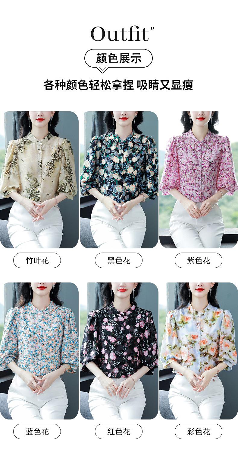 Camisa de seda morera de mediana edad con mangas de siete puntos, estilo occidental, nueva camisa de gasa de seda primavera-verano 2025 para mujer