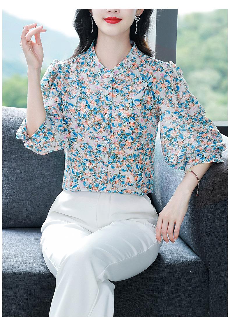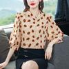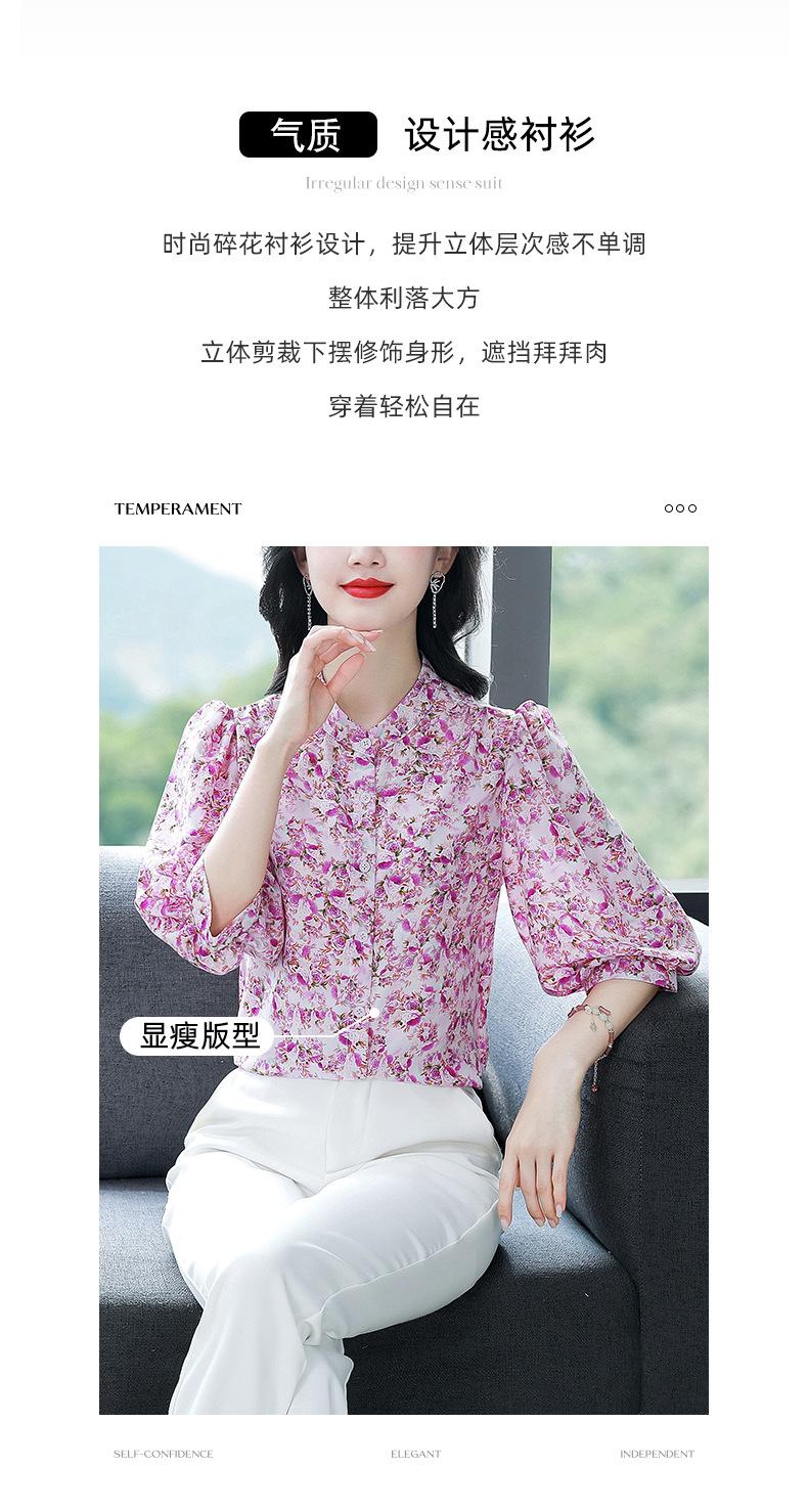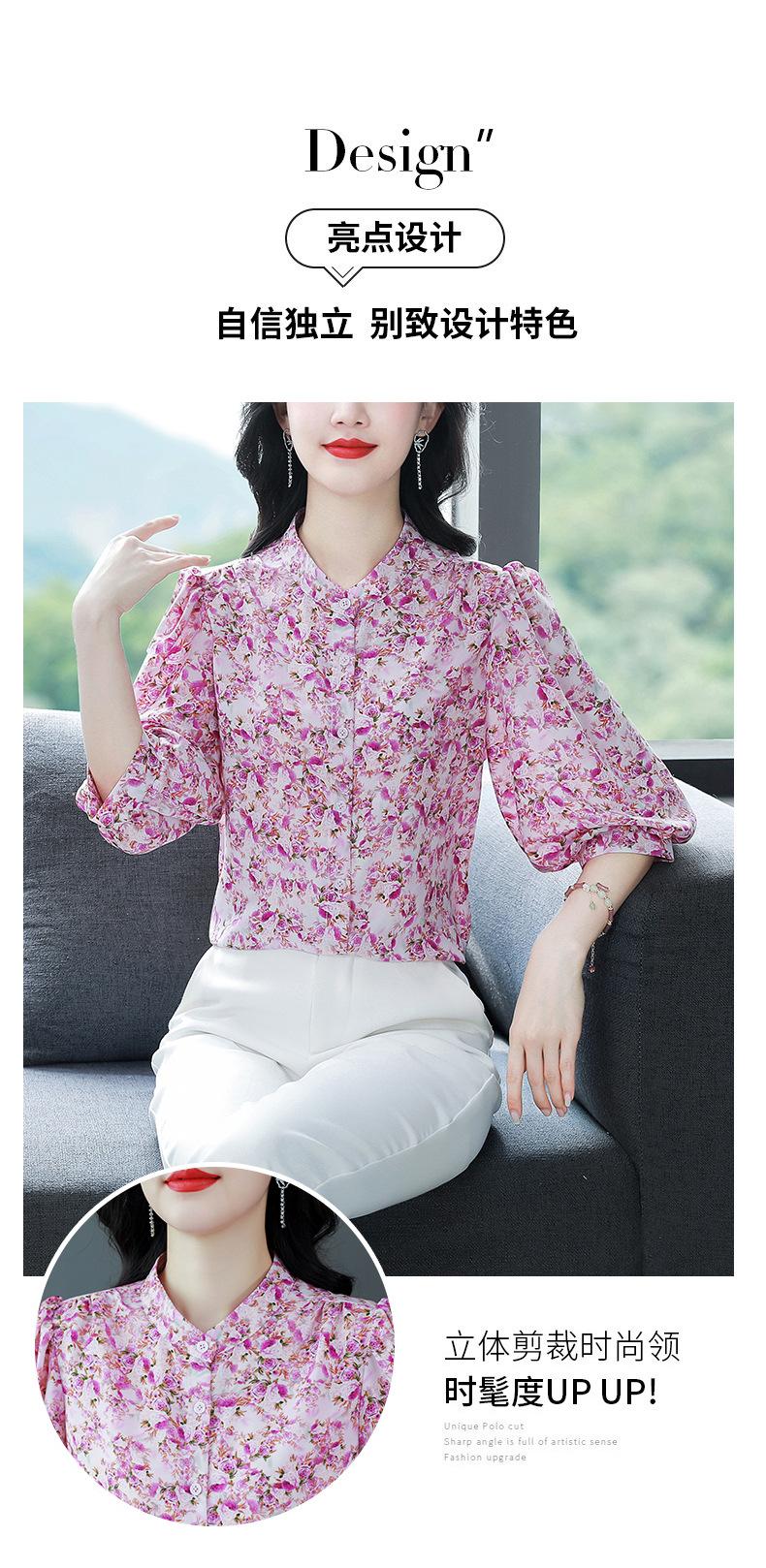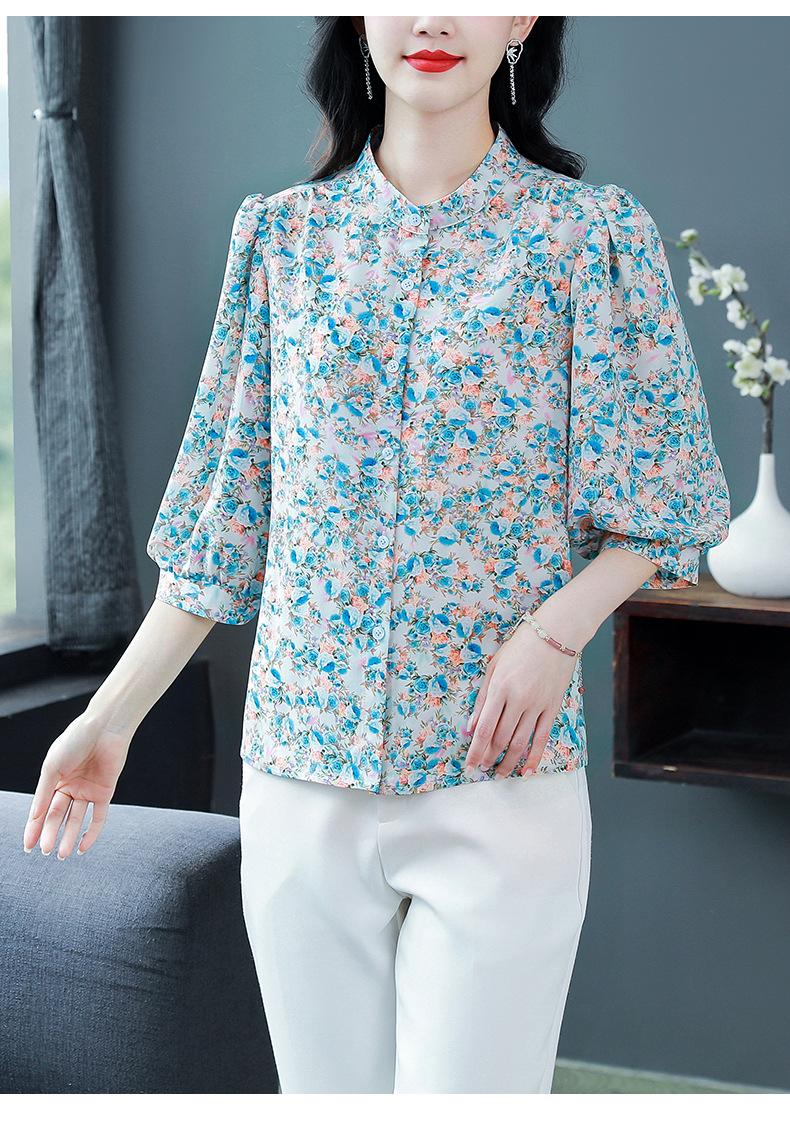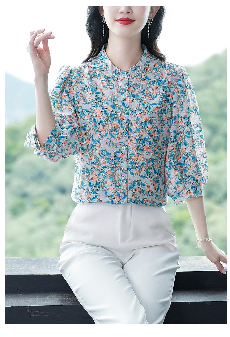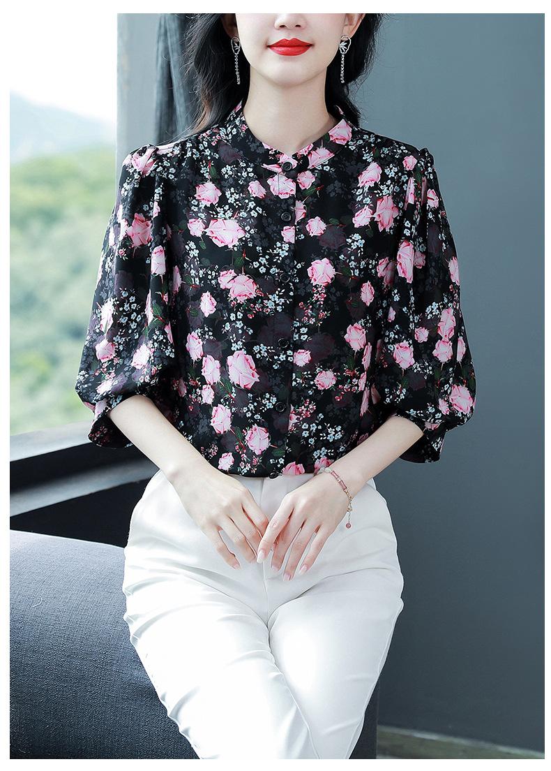Camisa de seda morera de mediana edad con mangas de siete puntos, estilo occidental, nueva camisa de gasa de seda primavera-verano 2025 para mujer