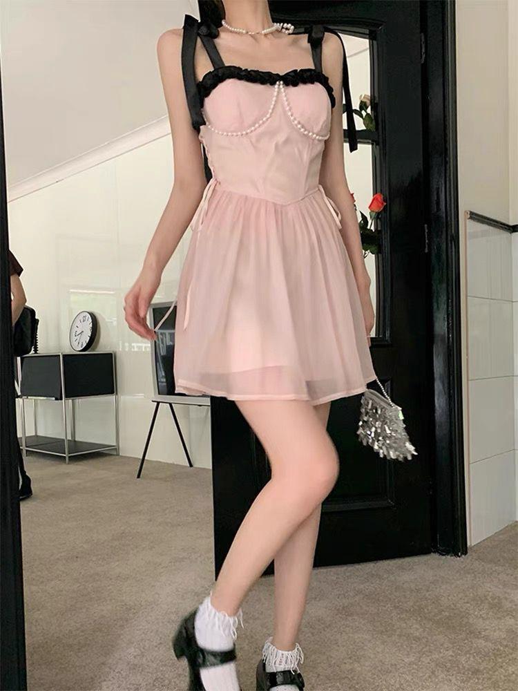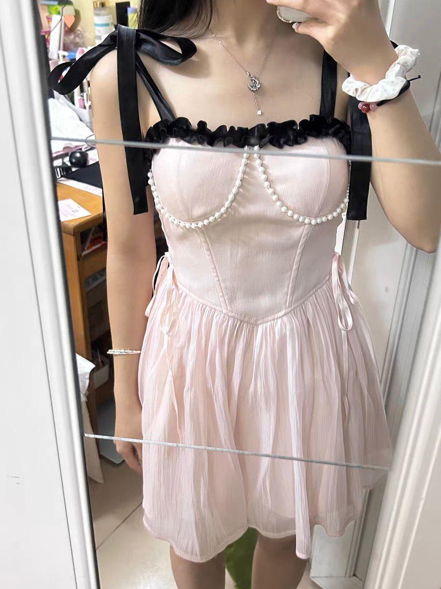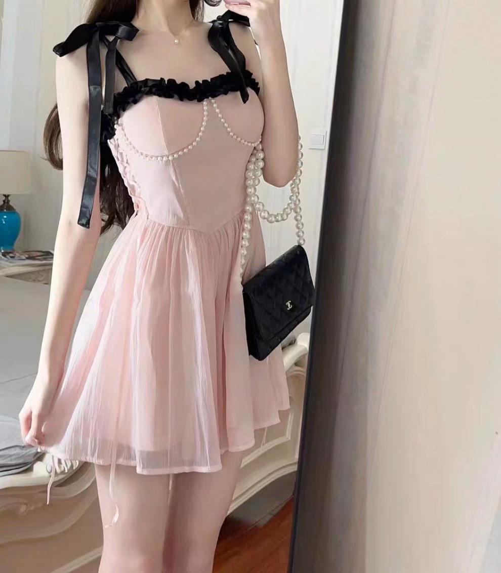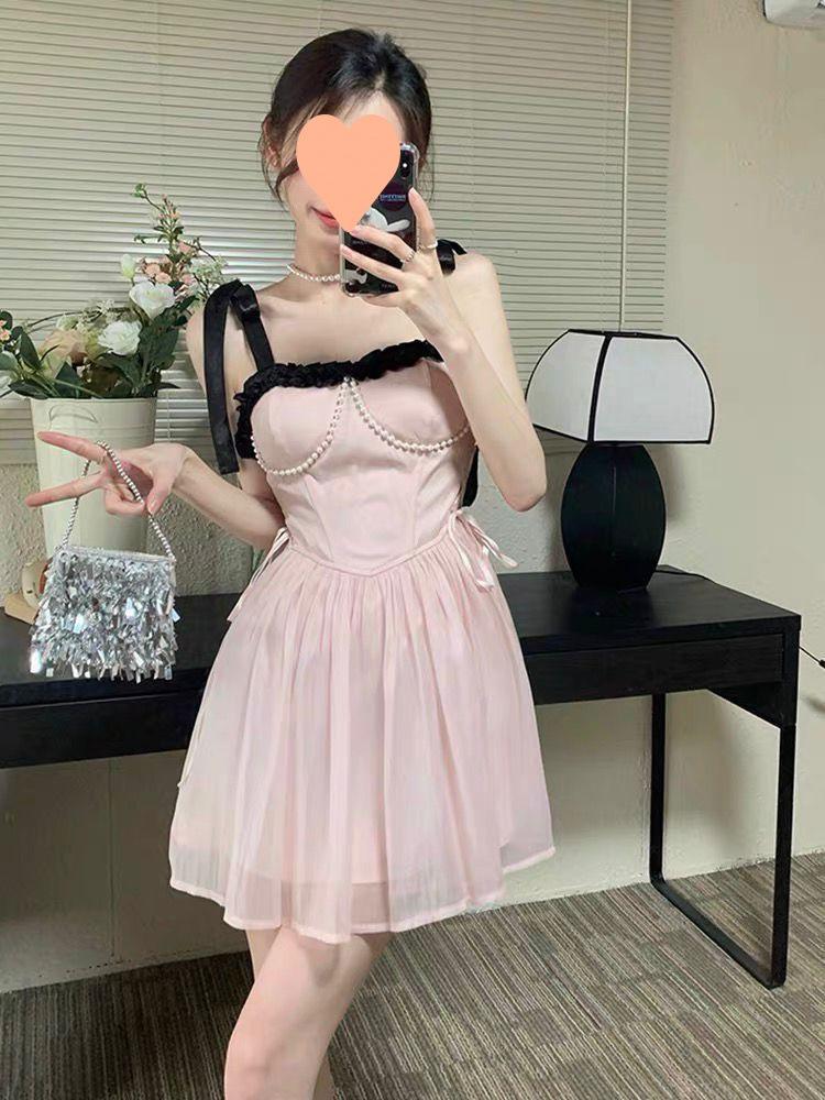 Vestido de tirantes con diseño de primavera y verano 2025 para mujer, sexy, de temperamento puro, sin espalda, con falda de tirantes