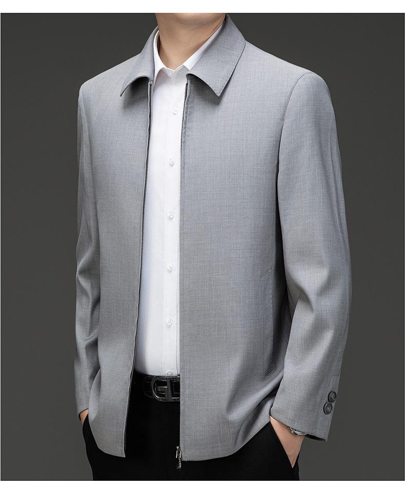 Chaqueta de Lana para Hombre 2025 Abrigo de Solapas para Hombre de Primavera para Papá de Mediana Edad Nuevo Casual para Hombre gris claro