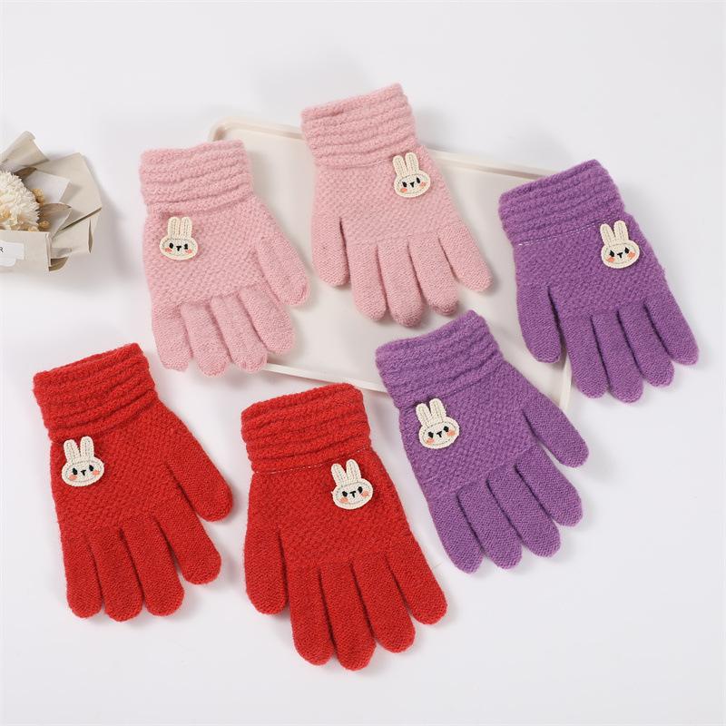 Guantes para niños nuevos de caricatura de conejo invierno cálidos con forro polar gruesos de dedo guantes para bebé a prueba de frío venta al por mayor