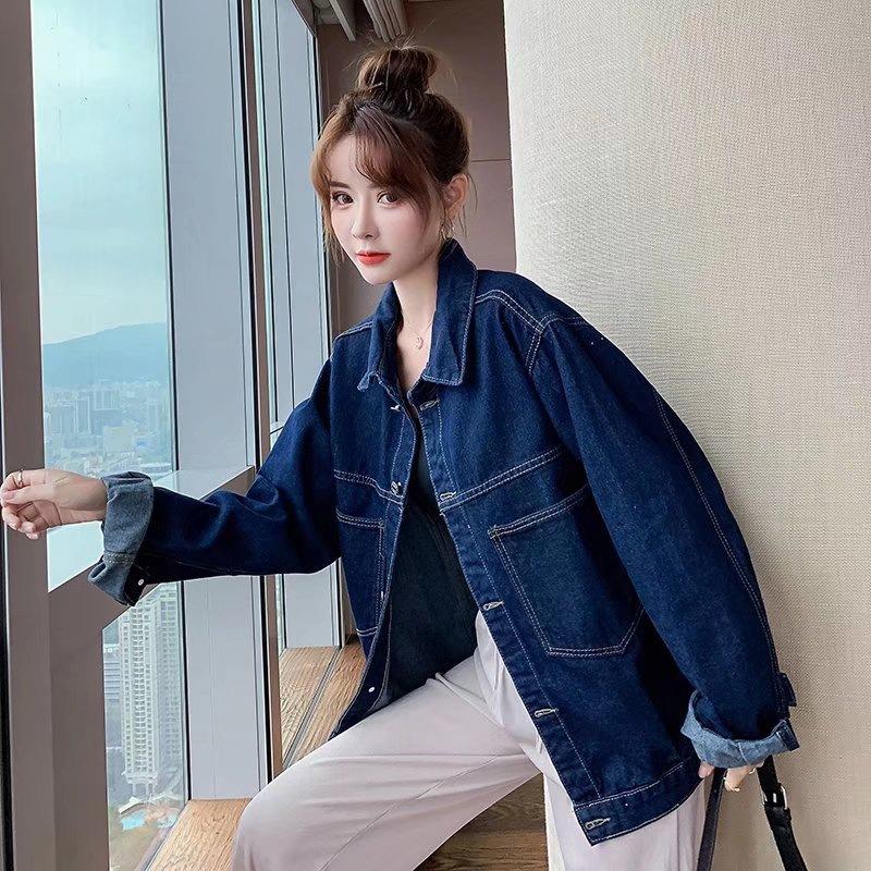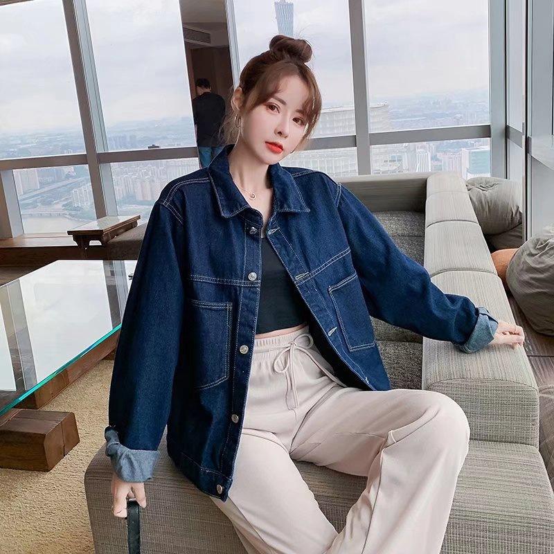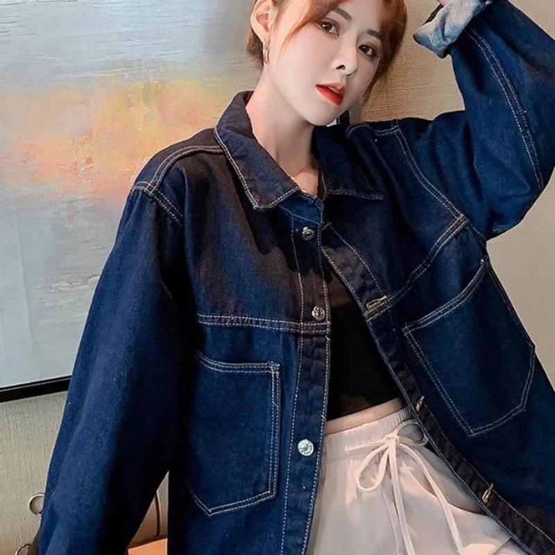 2025 primavera nuevo versión coreana de mezclilla lavada Joker suelto retro azul oscuro abrigo corto de mezclilla una generación de cabello