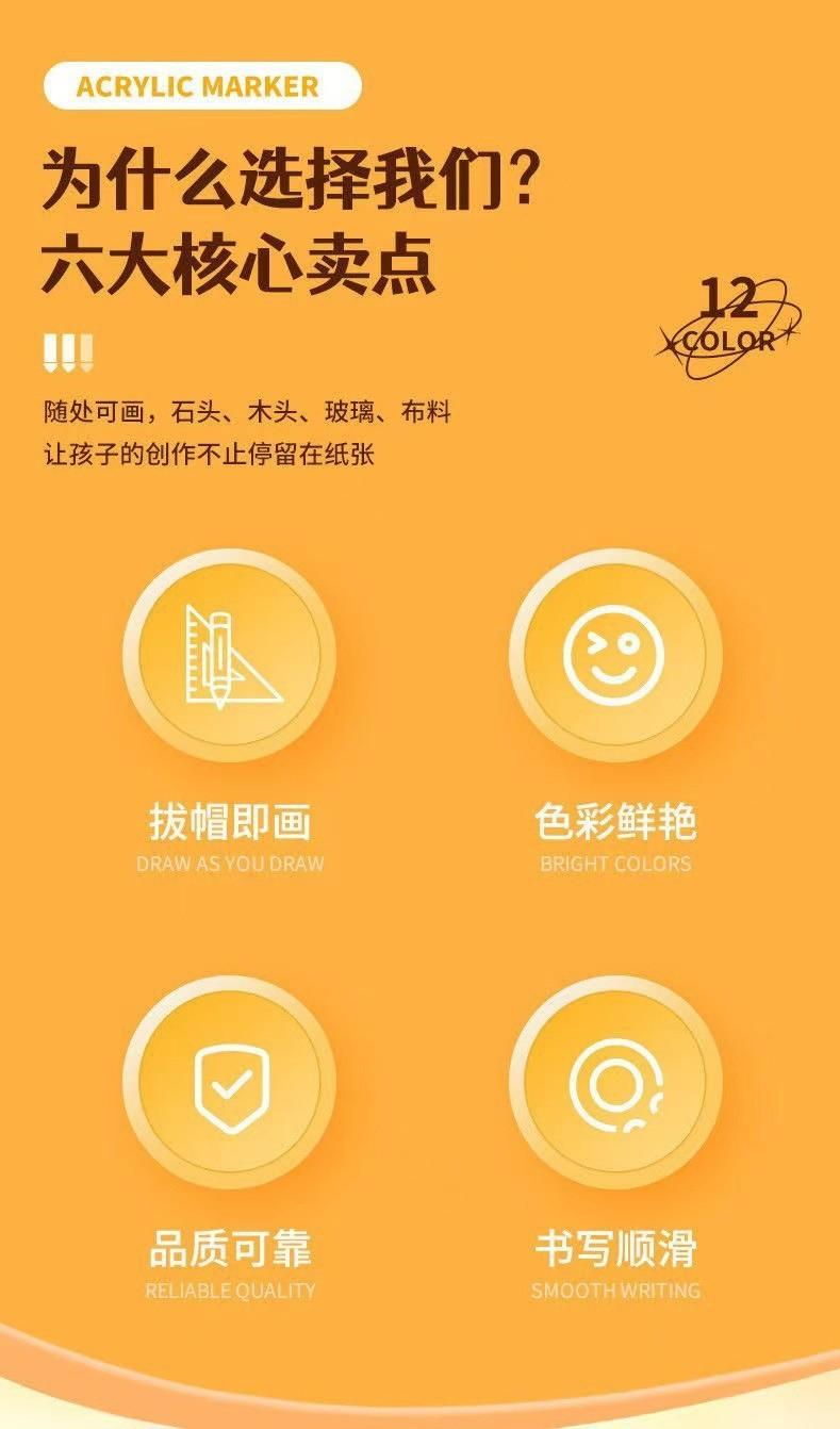 12-color thin acrylic marker pen