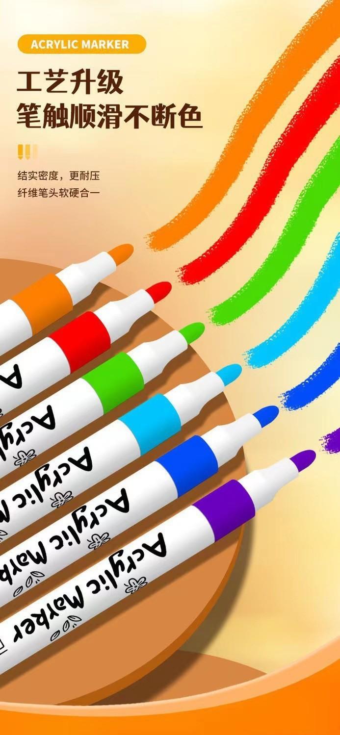 Marcador acrílico para niños, pintura especial de punta fina, resistente al agua, pintado a mano, bolígrafo acrílico para bricolaje, juego completo de bolígrafos de grafiti.