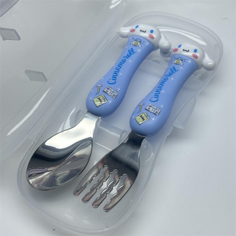 Comercio exterior Sanrio Kulomi vajilla perro de orejas grandes melodía caja cuchara tenedor lote de 2 piezas vajilla infantil