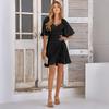 Vestido elegante y sencillo con volantes y escote en V para mujer, color liso, nuevo, de Amazon Foreign Trade.