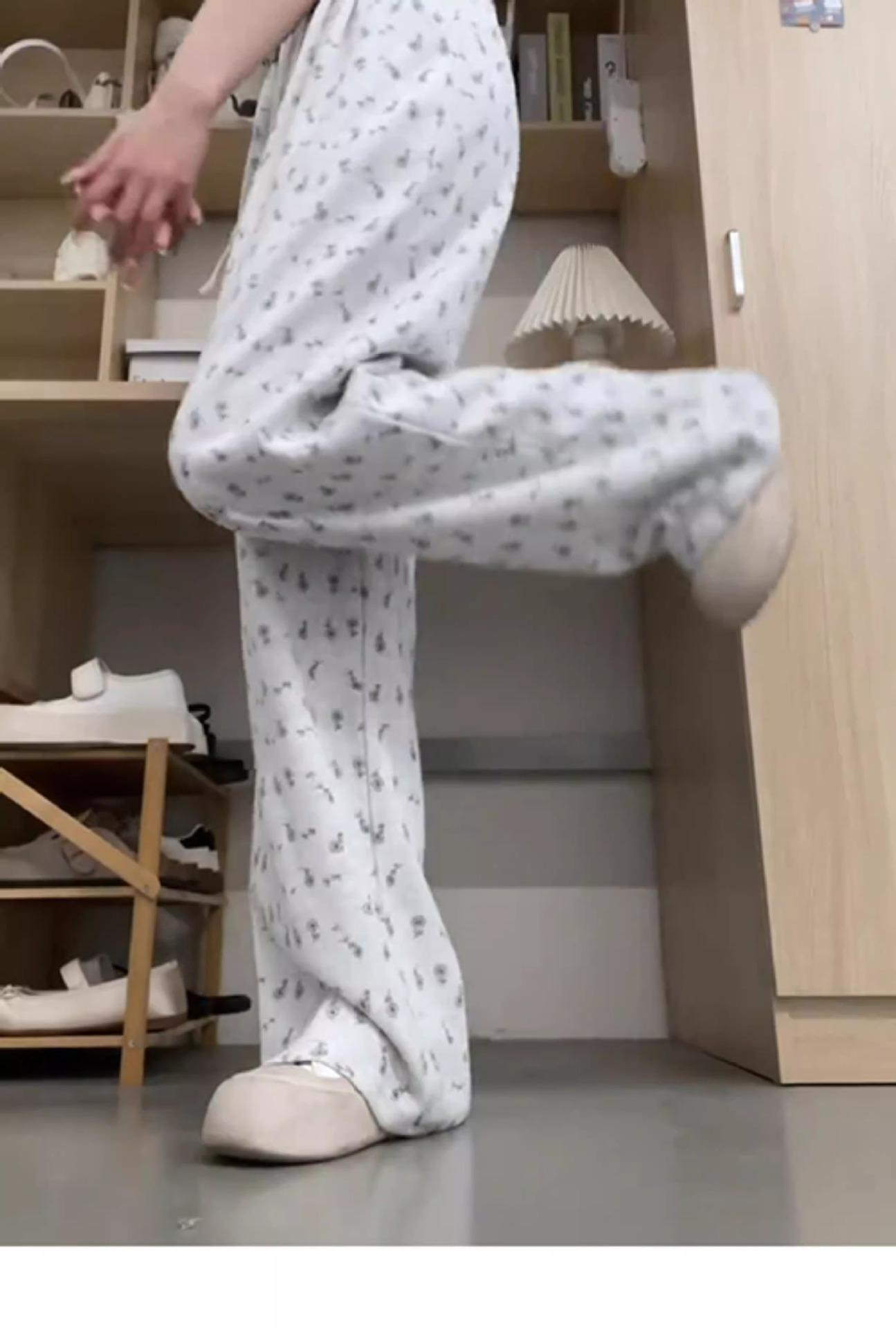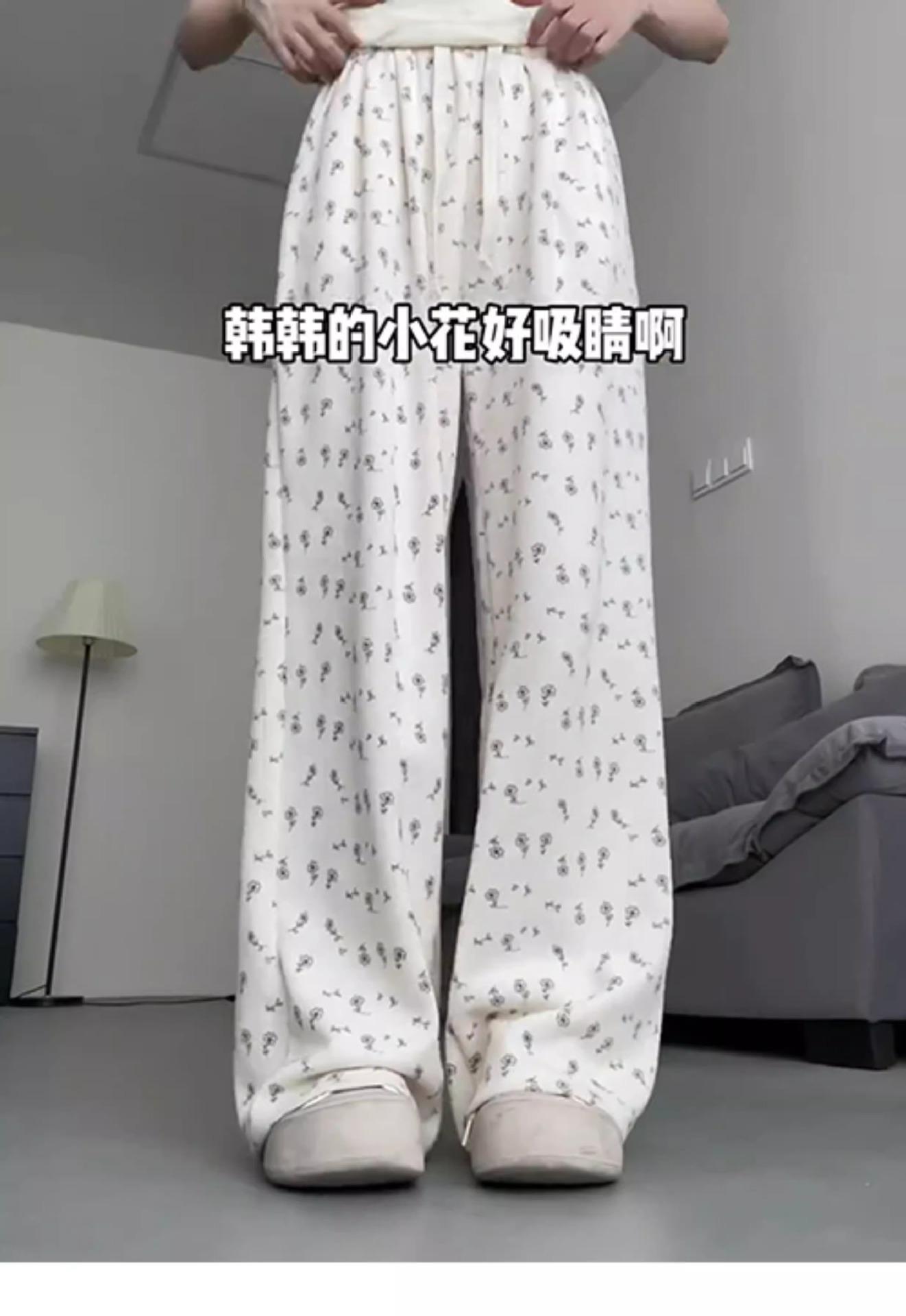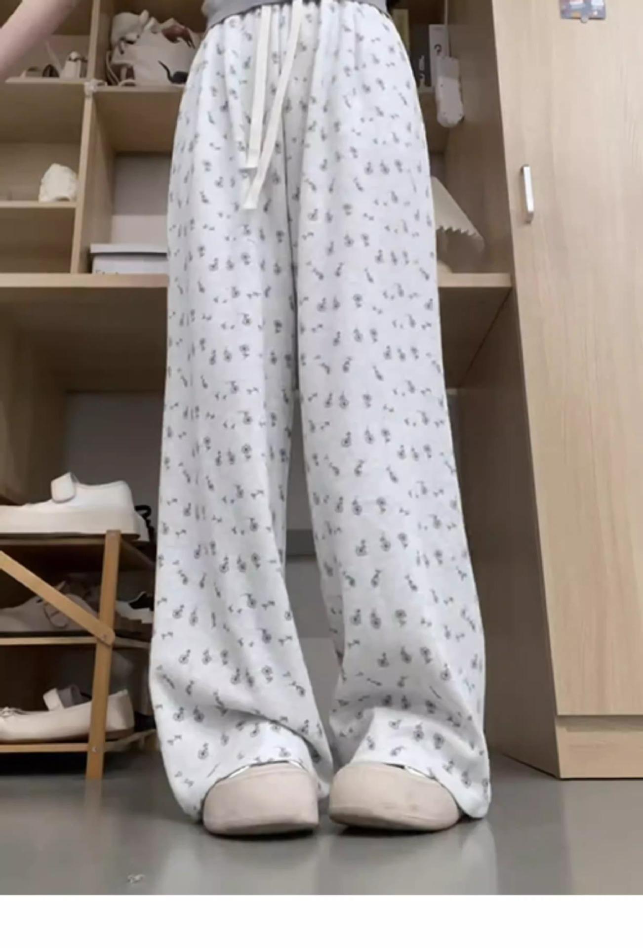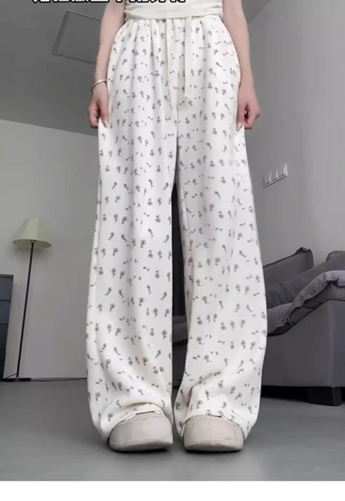 Pantalones rectos de verano 2025, nuevos pantalones florales de pierna ancha para mujer, cintura alta, sueltos, adelgazantes, informales, talla 145