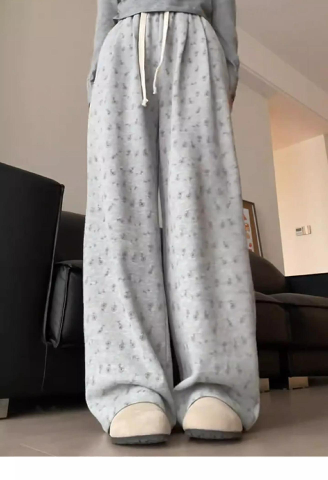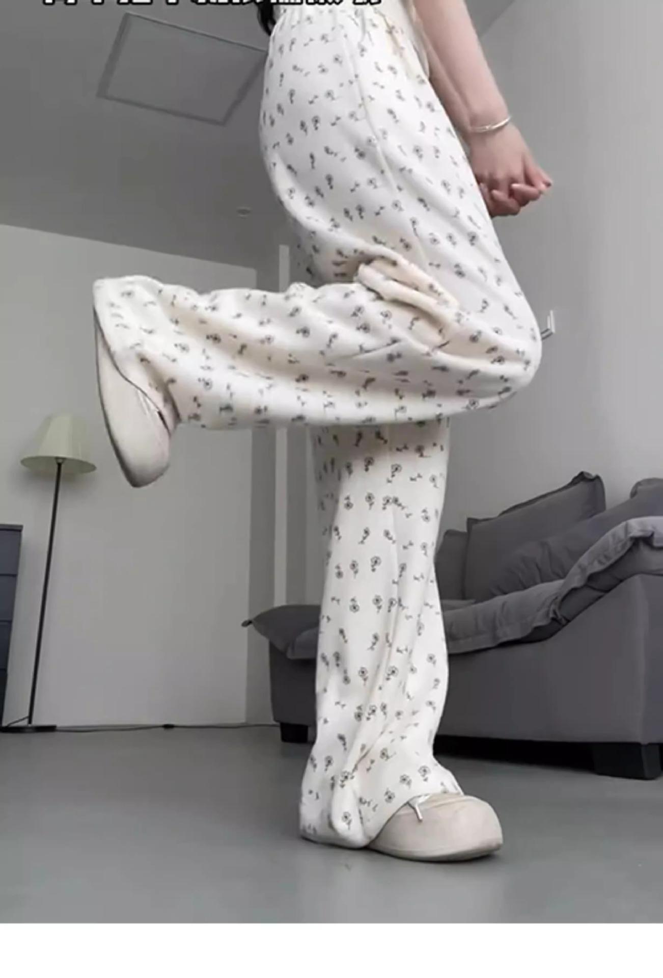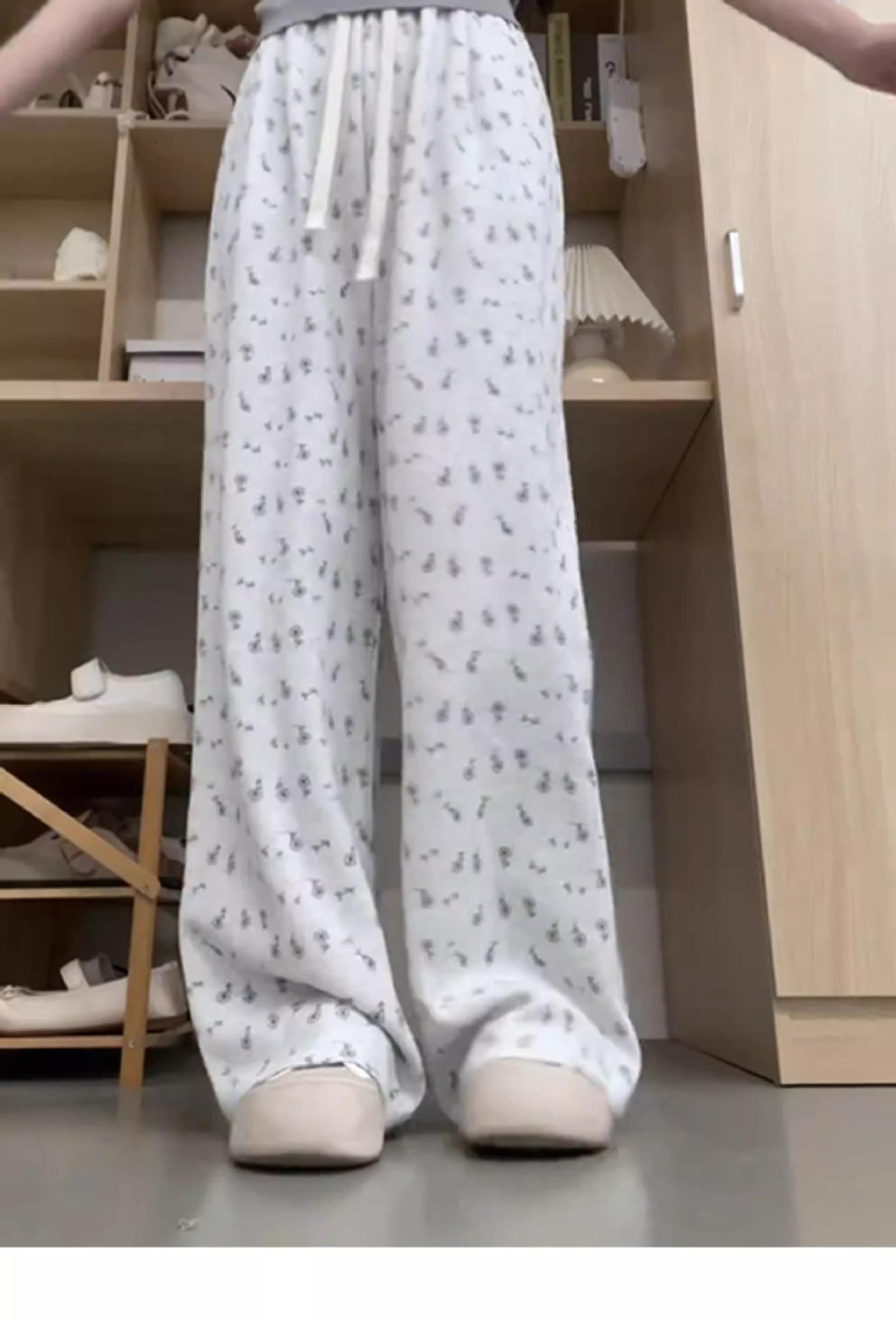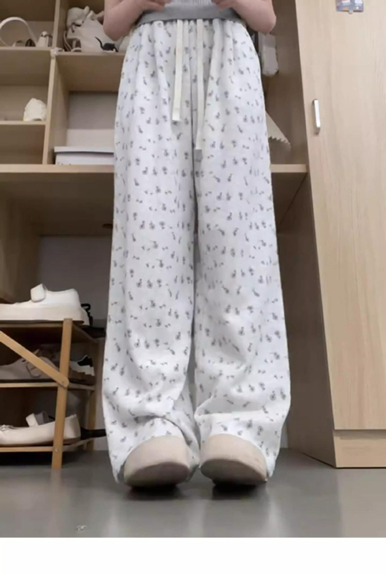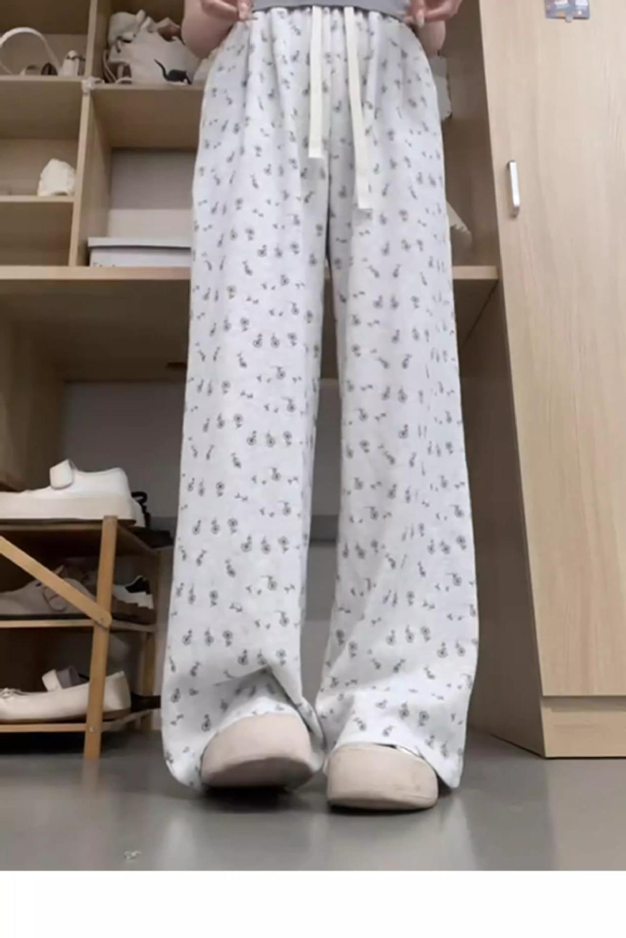 Pantalones rectos de verano 2025, nuevos pantalones florales de pierna ancha para mujer, cintura alta, sueltos, adelgazantes, informales, talla 145