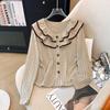 Suéter fino con cuello en V calado elegante de estilo francés para mujer, nuevo estilo de verano, top único y elegante de manga corta ajustado a la moda.