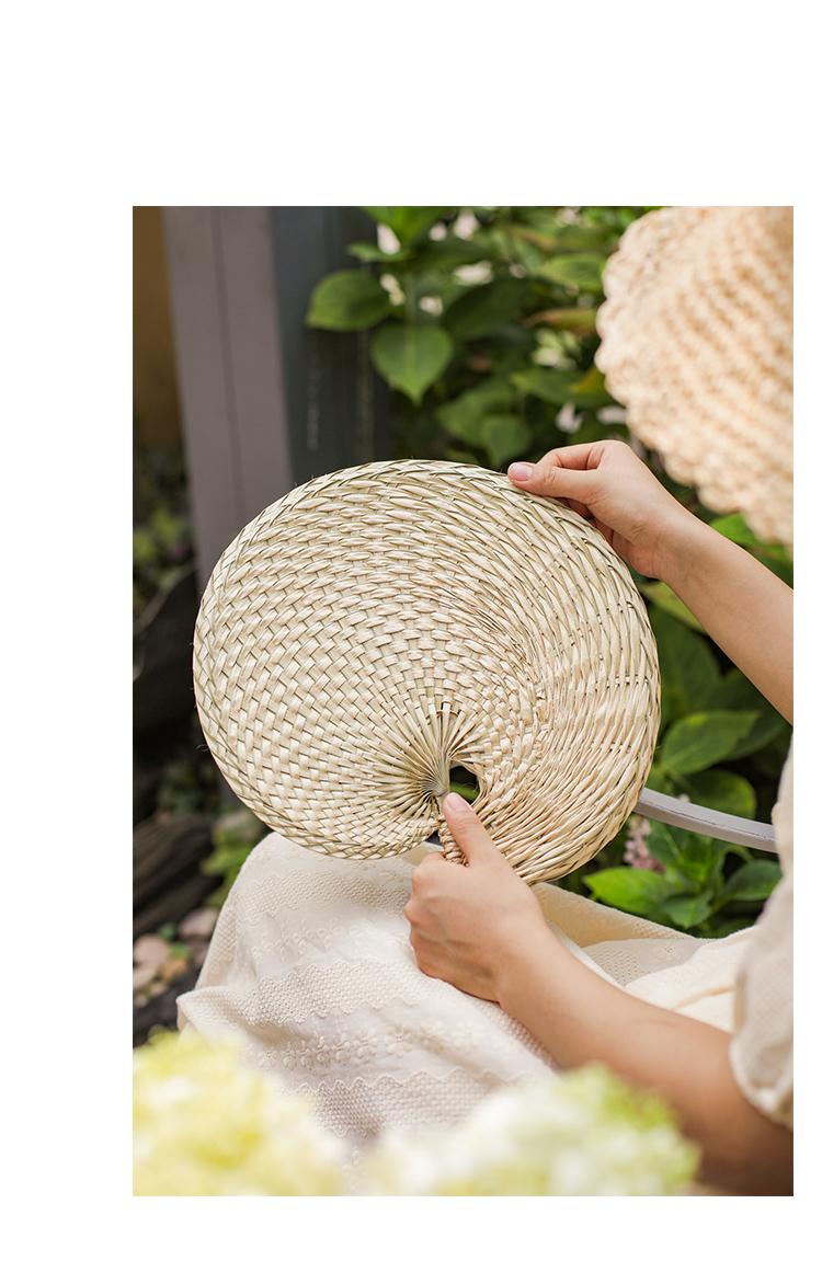 Xyt abanico de hoja marrón abanico de hoja de cola de gato natural hecho a mano tejido de hierba de cola de gato abanico de plátano tradicional antiguo de manivela abanico estilo antiguo