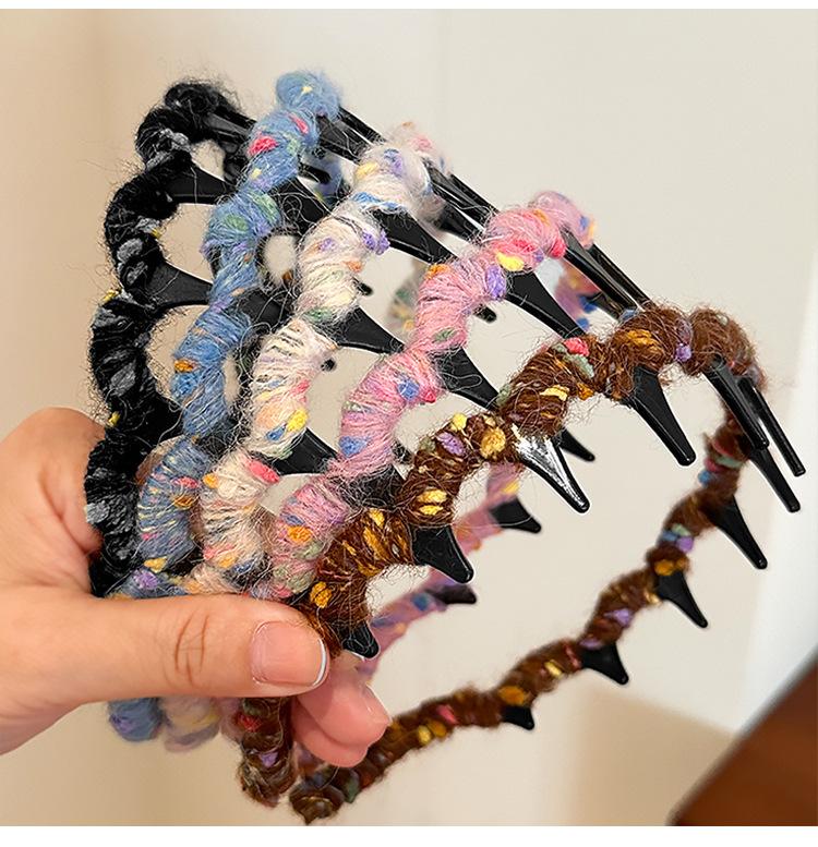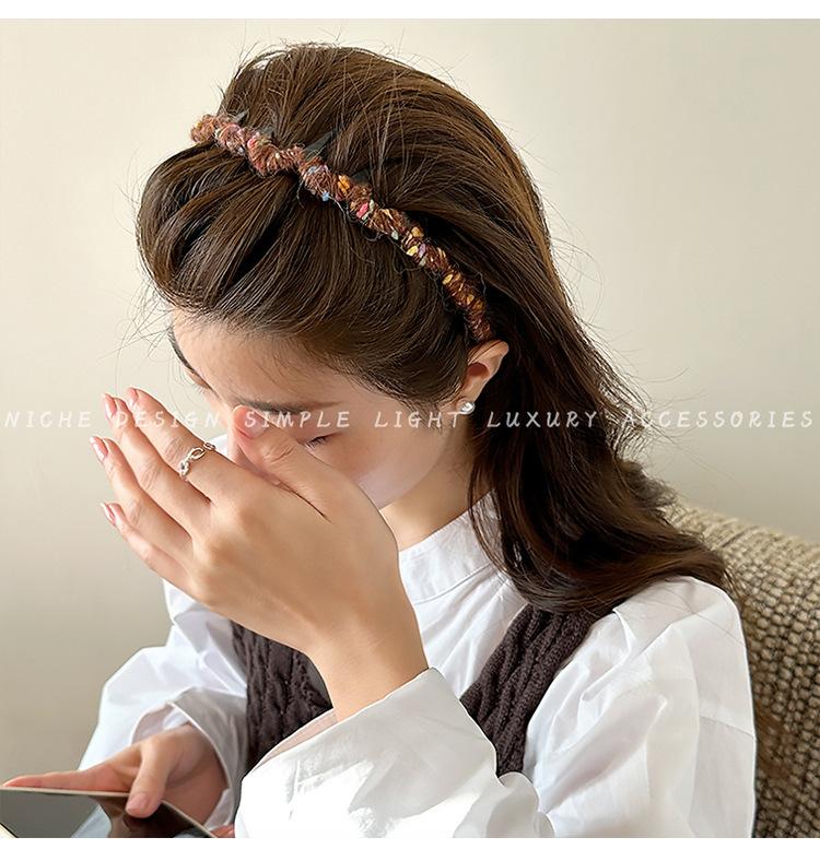Diadema de estilo coreano para otoño e invierno de 2024, nueva moda para mujer, diadema de lana de alta gama con ondas y parte superior craneal, accesorios para el cabello