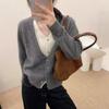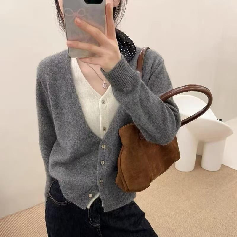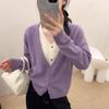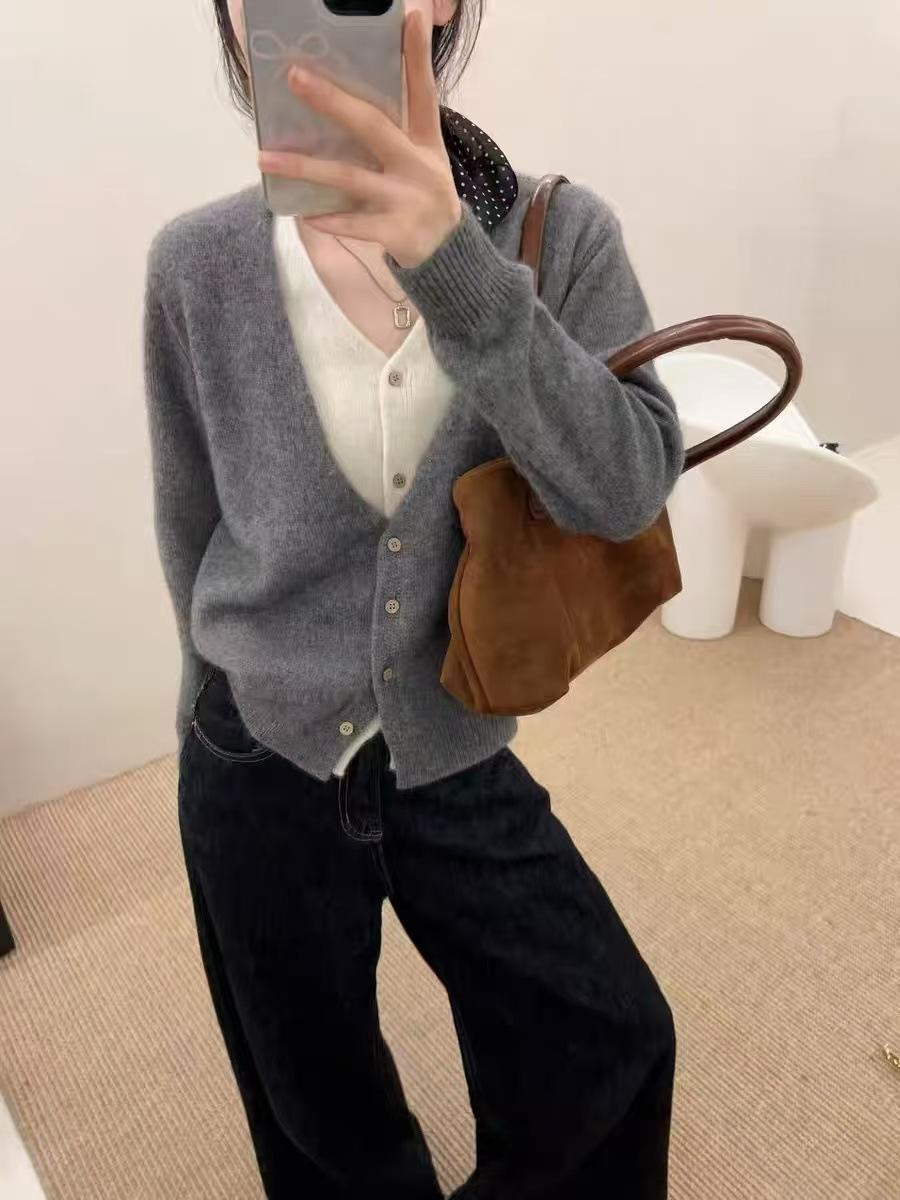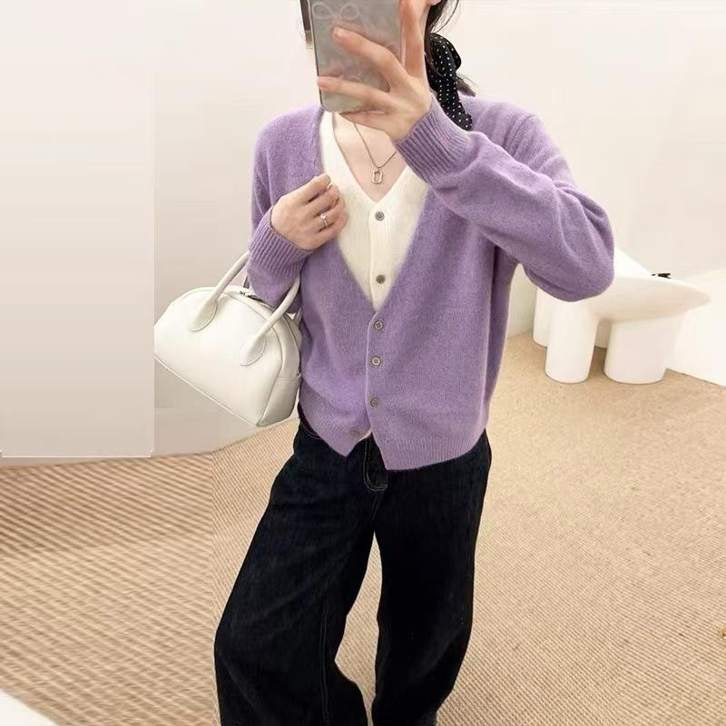 25 Suéteres Sencillos Falsos de Dos Piezas de Punto de Alta Calidad para Mujer Estación Europea Otoño e Invierno Nuevo Estilo Top Cuello en V Cárdigan de Punto