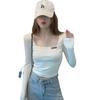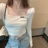 Camiseta de Manga Larga Bordada con Cuello Cuadrado Francés para Mujer Primavera y Otoño 2025 Versátil Slim Corta Ombliguera Camiseta Básica Slim