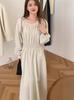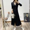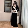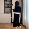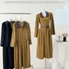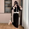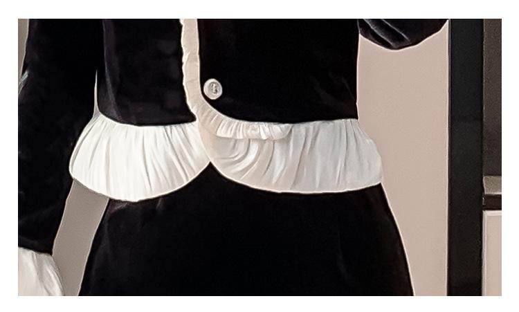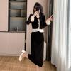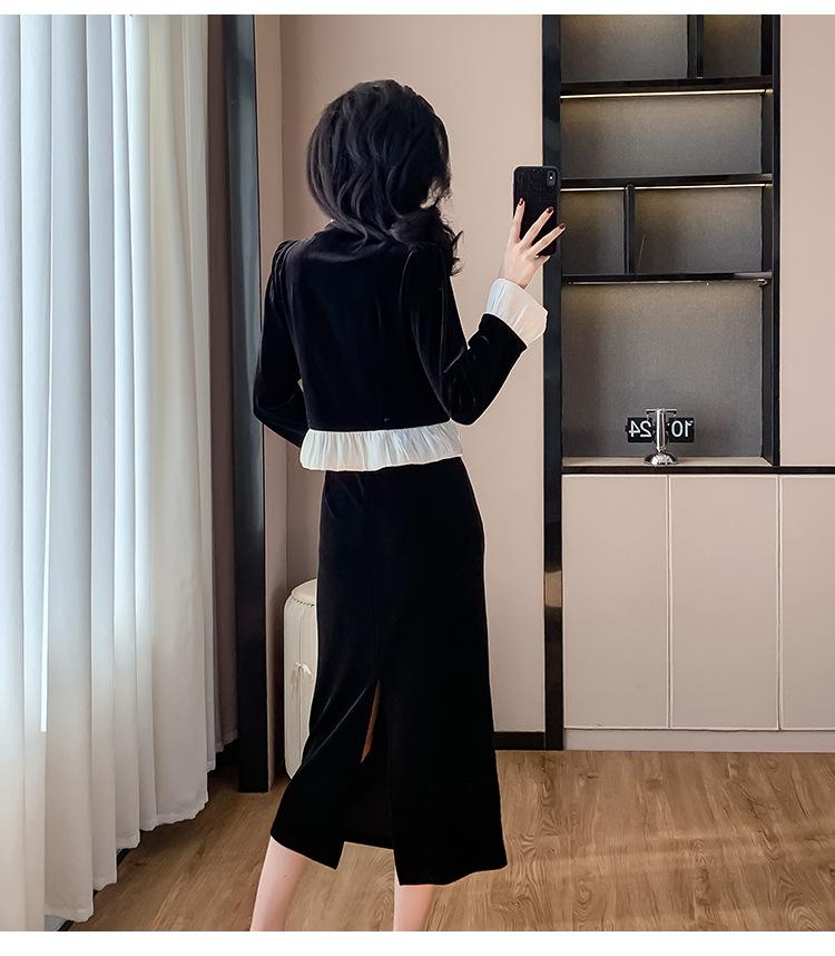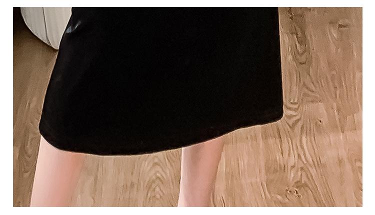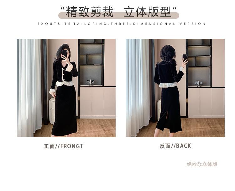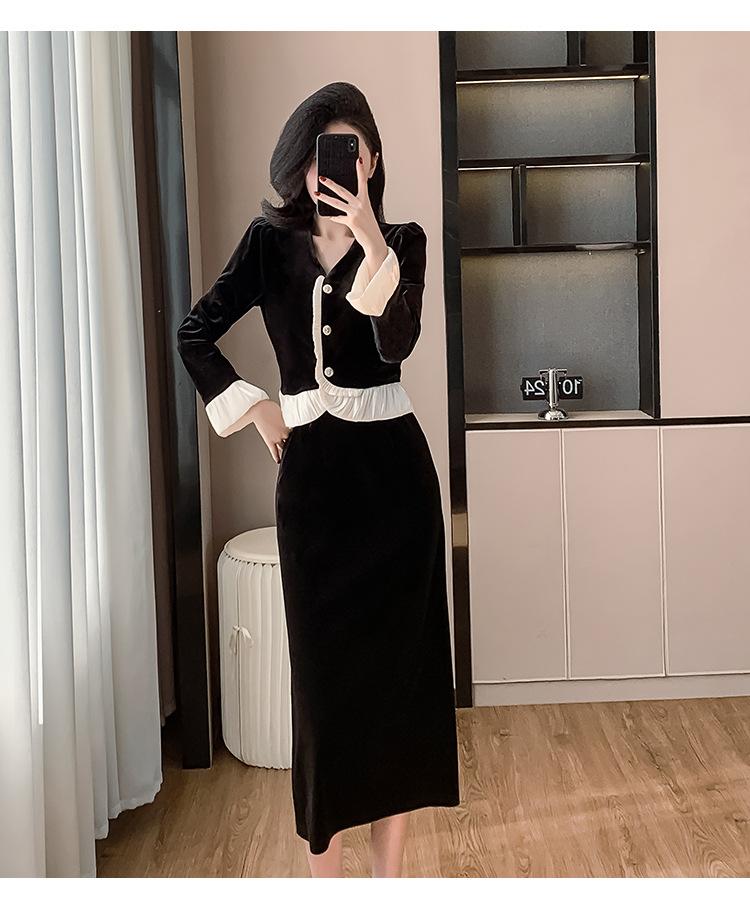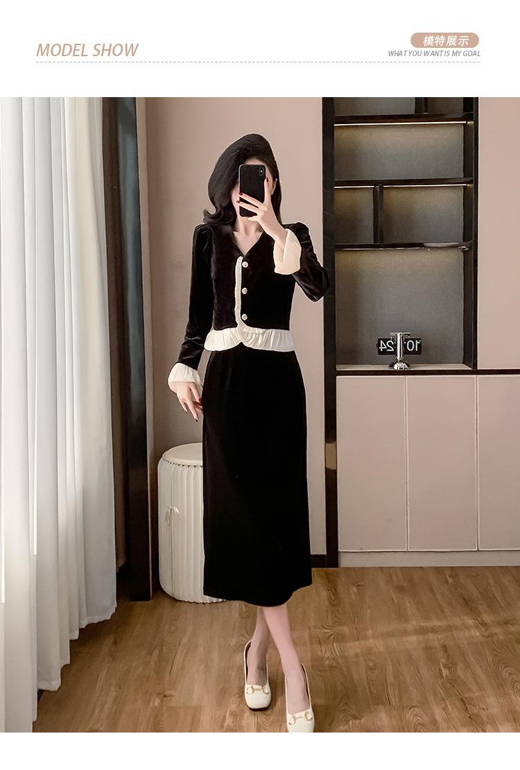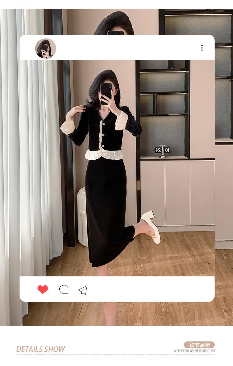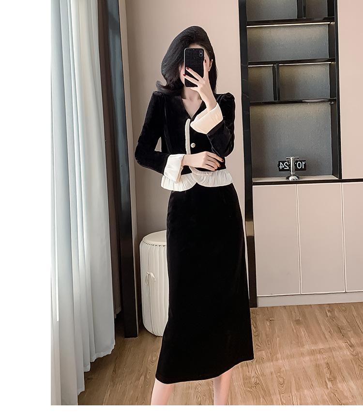Foto real otoño e invierno 2025 nuevo temperamento de socialité con volantes cuello en V francés estilo pequeño fragante falda larga de terciopelo de dos piezas