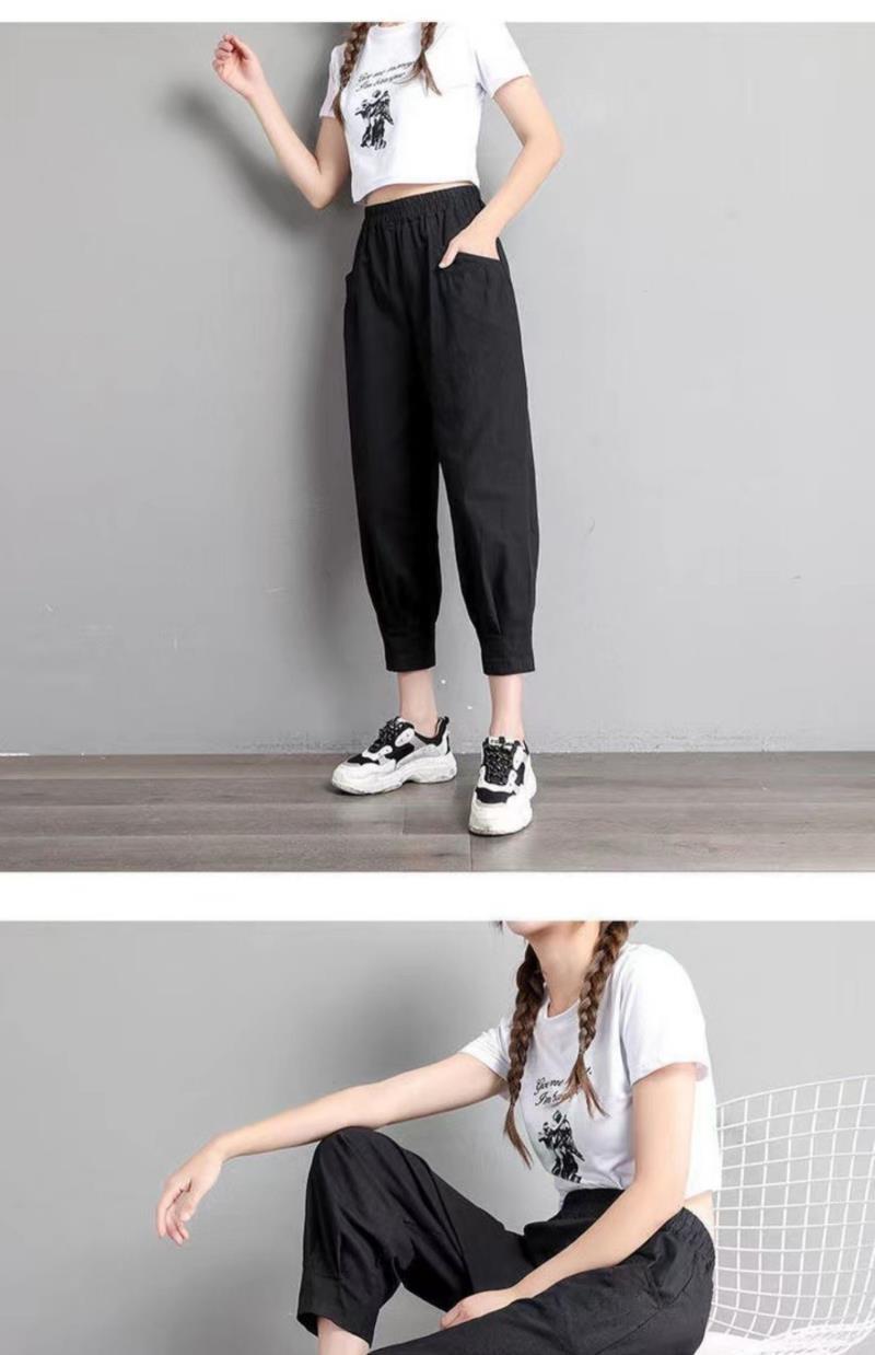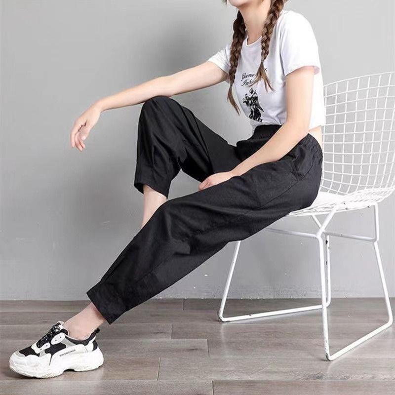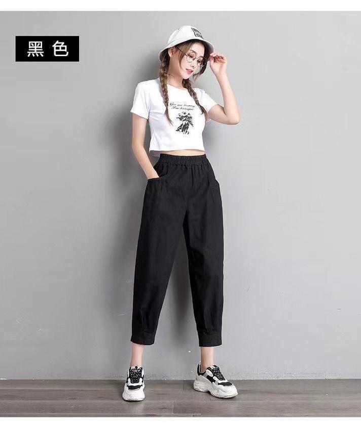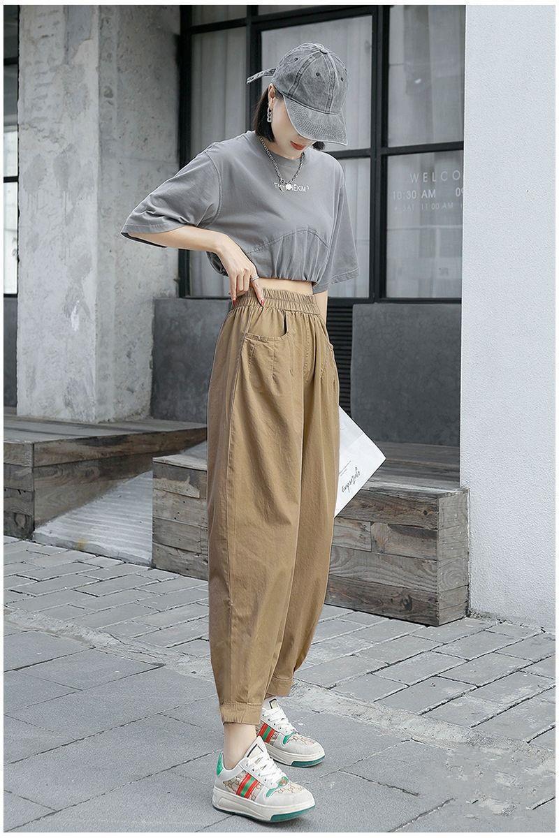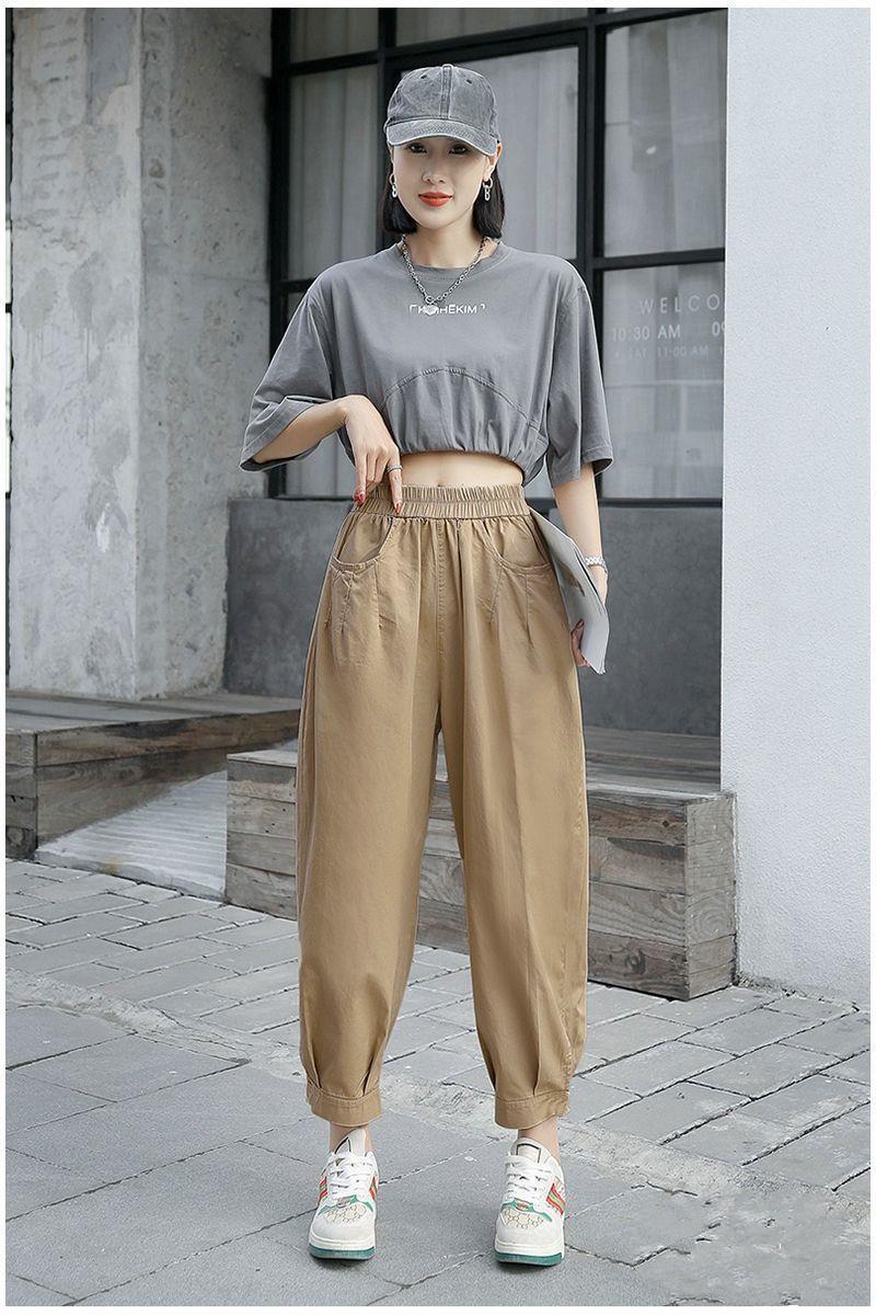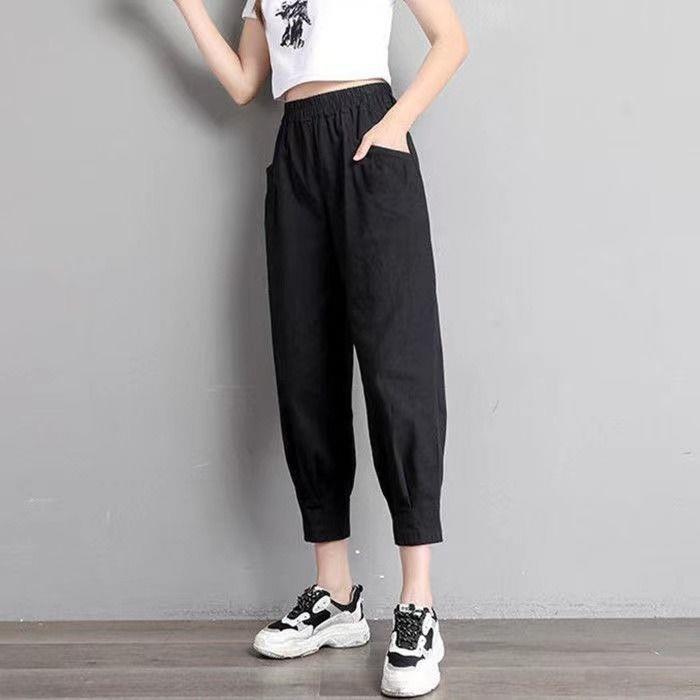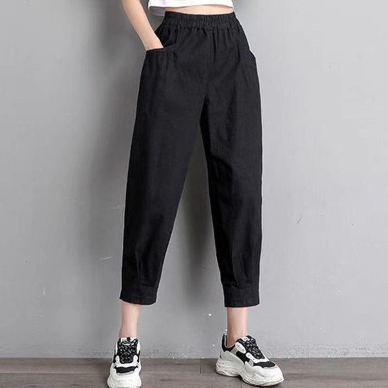 Pantalones harén de algodón puro para mujer, pantalón informal, ajustado, de cintura alta, holgado, versátil, adelgazante, con cintura elástica, para primavera y otoño
