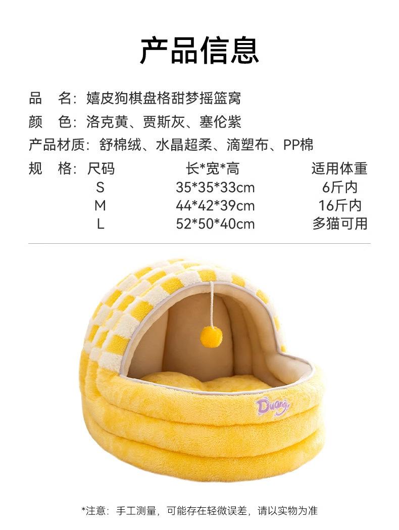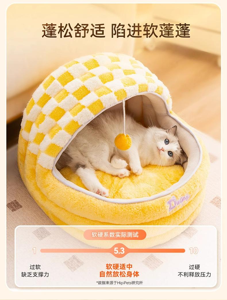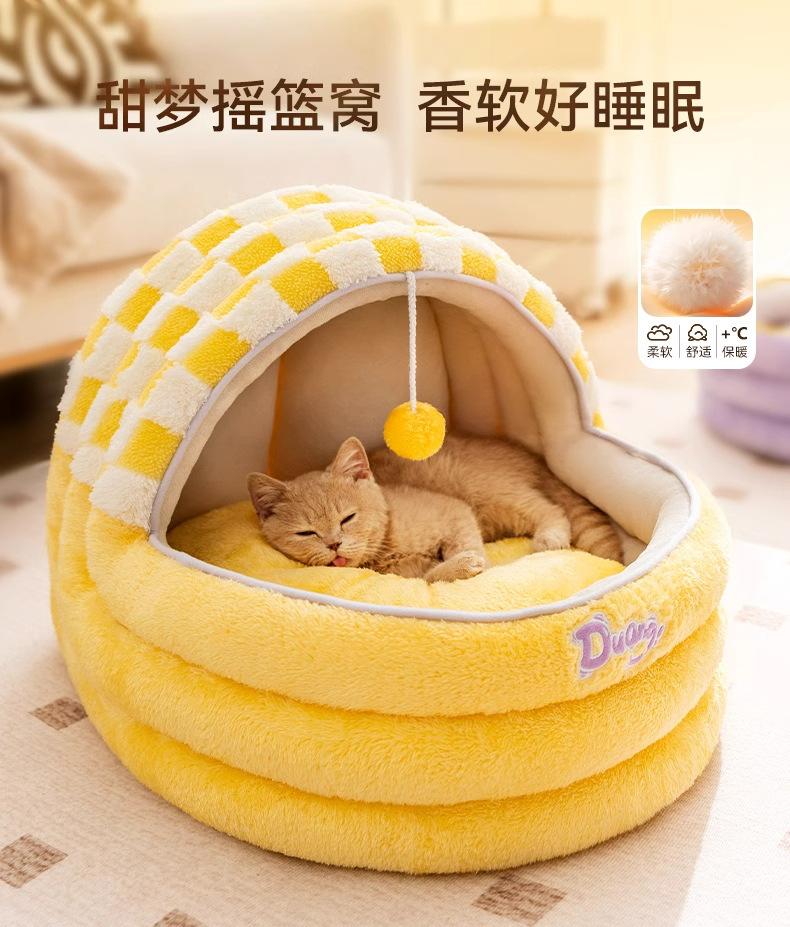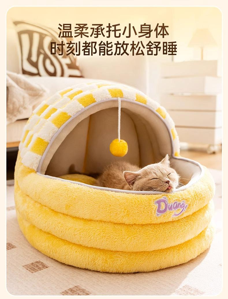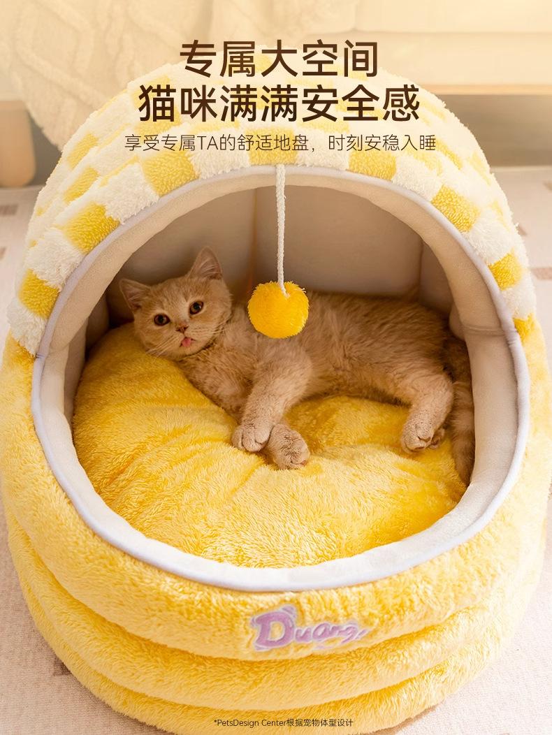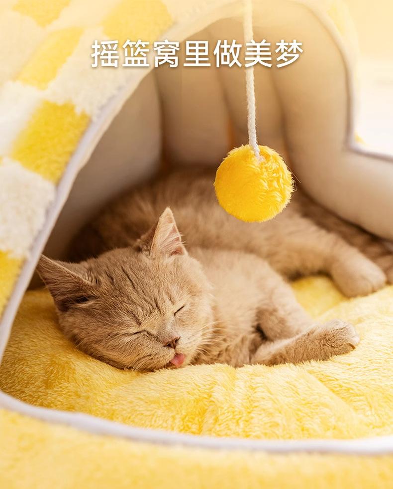 Otoño e Invierno Cuna de Sueño Dulce Nido para Gatos Espacio Amplio Casa para Gatos Cama para Gatos Universal para las Cuatro Estaciones Nido Seguro Semi-cerrado para Mascotas