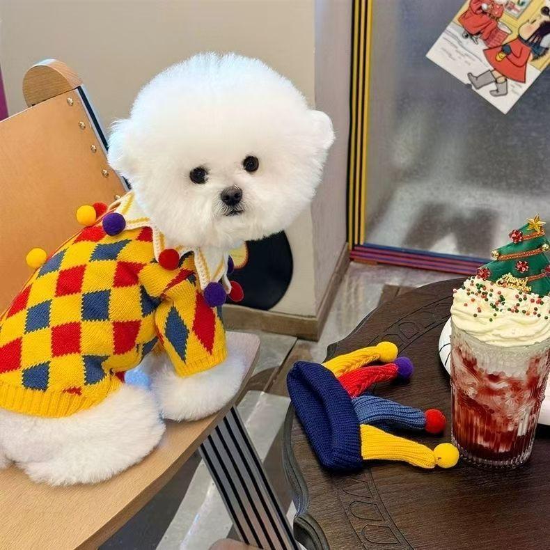 Suéter de otoño e invierno para perro, bonito, divertido y loco, con diseño de payaso de circo, para Halloween, traje de gato, ropa para perro.