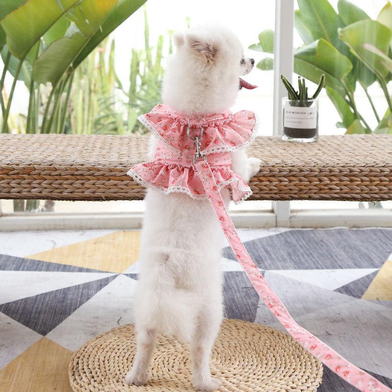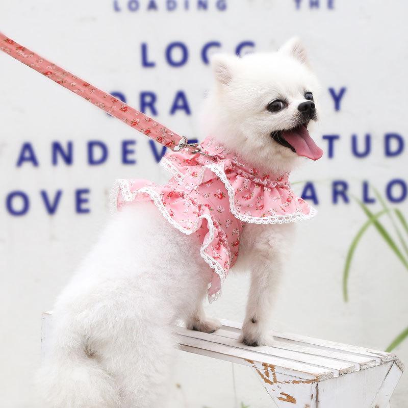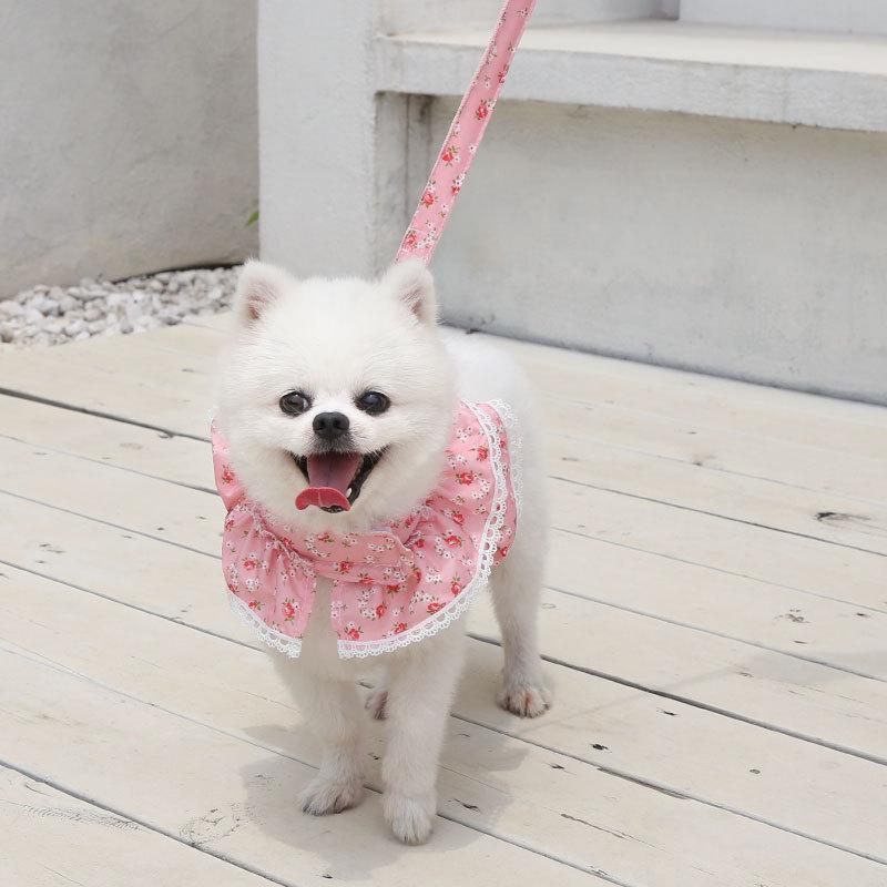 ◎▽241 harness and leash with tender green floral flowers◎▽