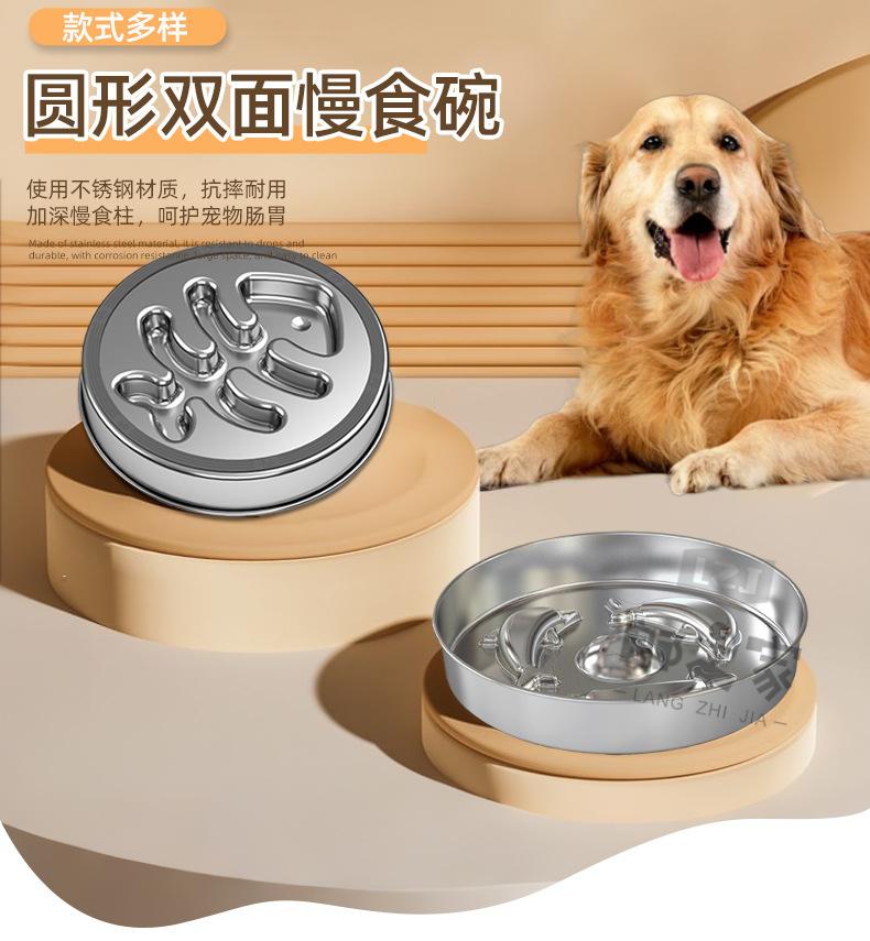 Tazón para comida lenta para mascotas 304 transfronterizo de acero inoxidable para gato perro tazón de arroz perro grande antideslizante recipiente para comida tazón para beber al por mayor