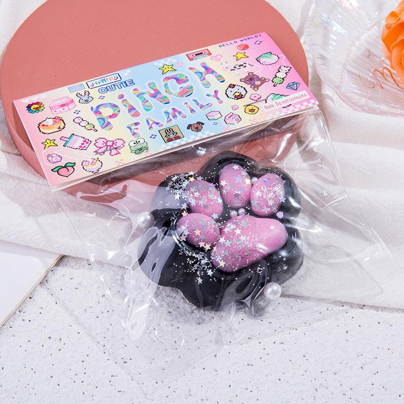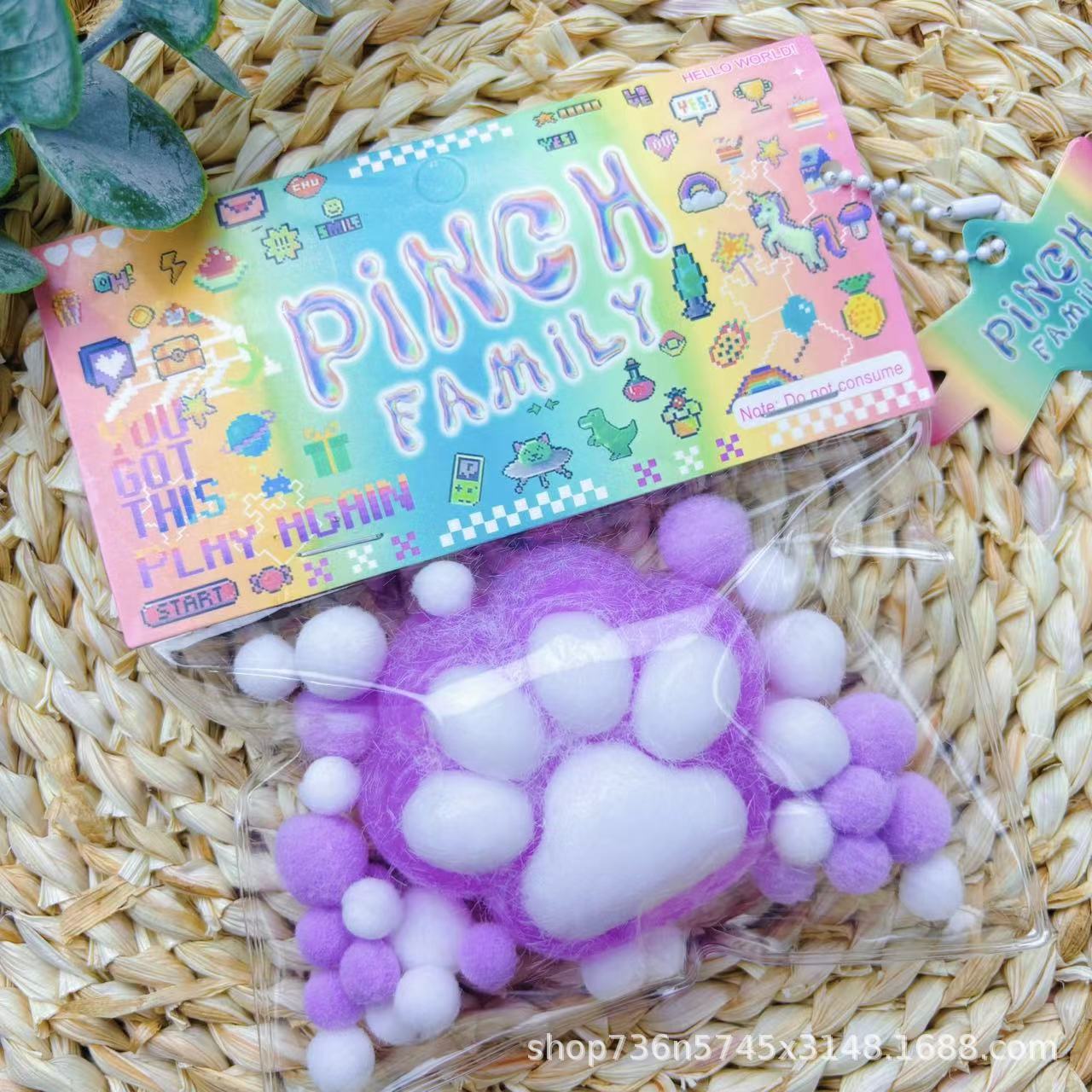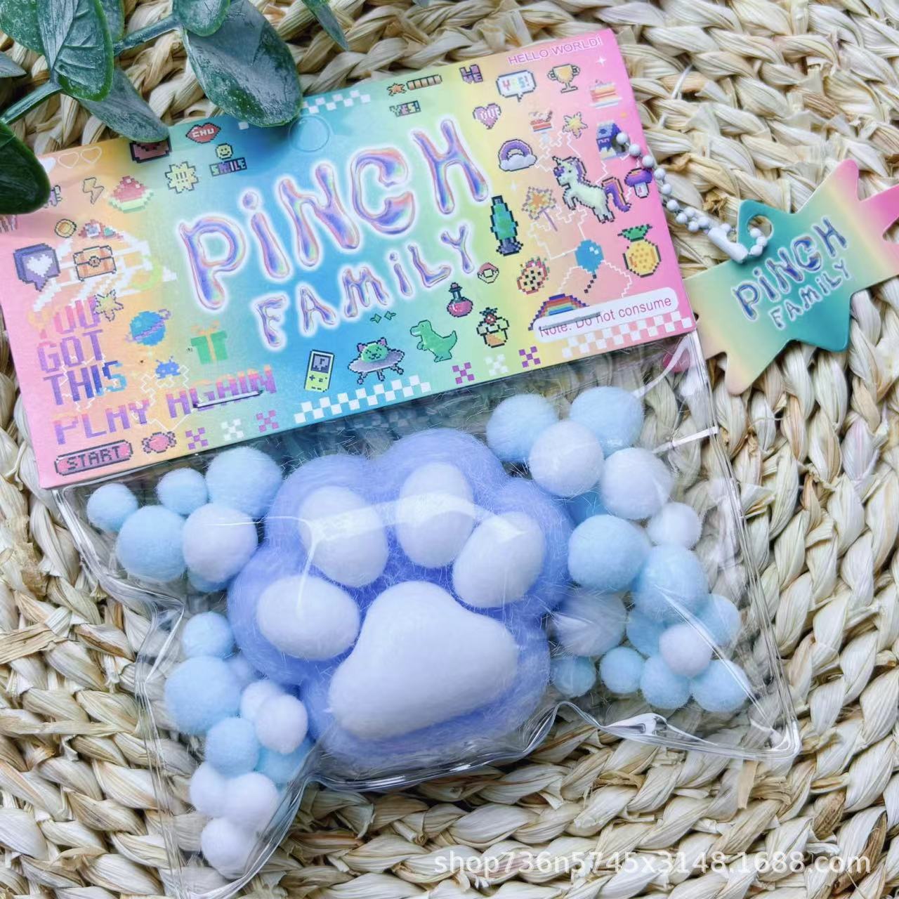 Decompression plush cat paw pinch jelly popular stress relief toy cat paw flocking wax with slow rebound for girls