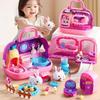 Novas crianças menina brincar de casinha brinquedo coelho boneca animal de estimação casa de boneca menina princesa presente de aniversário