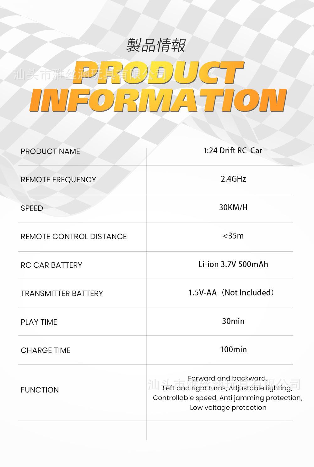 Nombre del producto:1:24Coche de drift con tracción en las cuatro ruedas