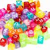 100 Piezas/Paquete Cuentas Cuadradas Transparentes Coloridas con Letras 26 Letras Inglesas Cuentas de Agujero Grande Cuentas Sueltas Cuentas para Pulsera DIY