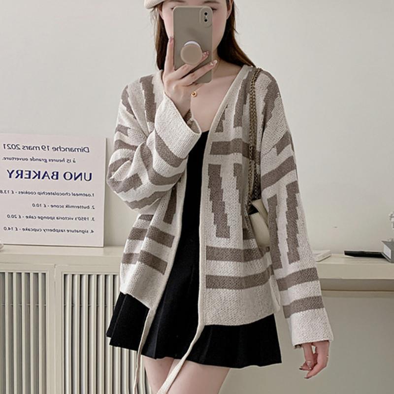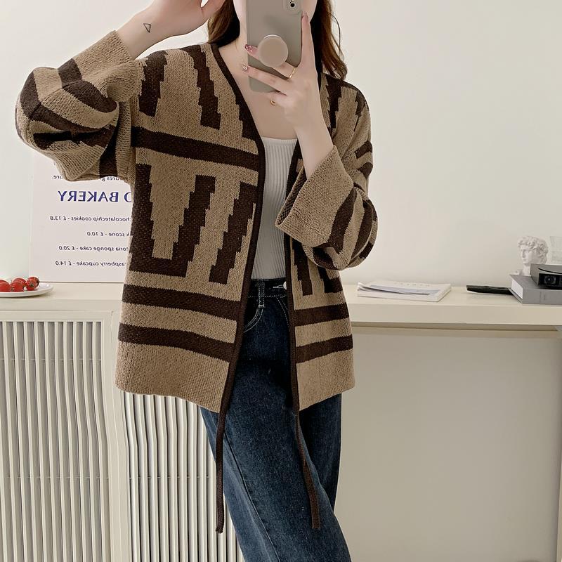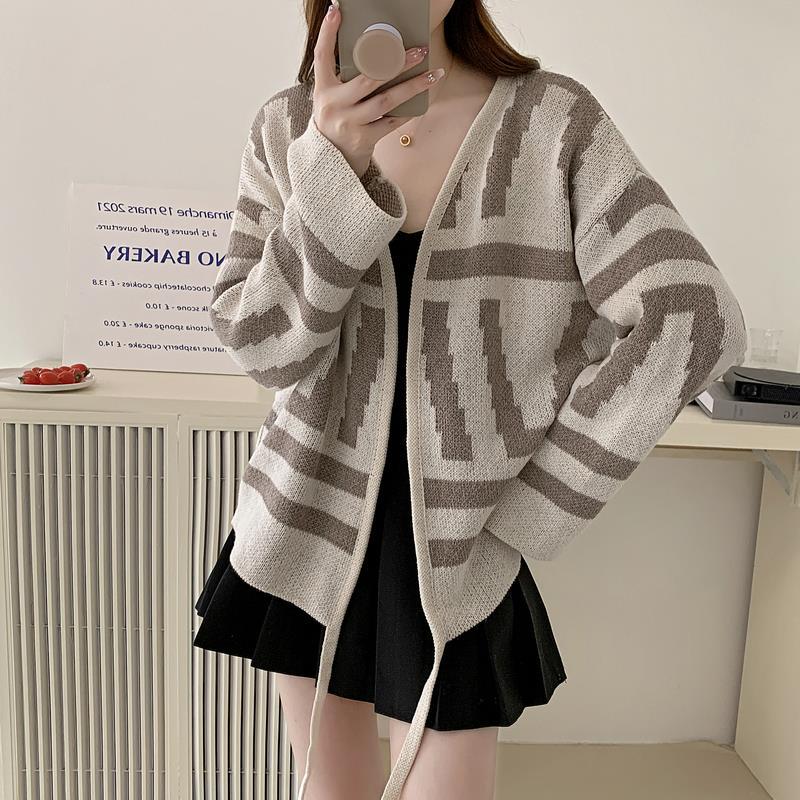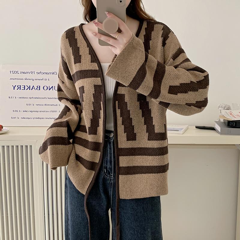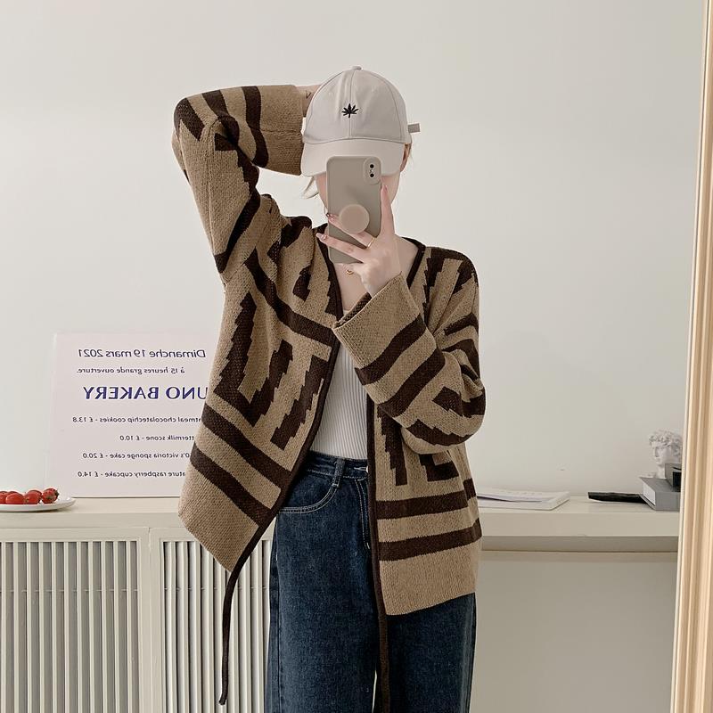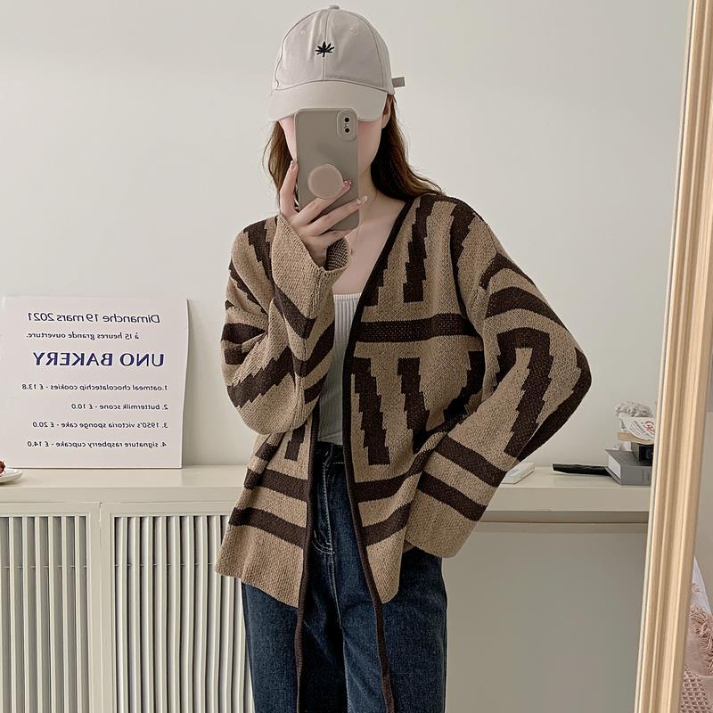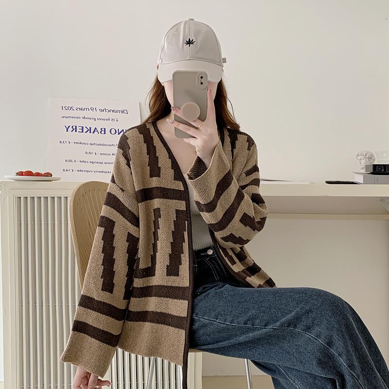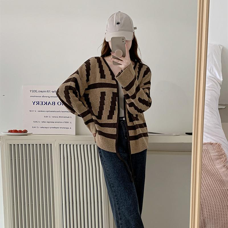 Cárdigan de Punto Grueso con Cuello en V para Otoño e Invierno 2025, Diseño para Mujer, Estilo Holgado y Relajado, Chaqueta Suéter a la Moda
