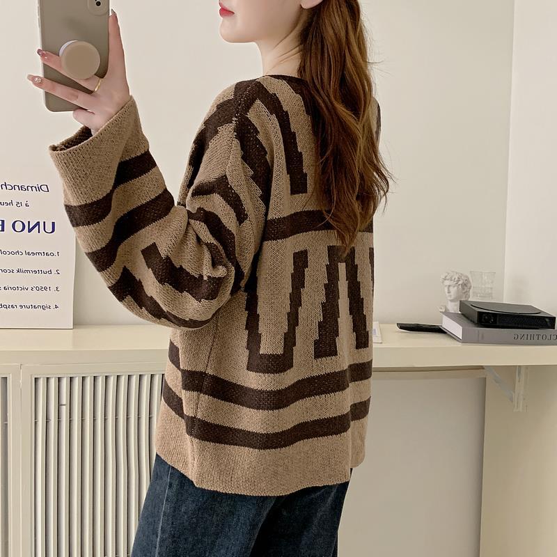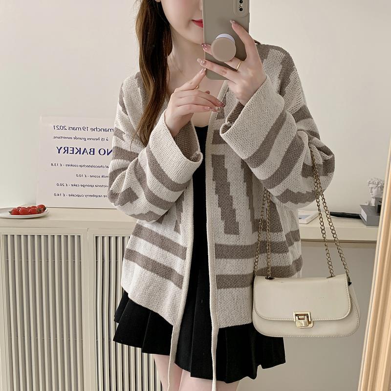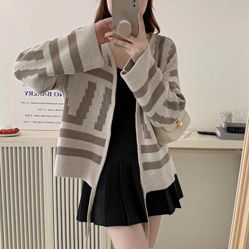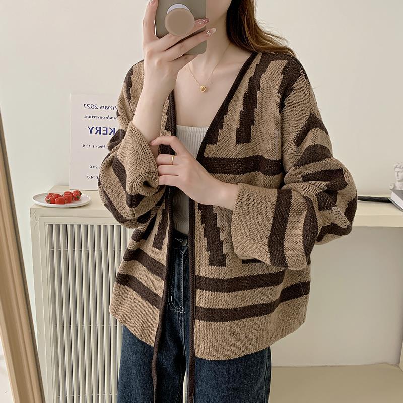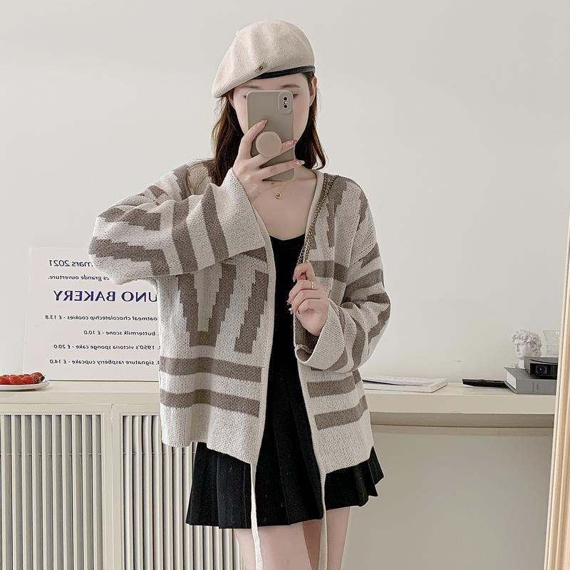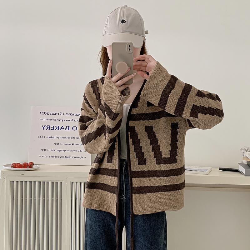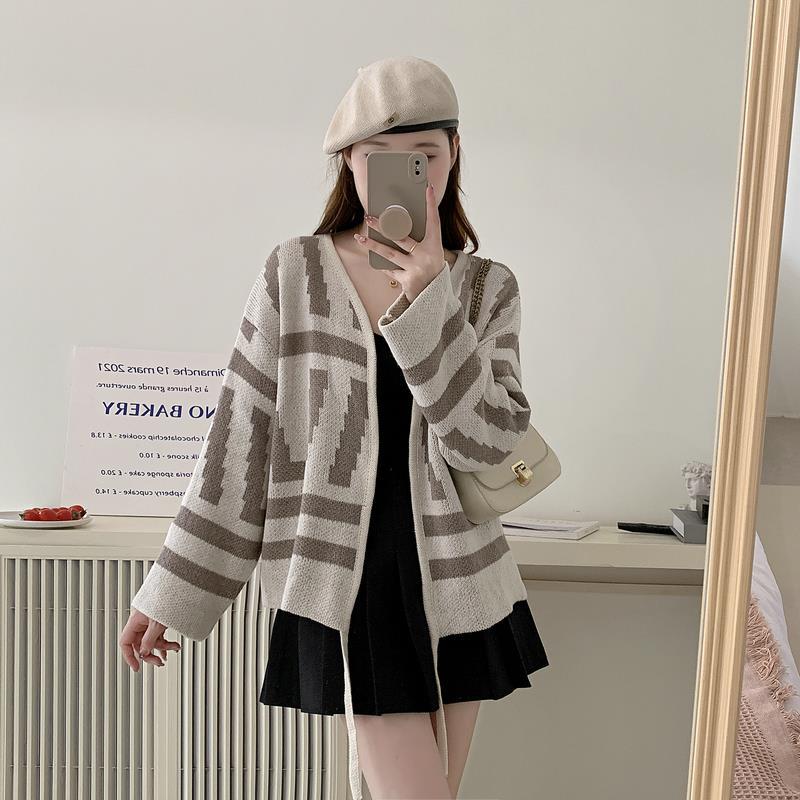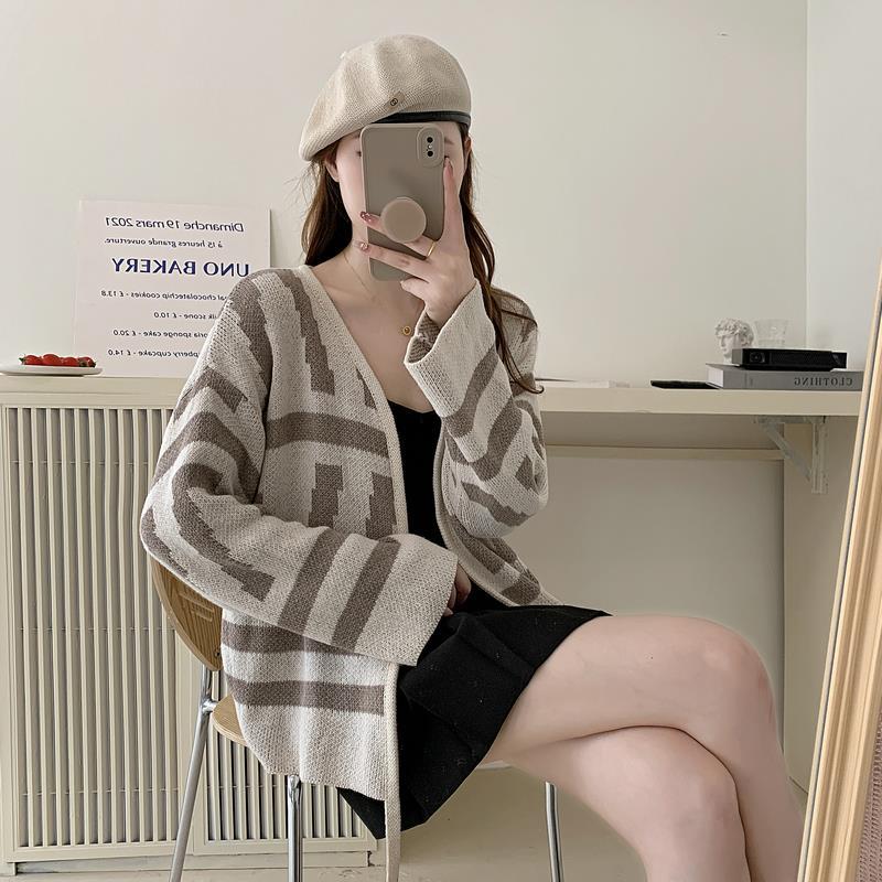Cárdigan de Punto Grueso con Cuello en V para Otoño e Invierno 2025, Diseño para Mujer, Estilo Holgado y Relajado, Chaqueta Suéter a la Moda