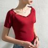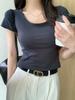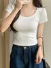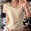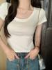 Camiseta básica de manga corta con hombros descubiertos y color liso para mujer, ropa de verano de dopamina, top corto ajustado de algodón con cuello redondo bajo para chica sexy