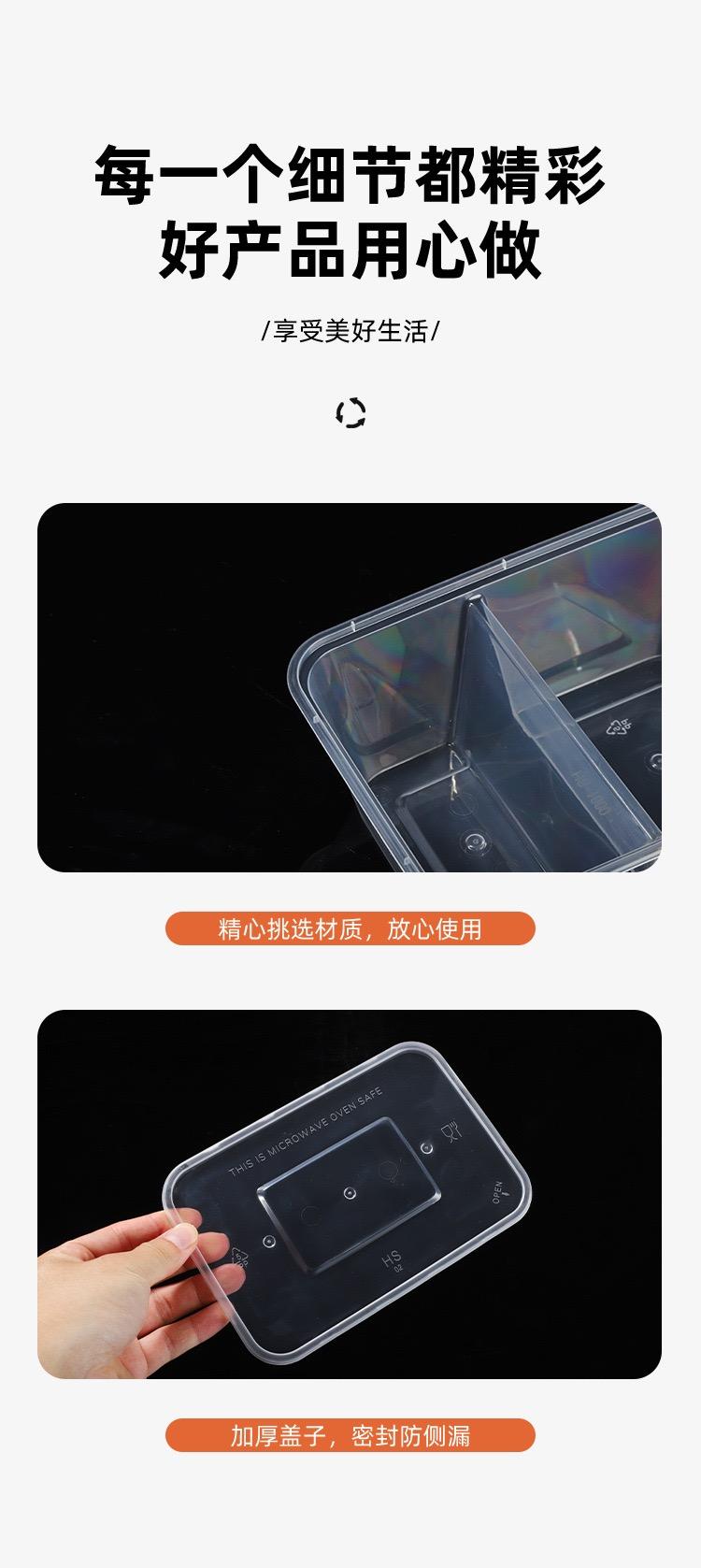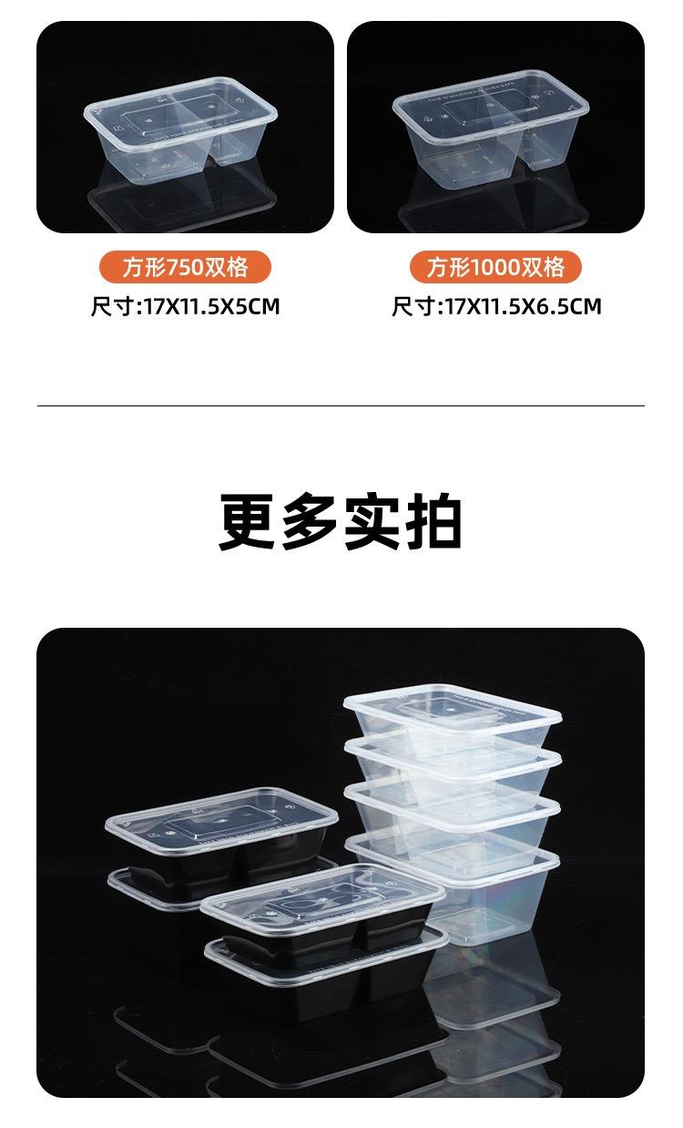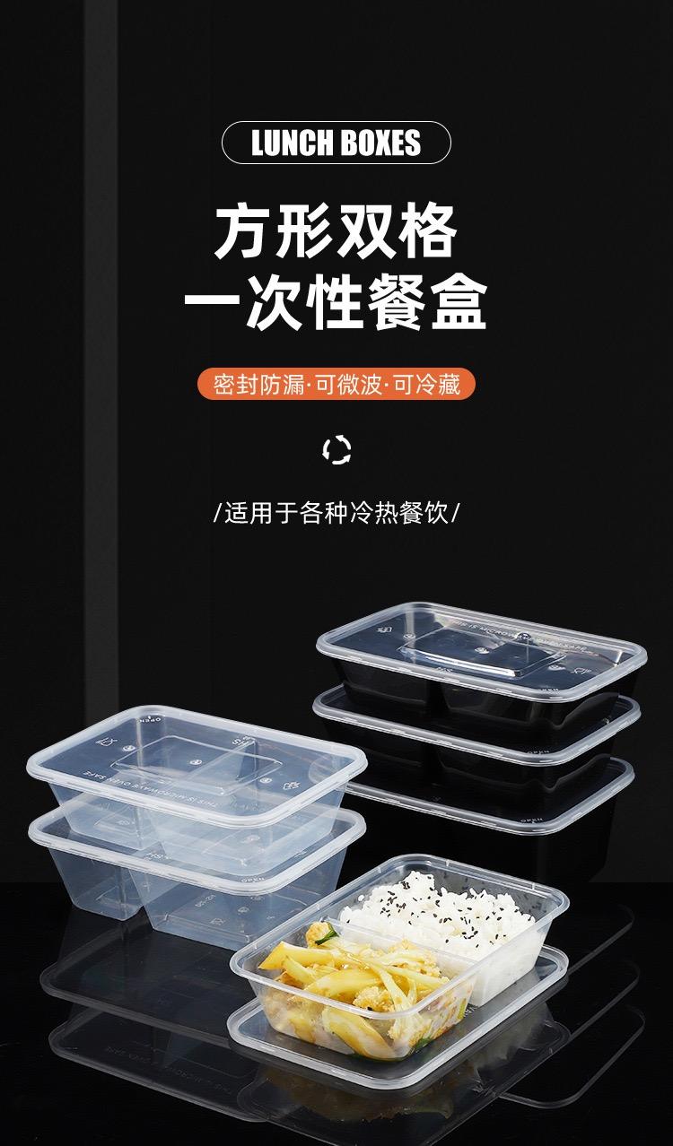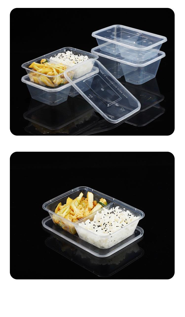 Xyt Lonchera Desechable Rectangular Transparente de Plástico Grueso de Dos Compartimentos para Llevar Empaque de Comida Rápida Lonchera con Tapa