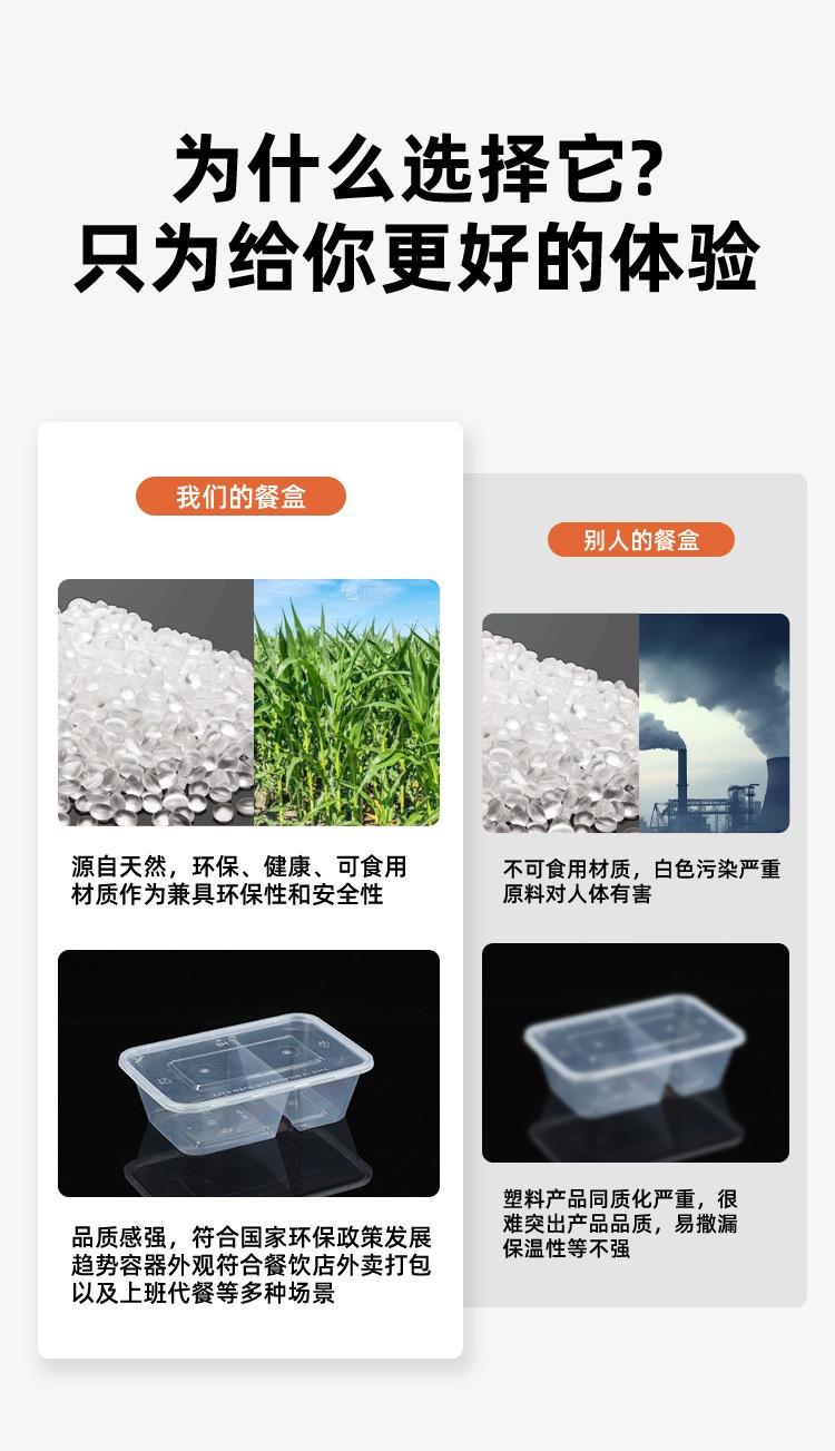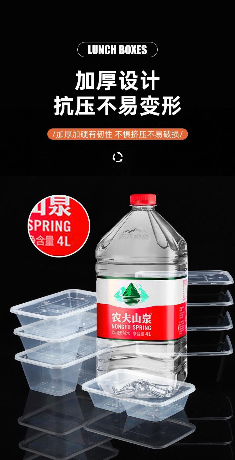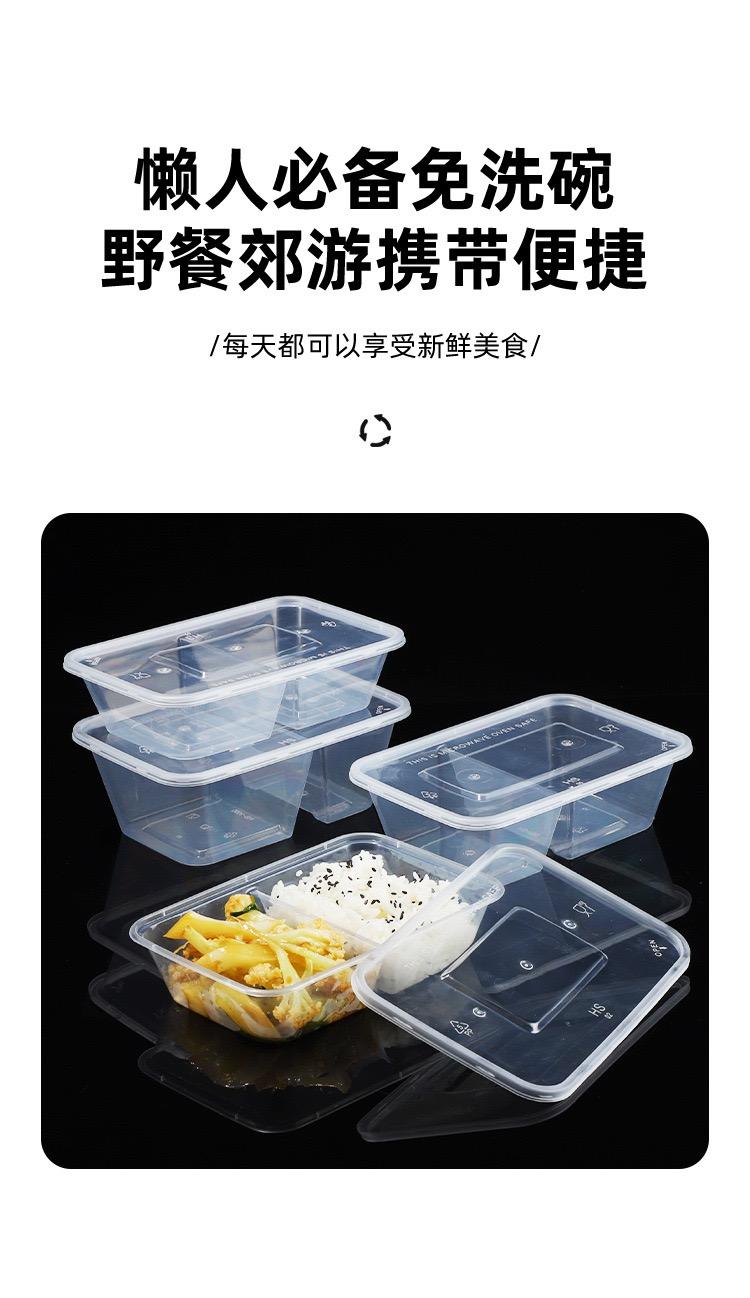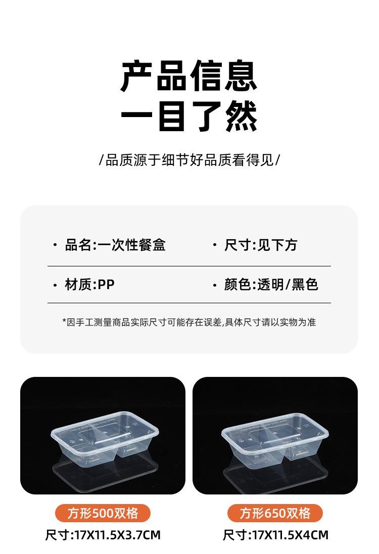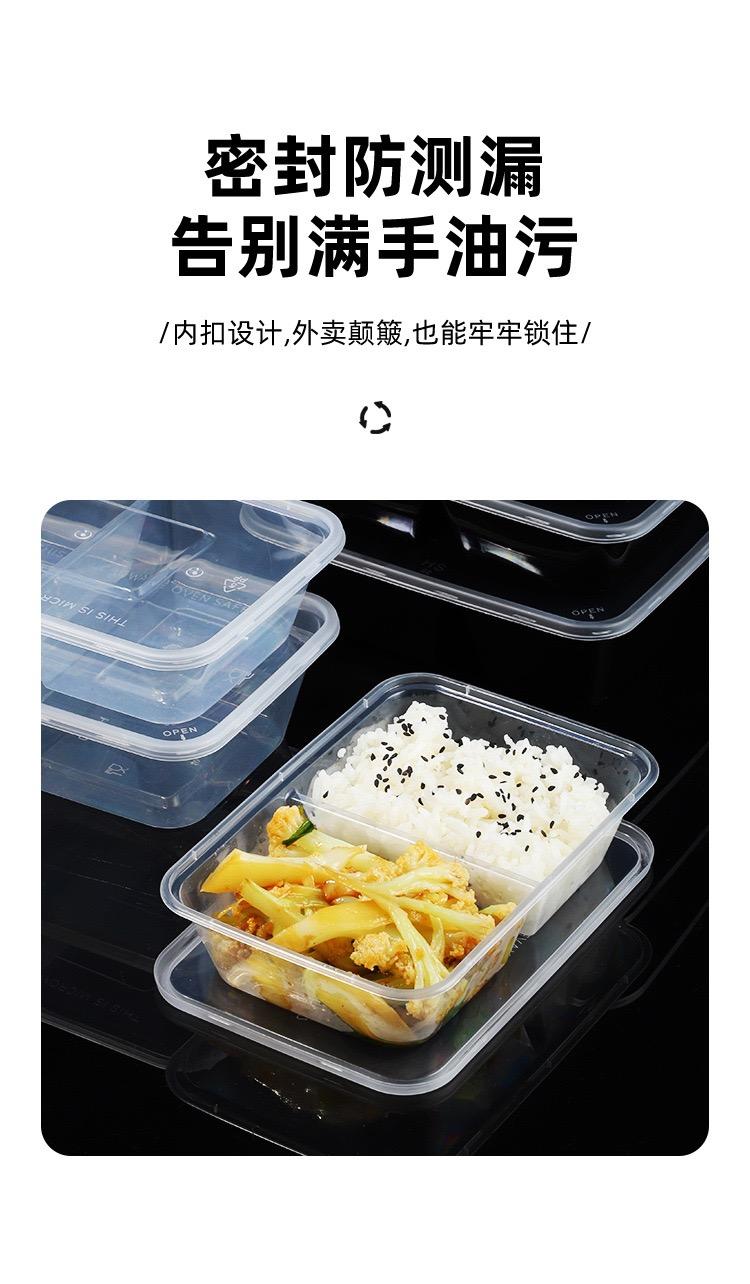 Xyt Lonchera Desechable Rectangular Transparente de Plástico Grueso de Dos Compartimentos para Llevar Empaque de Comida Rápida Lonchera con Tapa