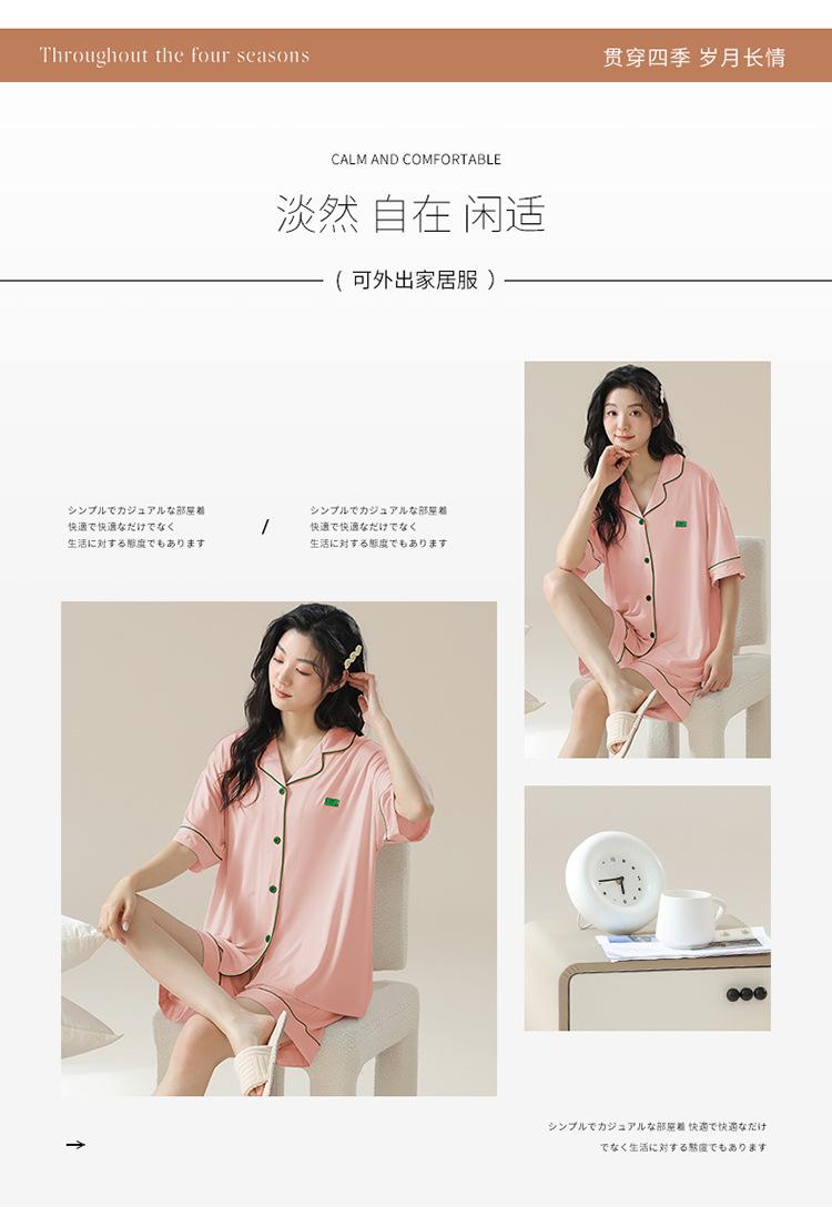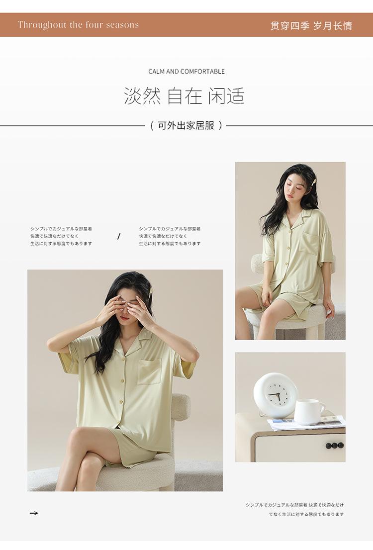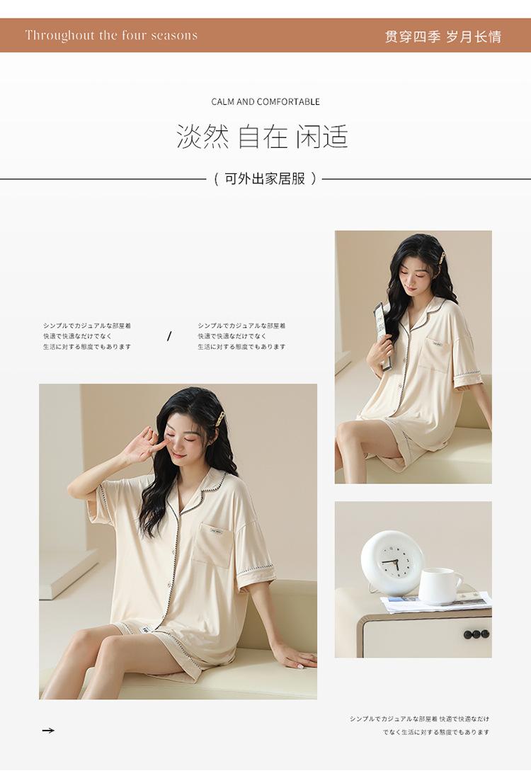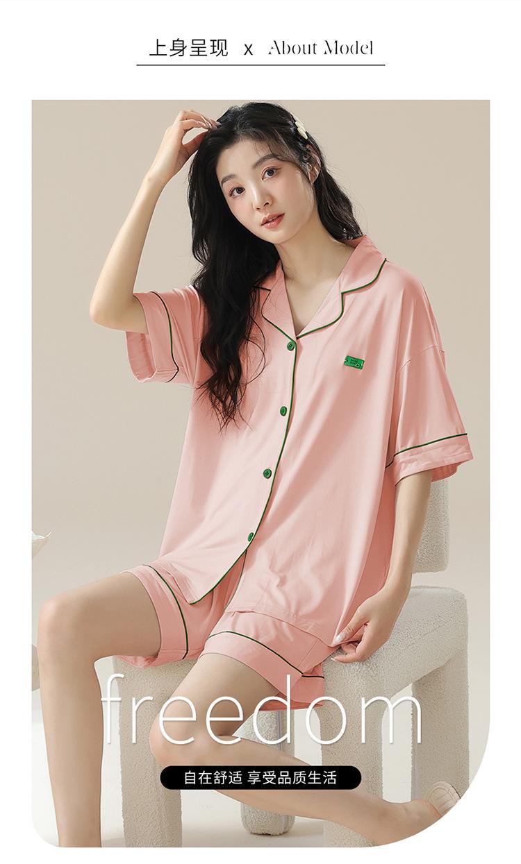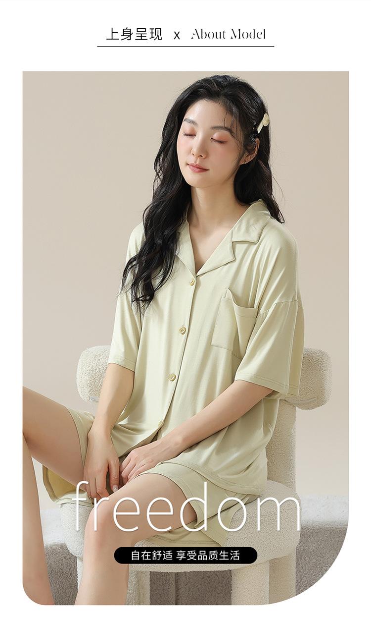 Pijamas de modal para mujer, de verano, de manga corta, 2024, nuevo, sencillo, de alta gama, cárdigan, informal, de color liso, ropa para el hogar