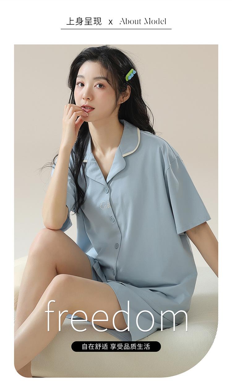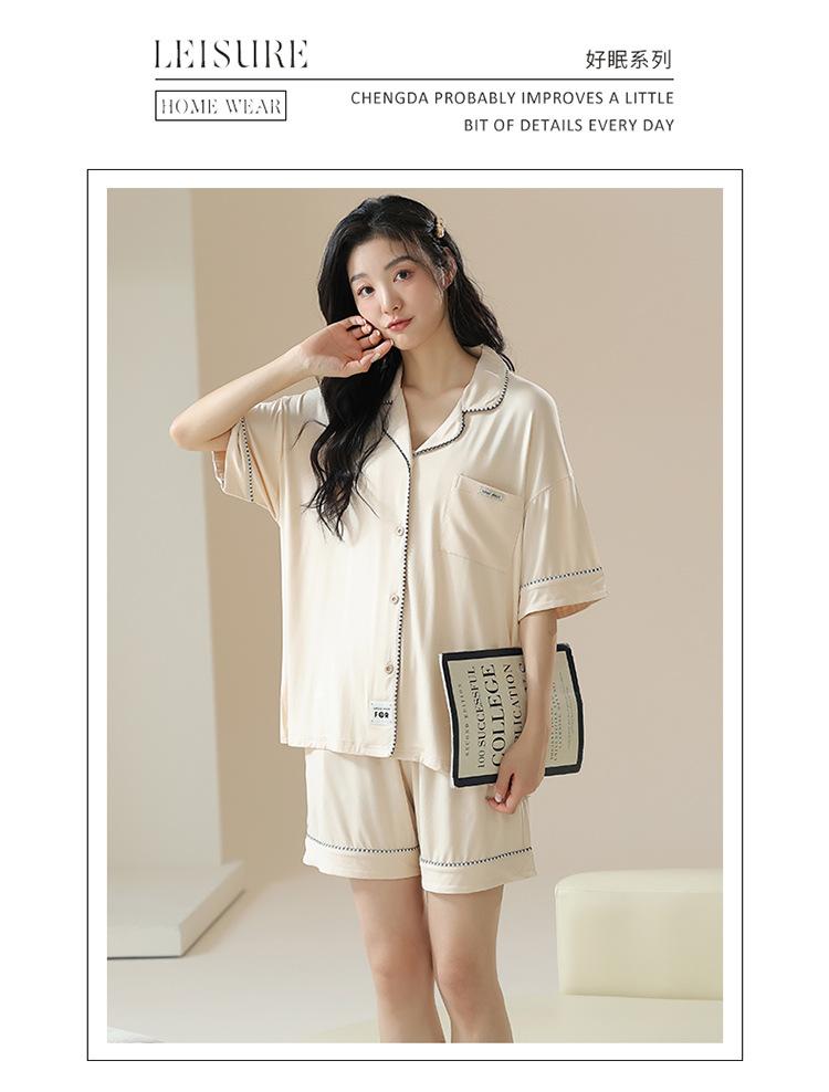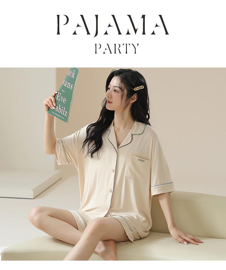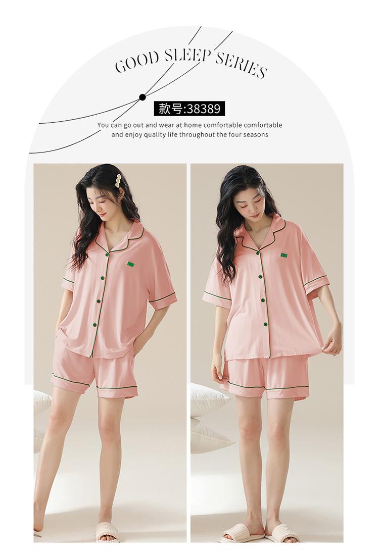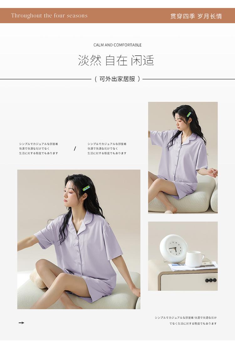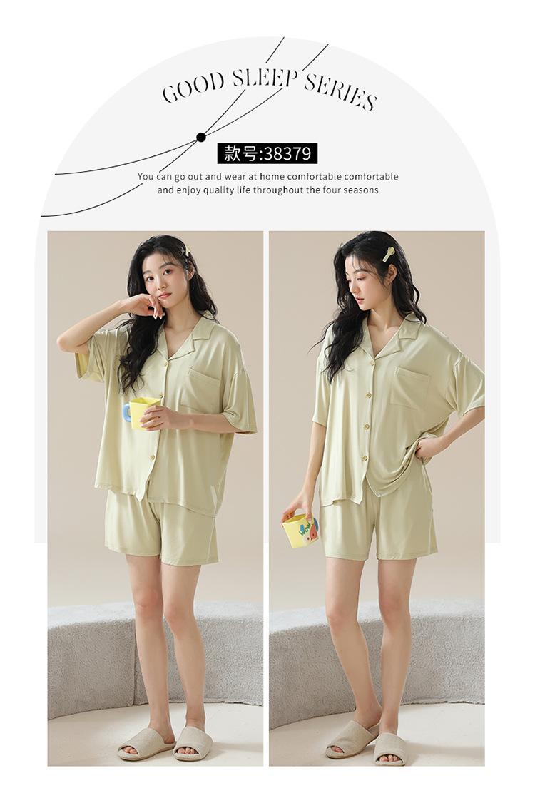 Pijamas de modal para mujer, de verano, de manga corta, 2024, nuevo, sencillo, de alta gama, cárdigan, informal, de color liso, ropa para el hogar