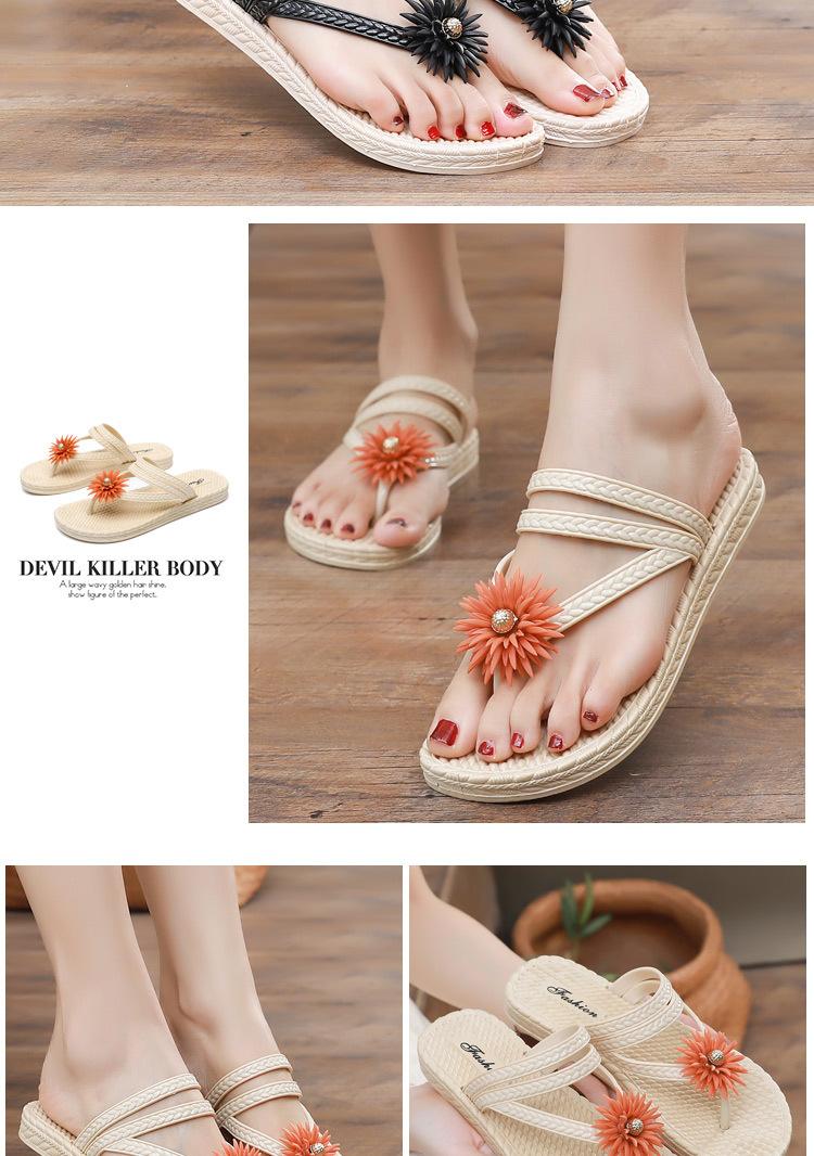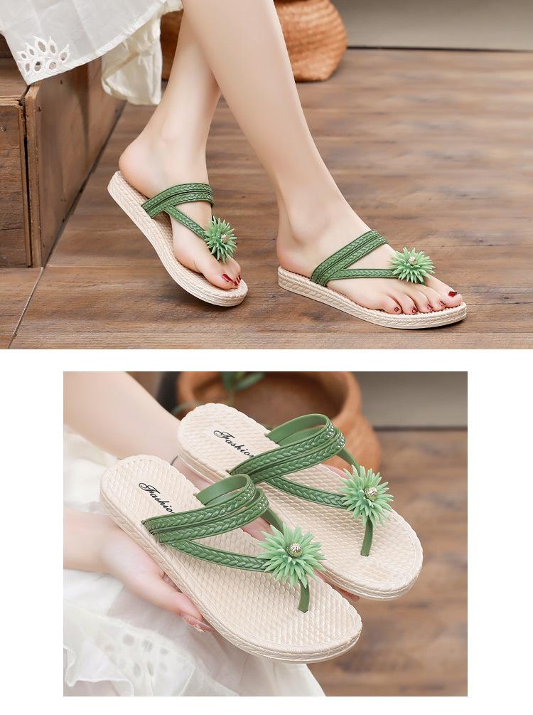 Chanclas de flores para mujer, planas, antideslizantes, de plástico, con suela suave y clip, para playa, de verano, con diseño de hada y viento.