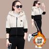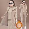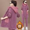 Traje deportivo grueso con forro polar para mujer Otoño e Invierno 2020 Nuevo Sudadera de longitud media de vellón de cordero Conjunto de tres piezas de uso casual
