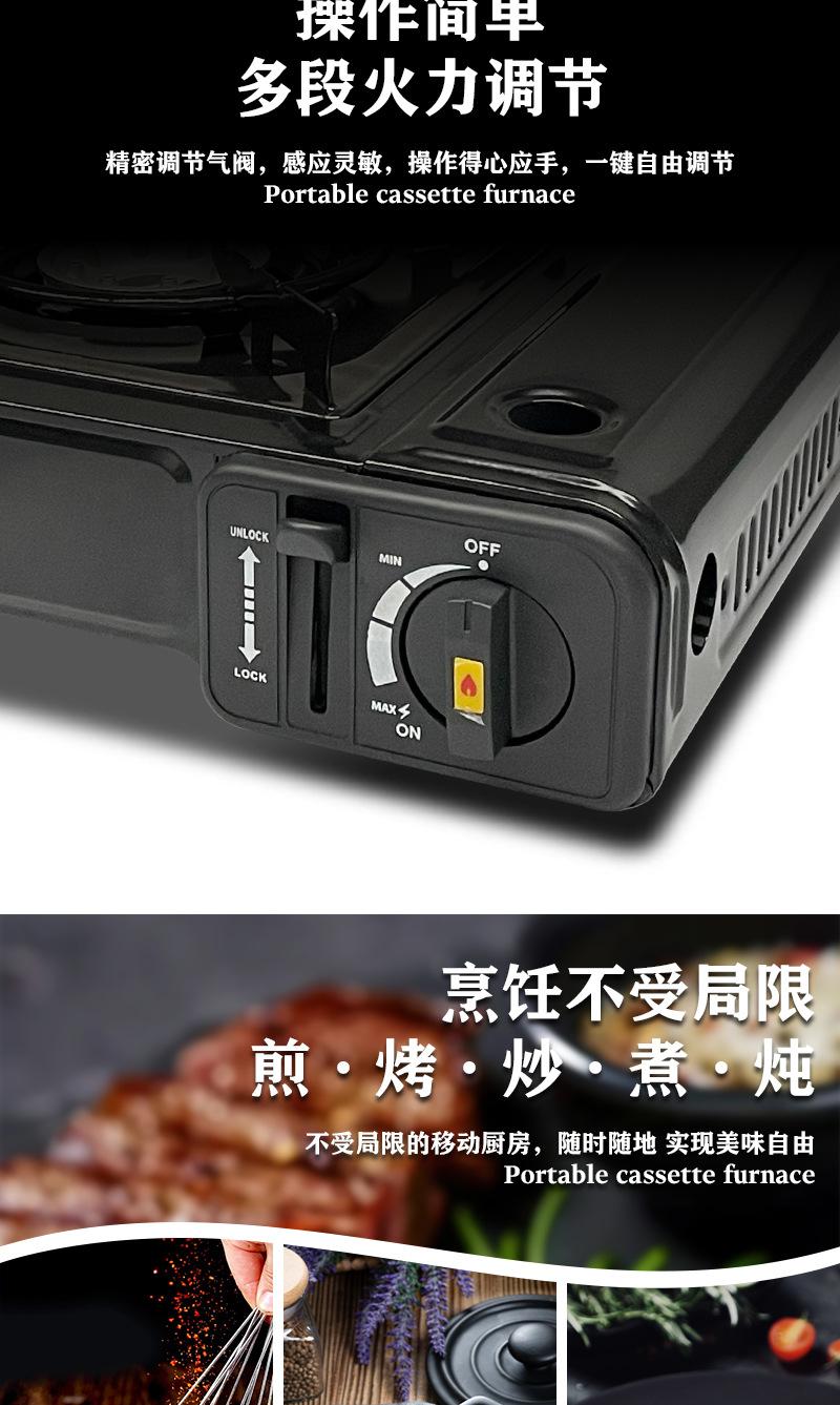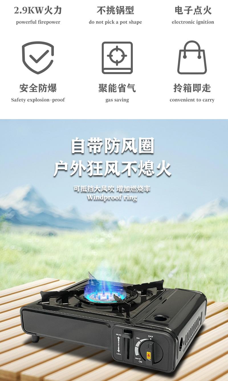 Estufa de Cassette Negra Mini Estufa de Gas Camping al Aire Libre Portátil Venta al Por Mayor Ligera Al Aire Libre Ligera Portátil