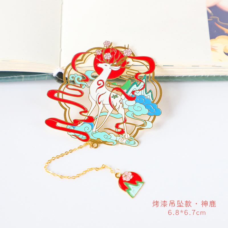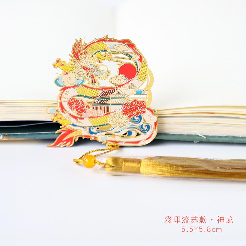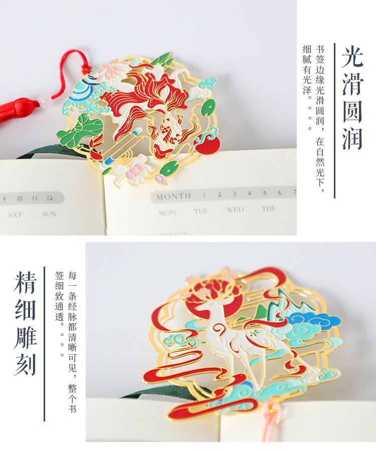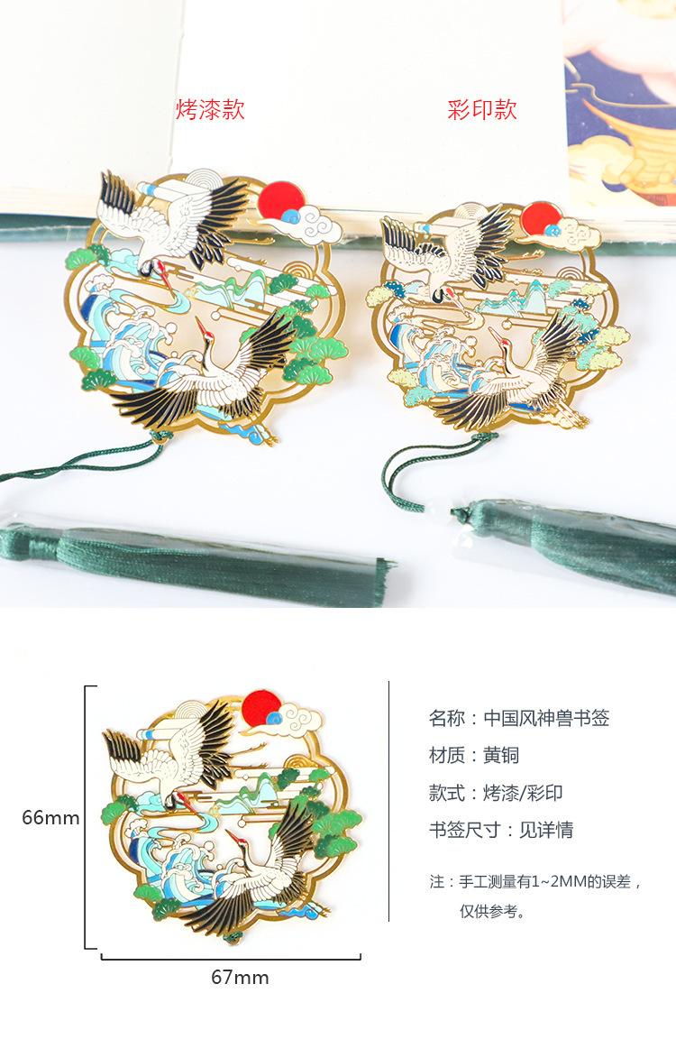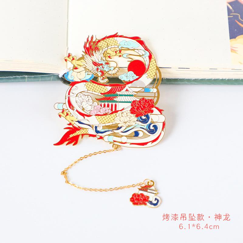 Marcapáginas hueco de metal, estilo chino, Dios Bestia, estilo antiguo, exquisito, pequeño, regalo para estudiantes, juego de regalo de papelería.