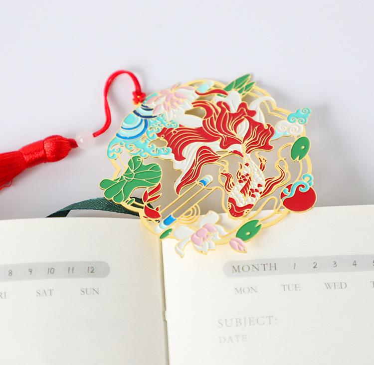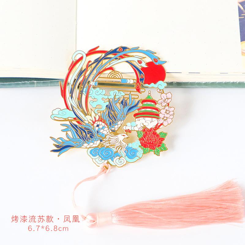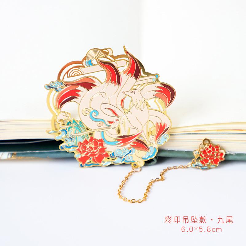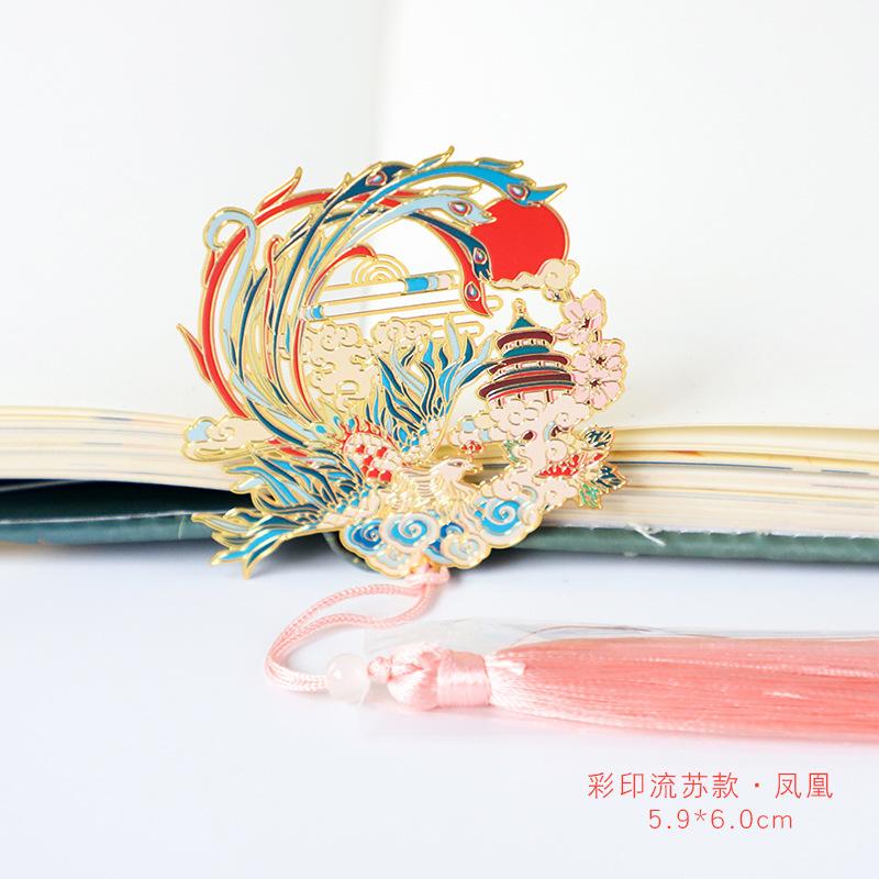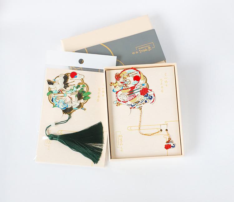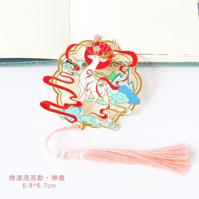 Marcapáginas hueco de metal, estilo chino, Dios Bestia, estilo antiguo, exquisito, pequeño, regalo para estudiantes, juego de regalo de papelería.