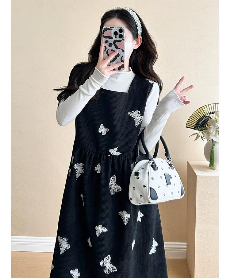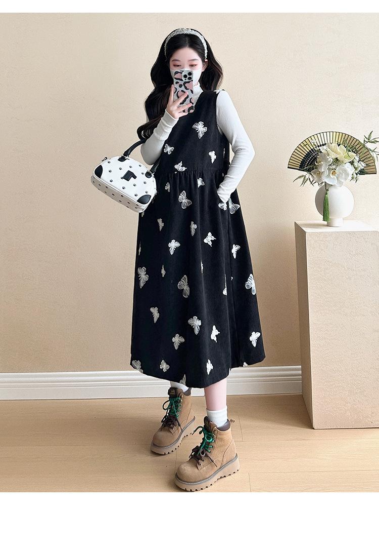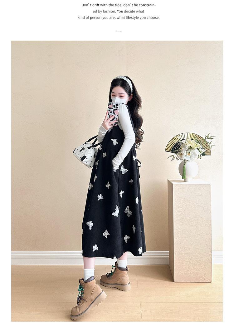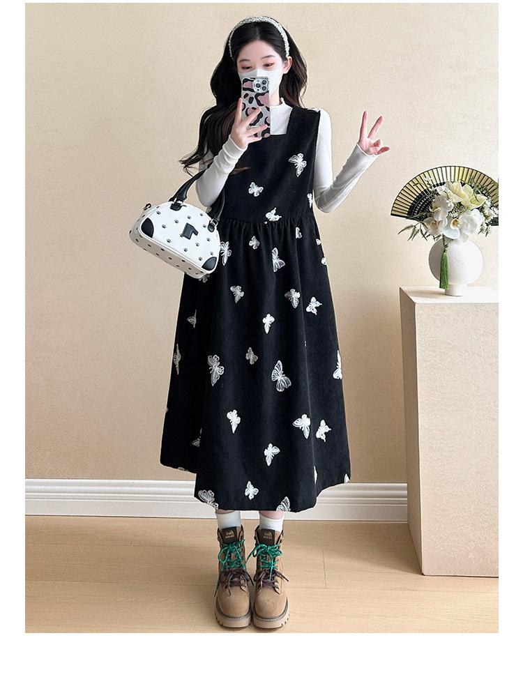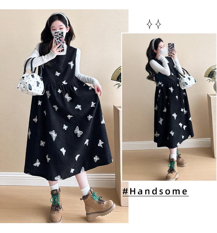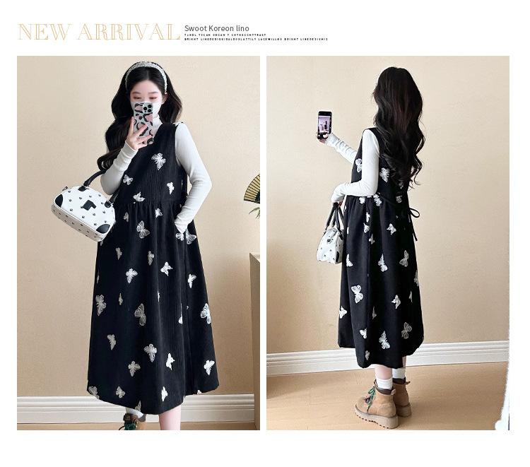 Vestido de otoño 2024 para embarazadas, bordado, largo y dulce, disponible en stock.