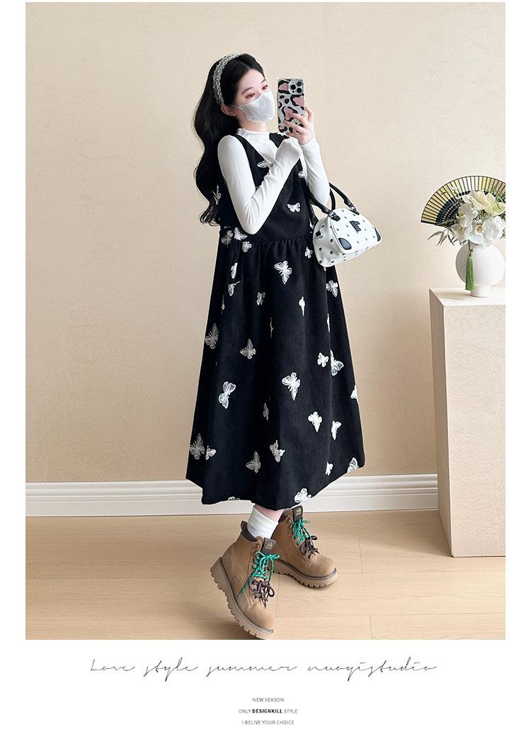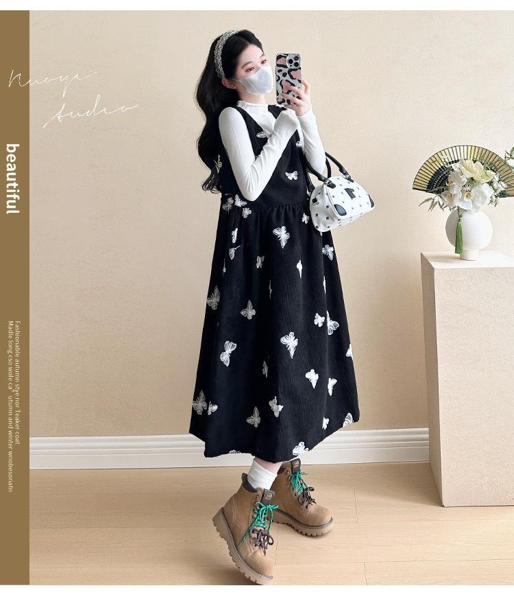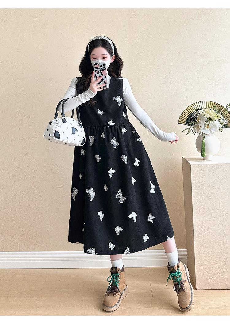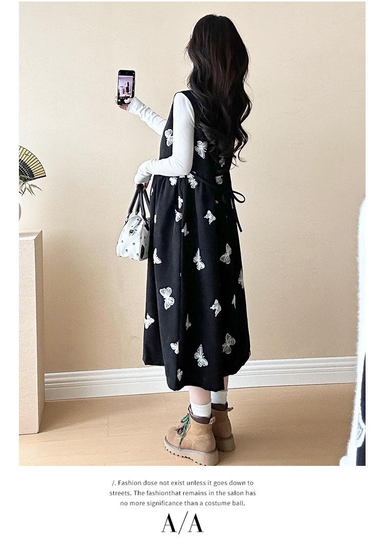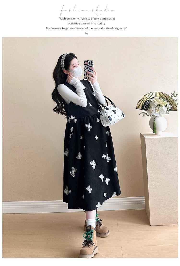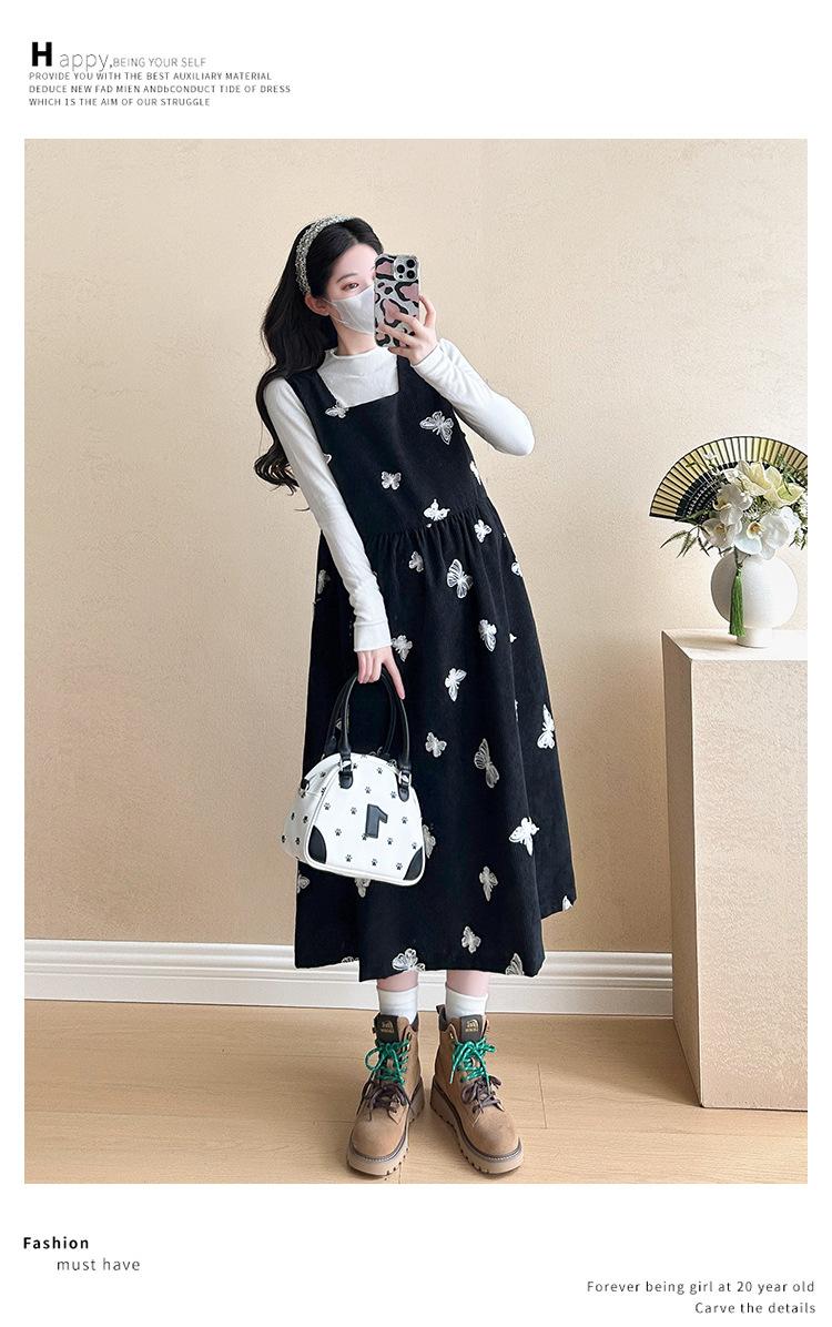 Vestido de otoño 2024 para embarazadas, bordado, largo y dulce, disponible en stock.