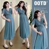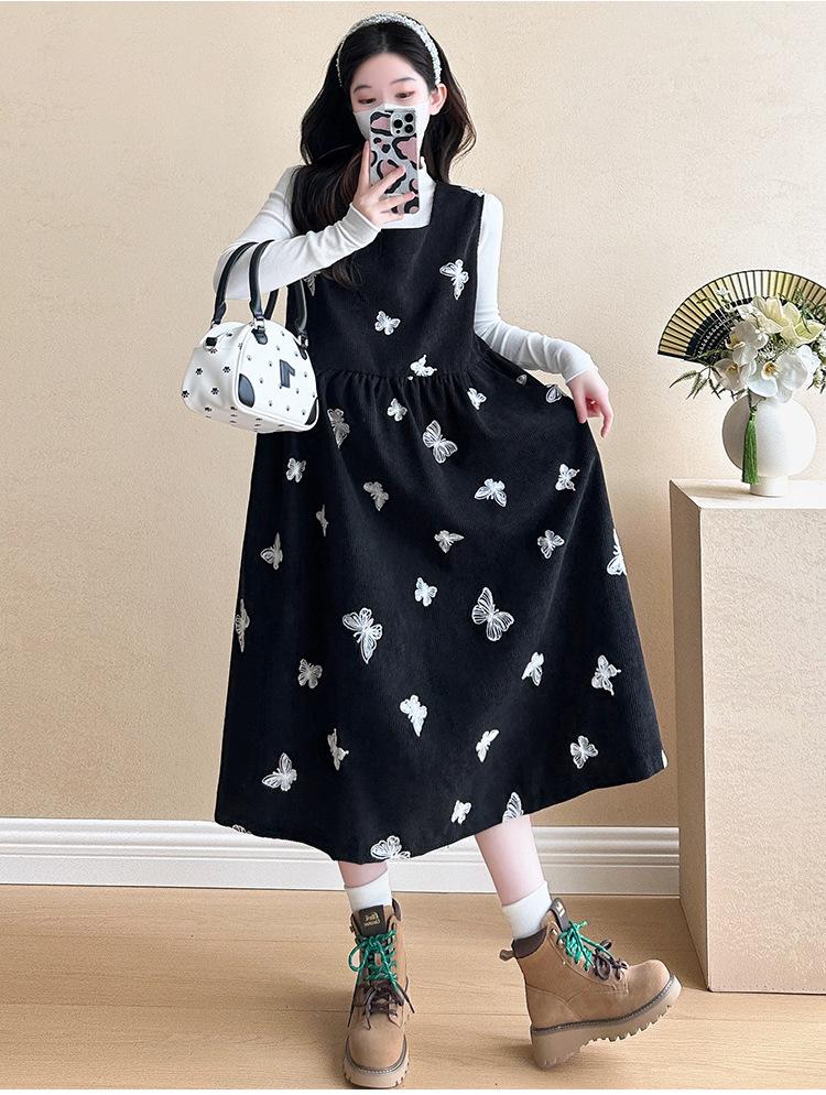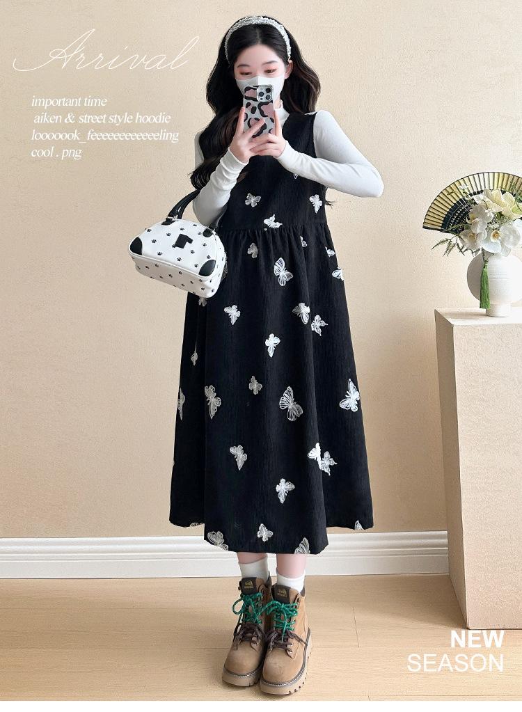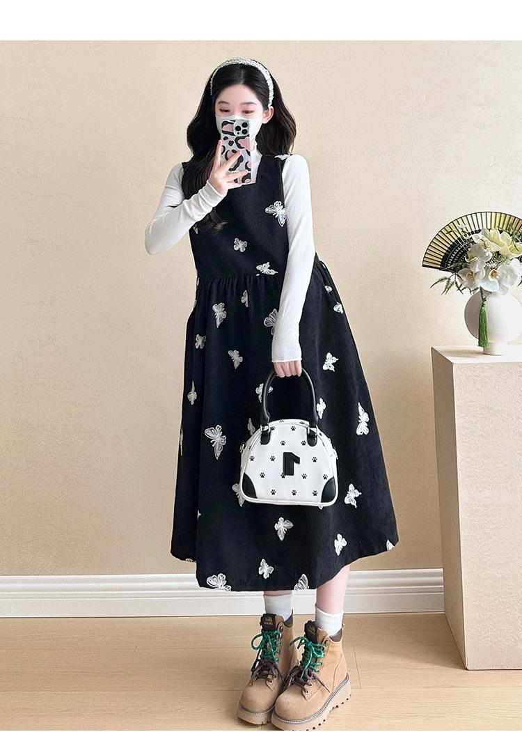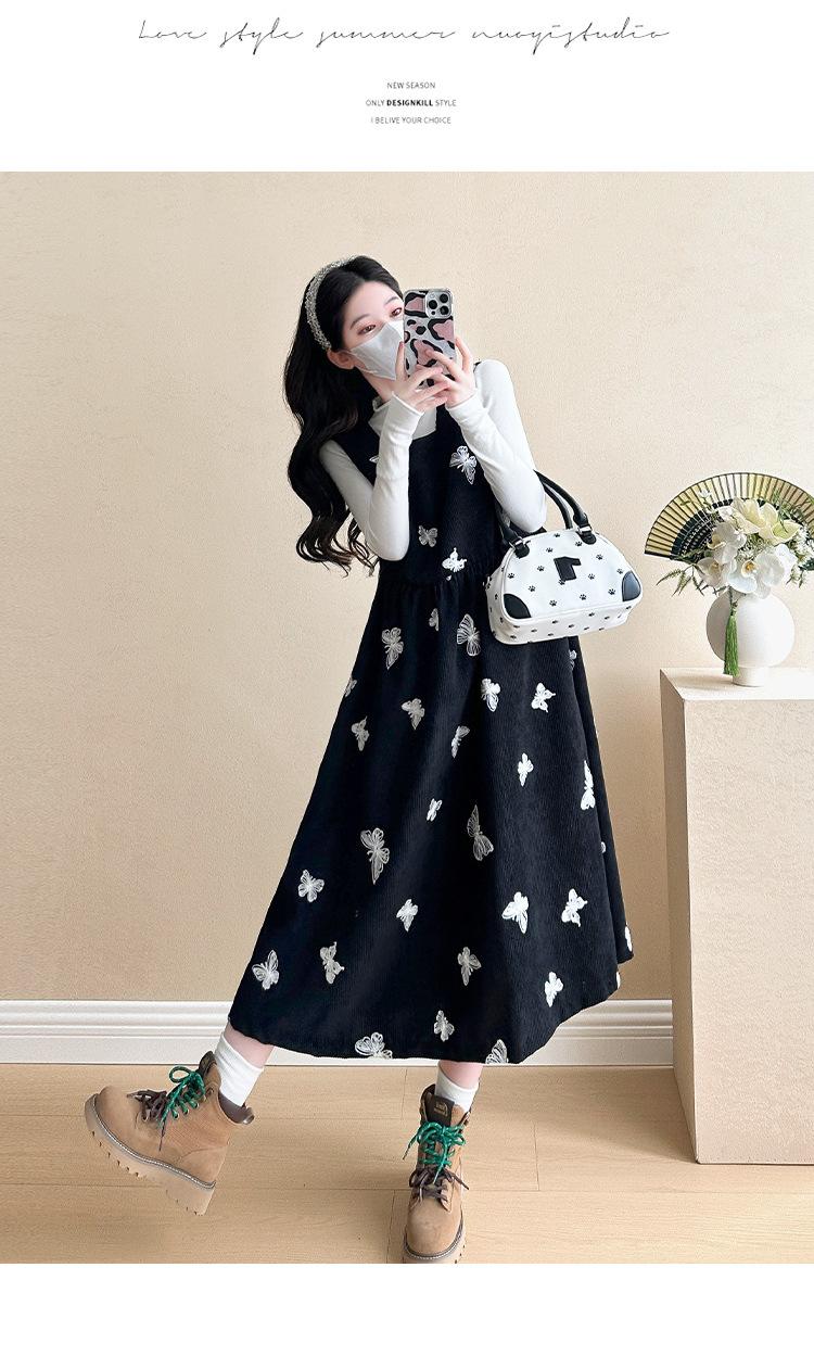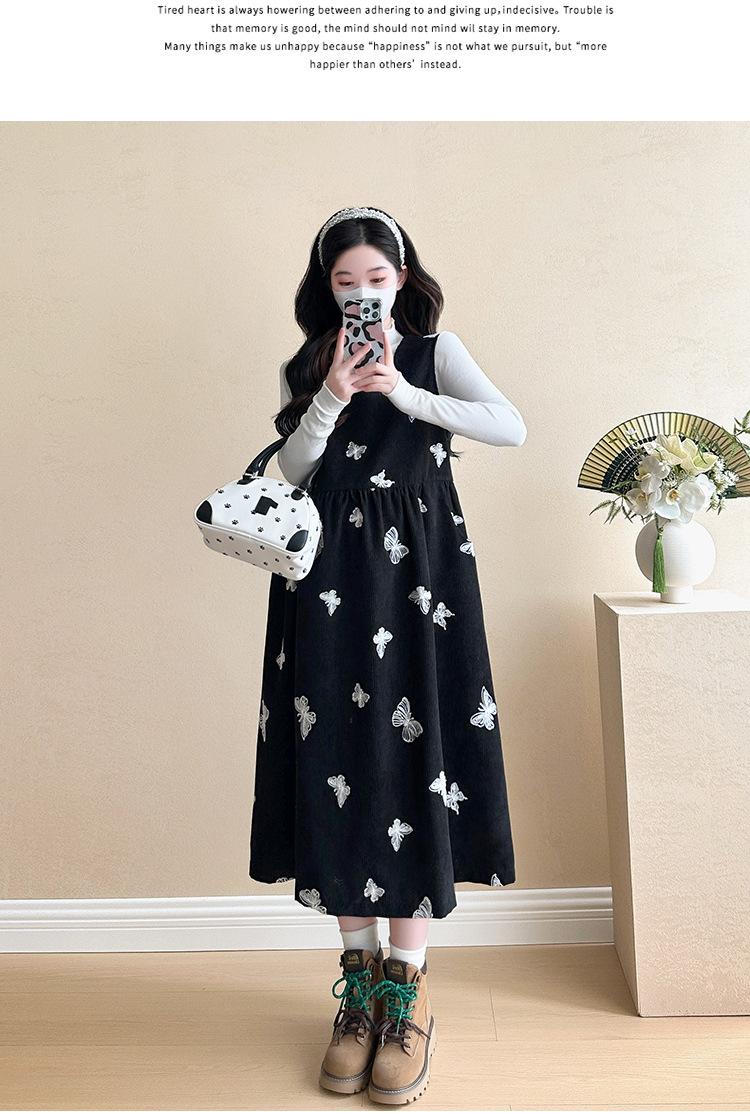 Vestido de otoño 2024 para embarazadas, bordado, largo y dulce, disponible en stock.