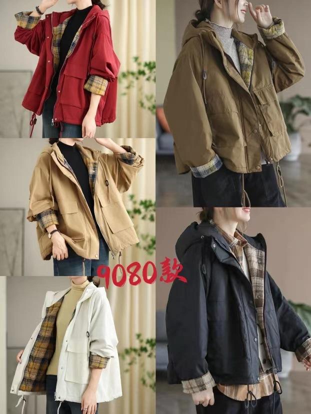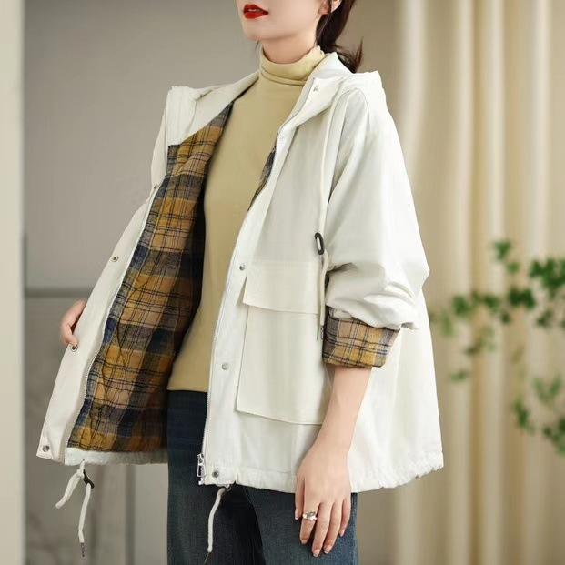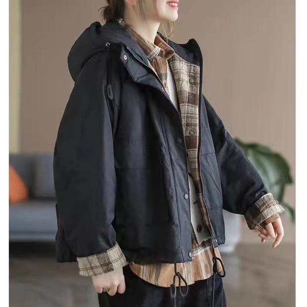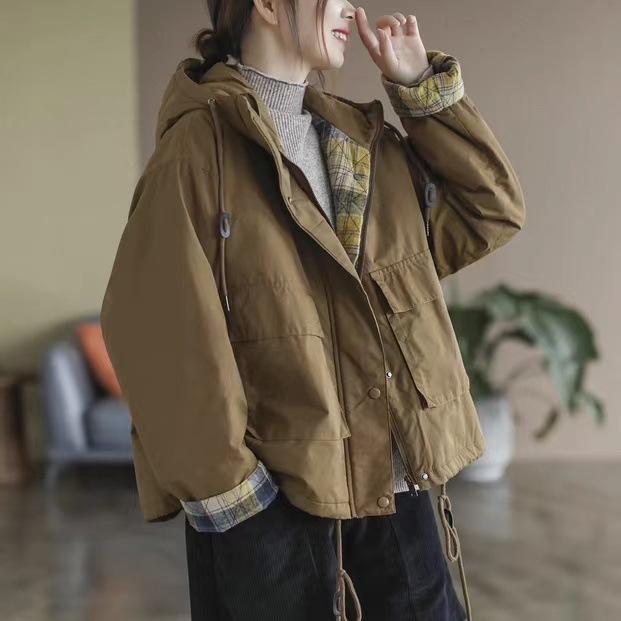 Otoño e Invierno Nuevo Chaqueta de Algodón Acolchada Retro Estilo Ropa de Trabajo con Capucha para Mujer Color Sólido Casual Versátil Parka Top Venta al por Mayor