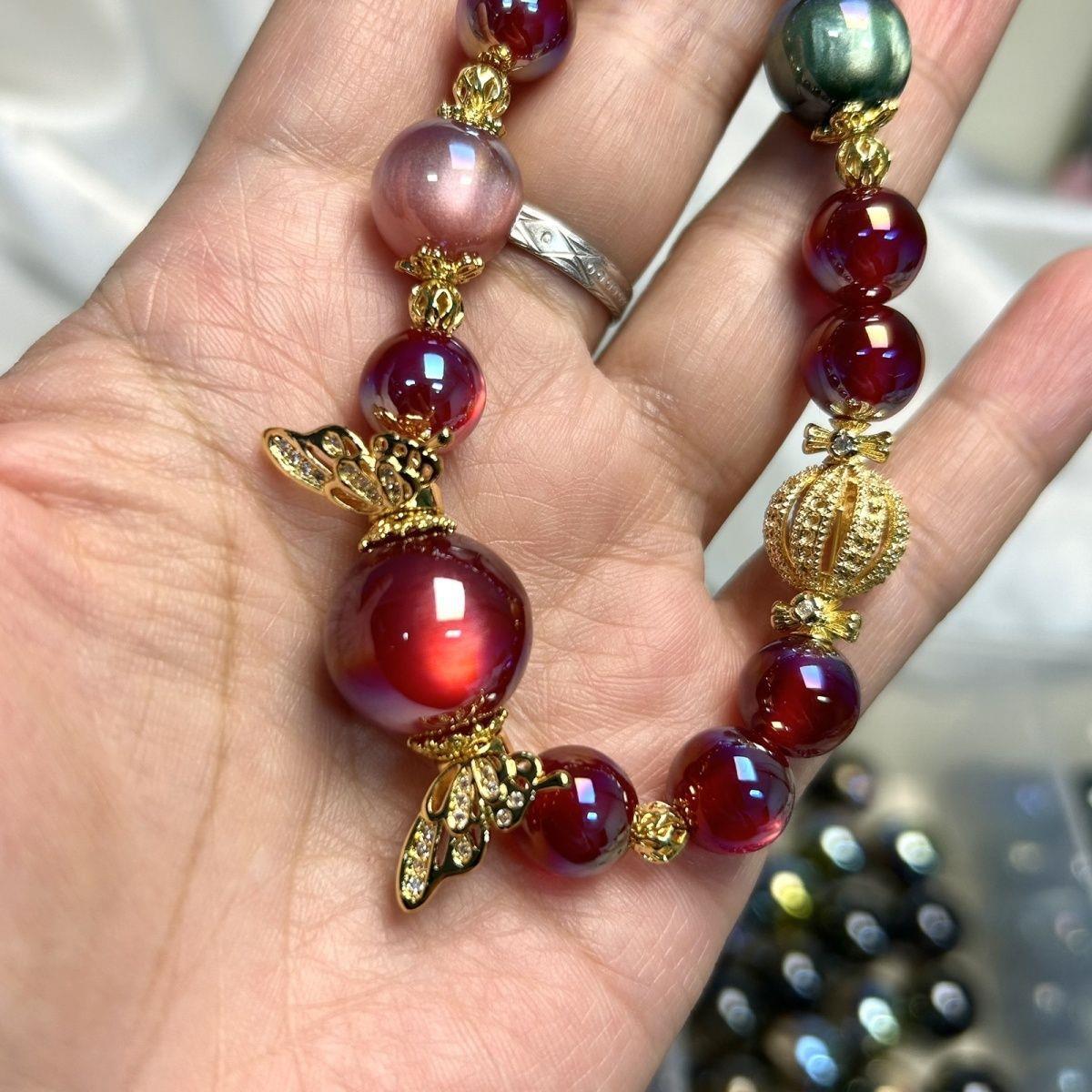 Heidi Nuevos Aspectos Destacados Ojo de Gato 16mm Perlas Redondas Perlas con Agujero Pasante Accesorios de Bricolaje Vino Rojo Blanco Rosa Estéreo Vintage