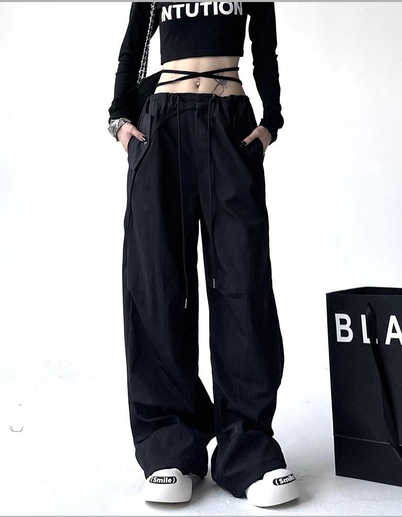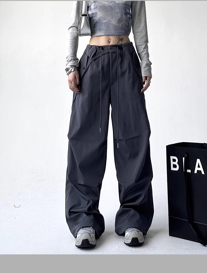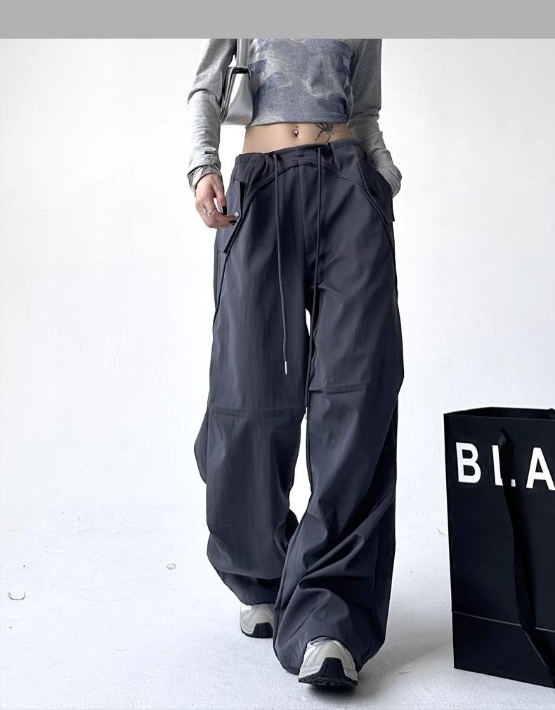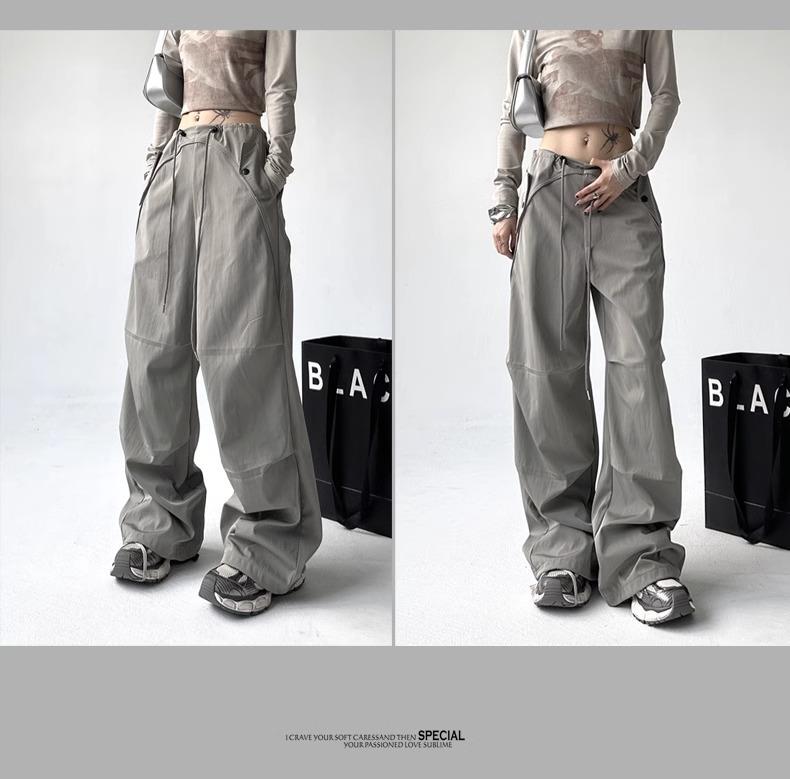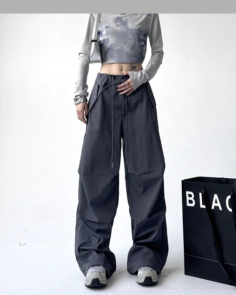 Monos nuevos de otoño y verano de 2024, pantalones anchos de pierna americana para mujer, pantalones largos deportivos holgados estilo yuppie para mujer