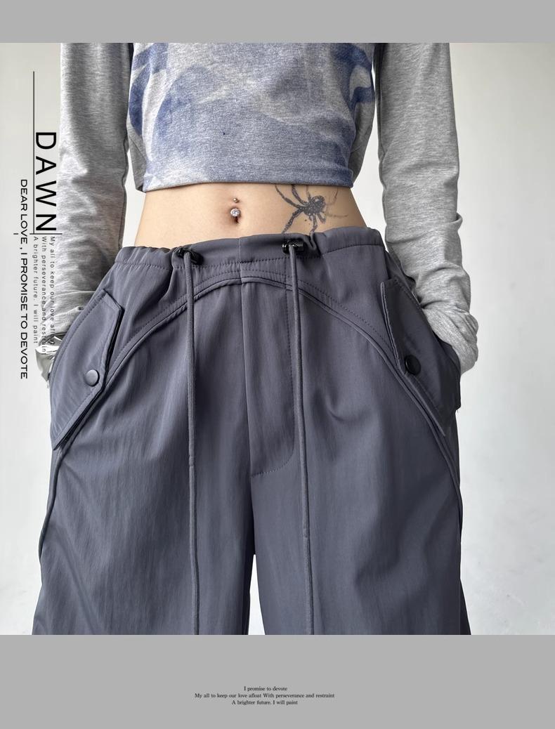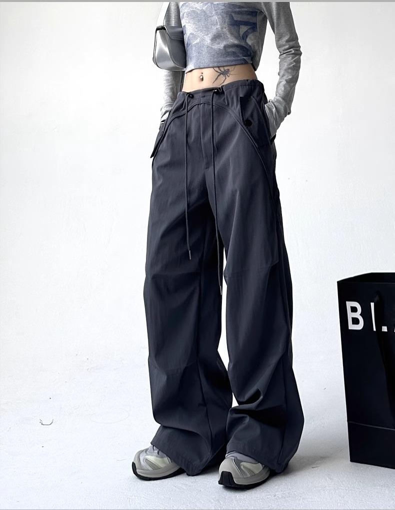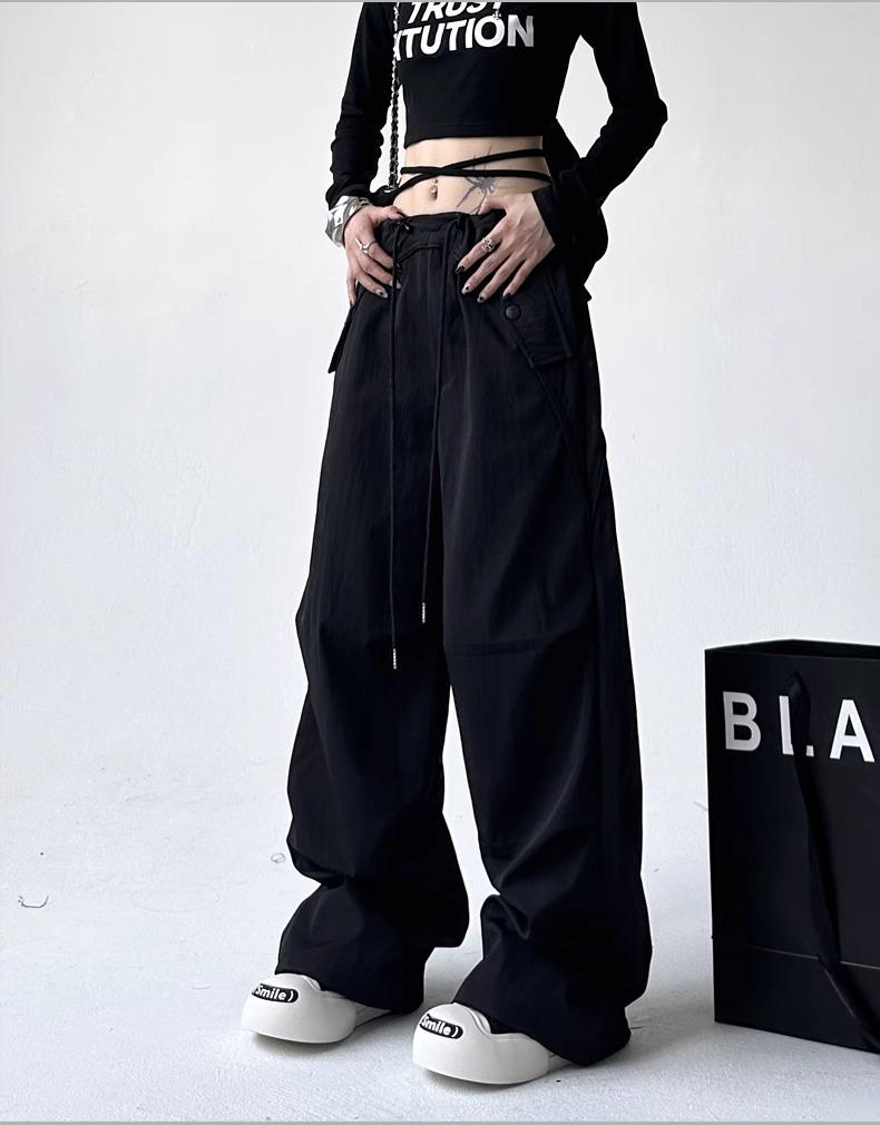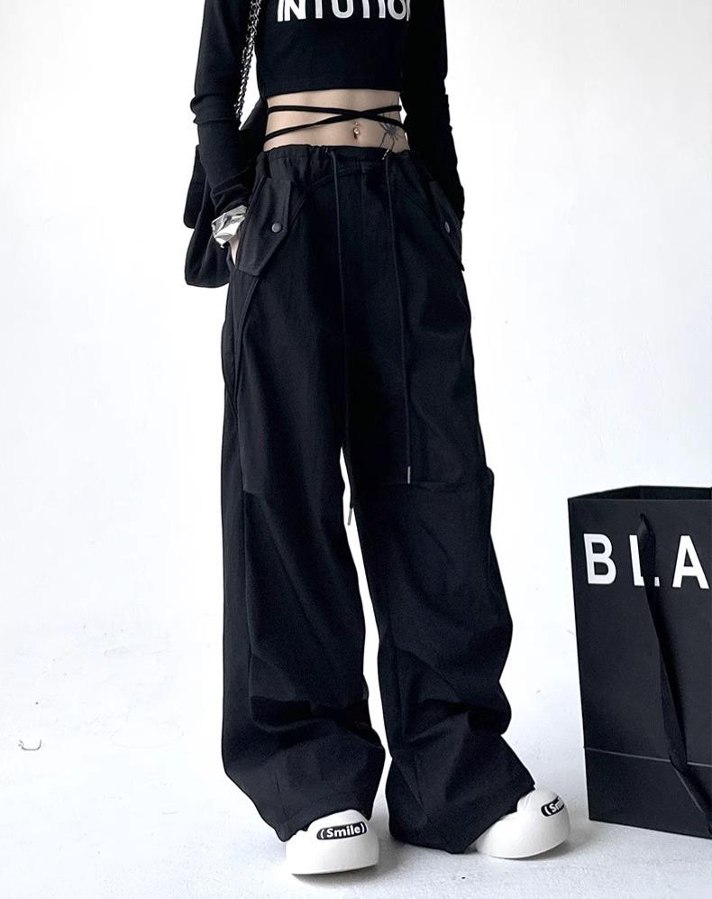 Monos nuevos de otoño y verano de 2024, pantalones anchos de pierna americana para mujer, pantalones largos deportivos holgados estilo yuppie para mujer