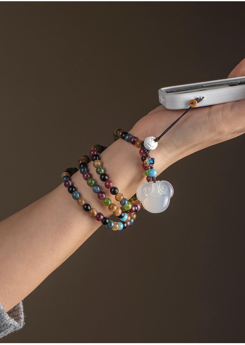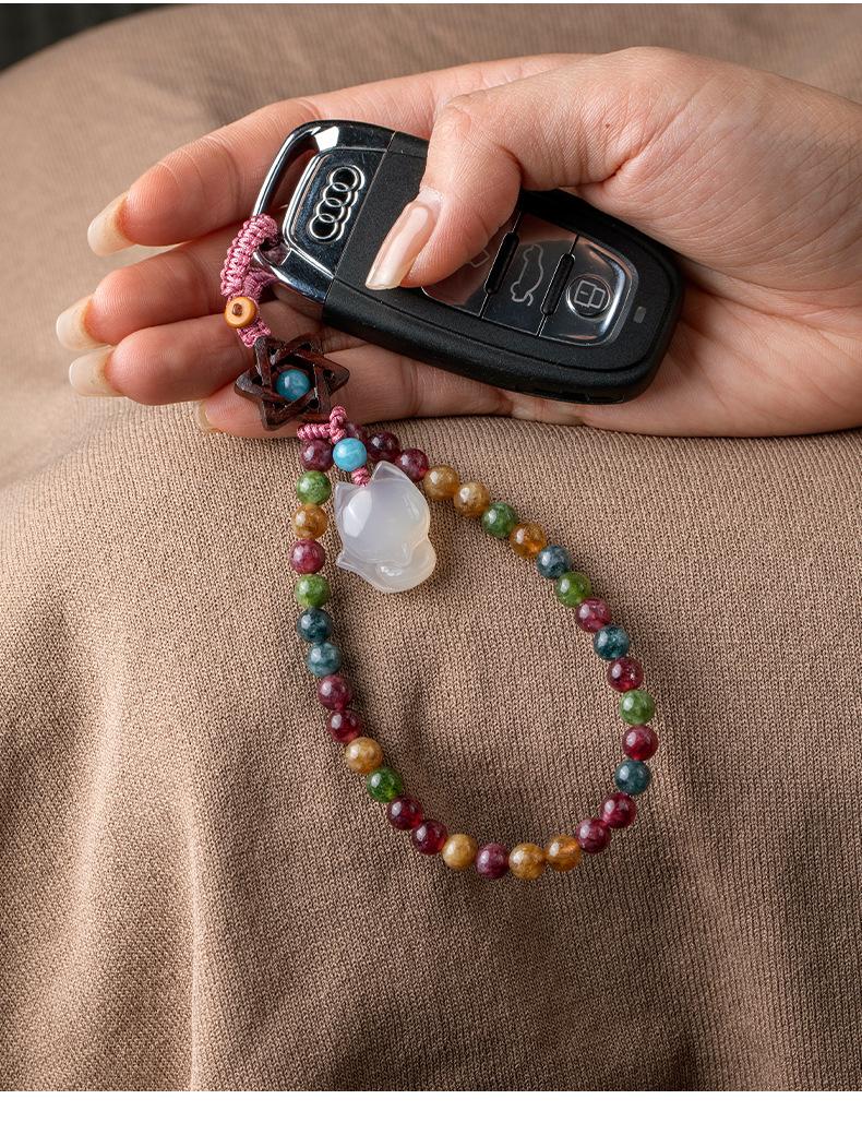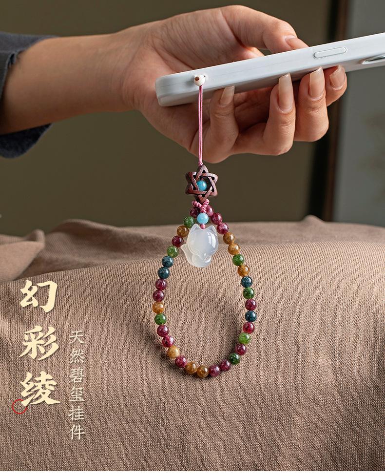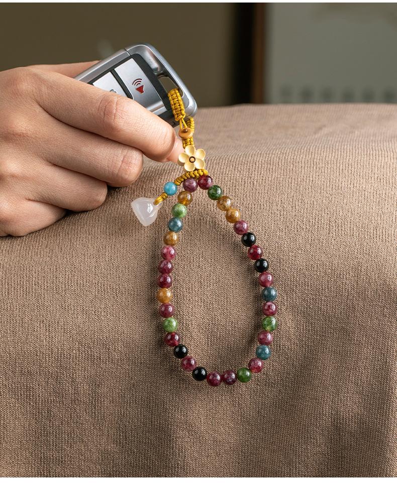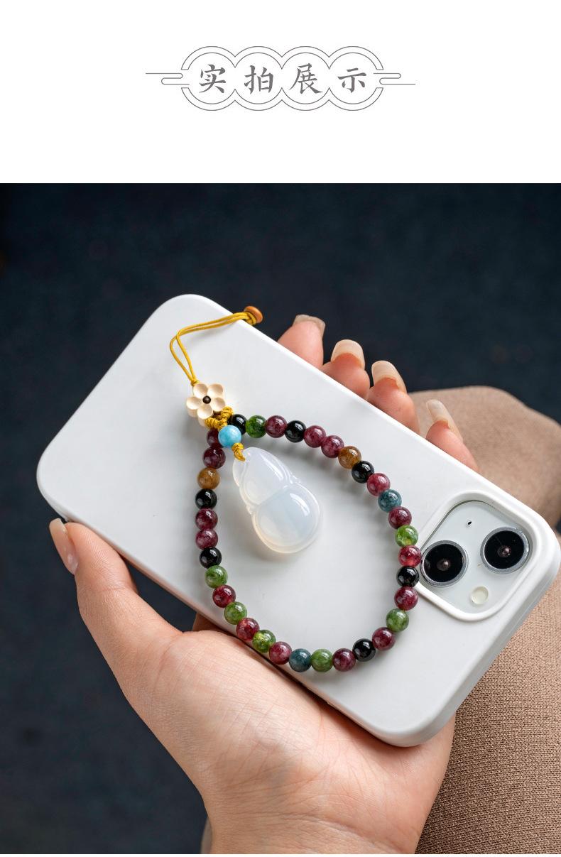Nuevo Cordón para Teléfono de Turmalina Natural Correa de Muñeca Colgante de Lujo Ligero Cuentas Exquisito Accesorio de Alta Gama Cadena Llavero