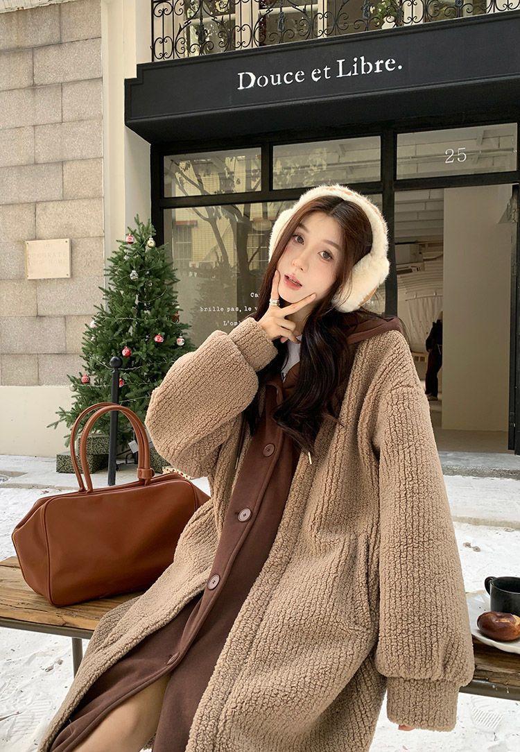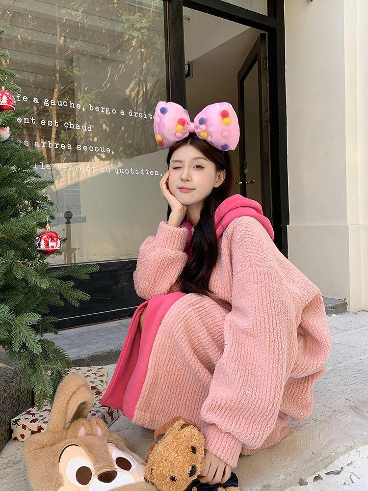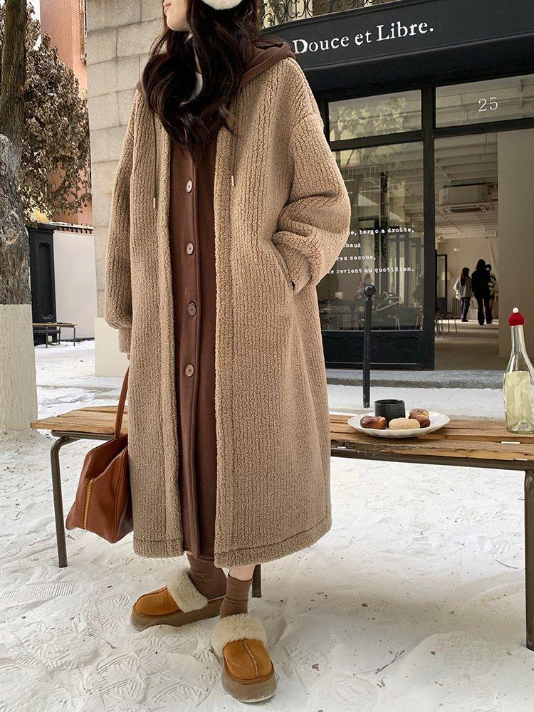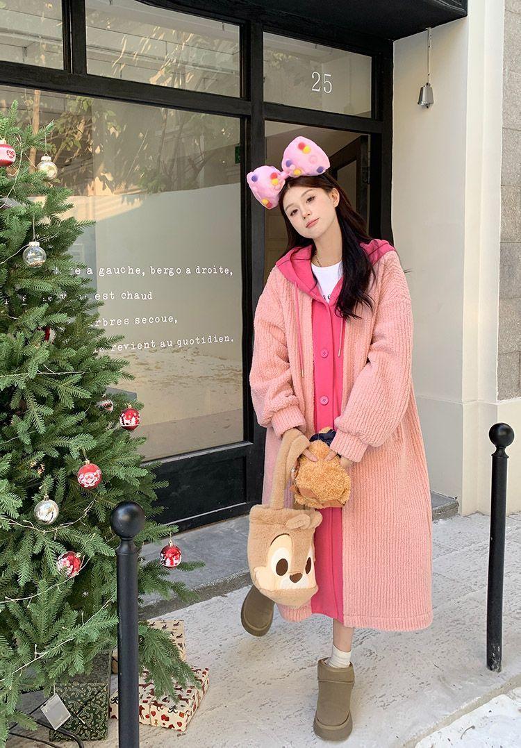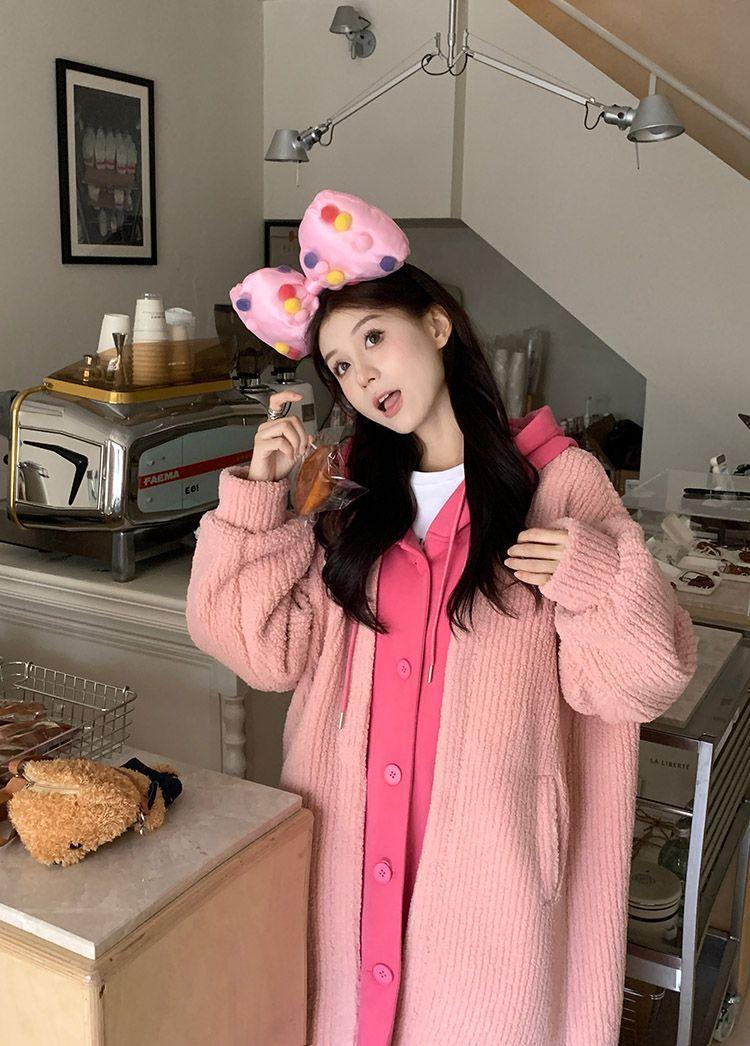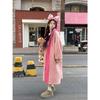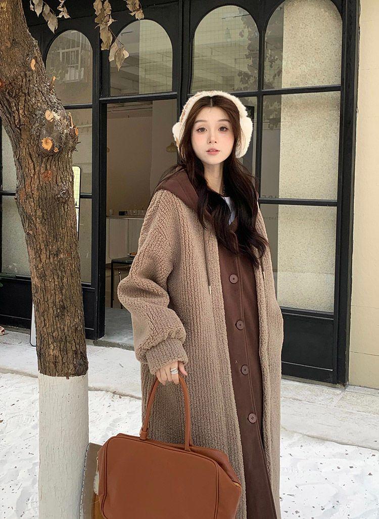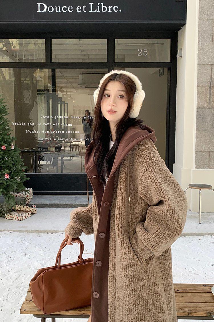 Abrigo Rosa de Dos Piezas Falso con Capucha y Costuras Invierno Estilo Coreano 2025 Nuevo Diseño Sensación Forrado de Polar Abrigo Grueso